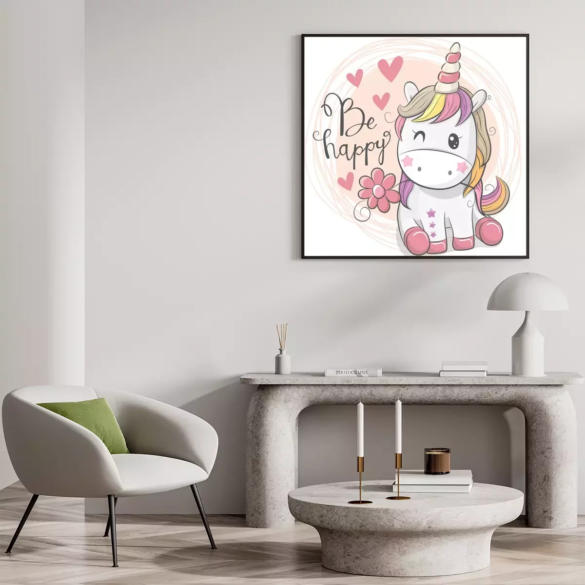 Poster Einhorn winkt mit Auge und Herzen