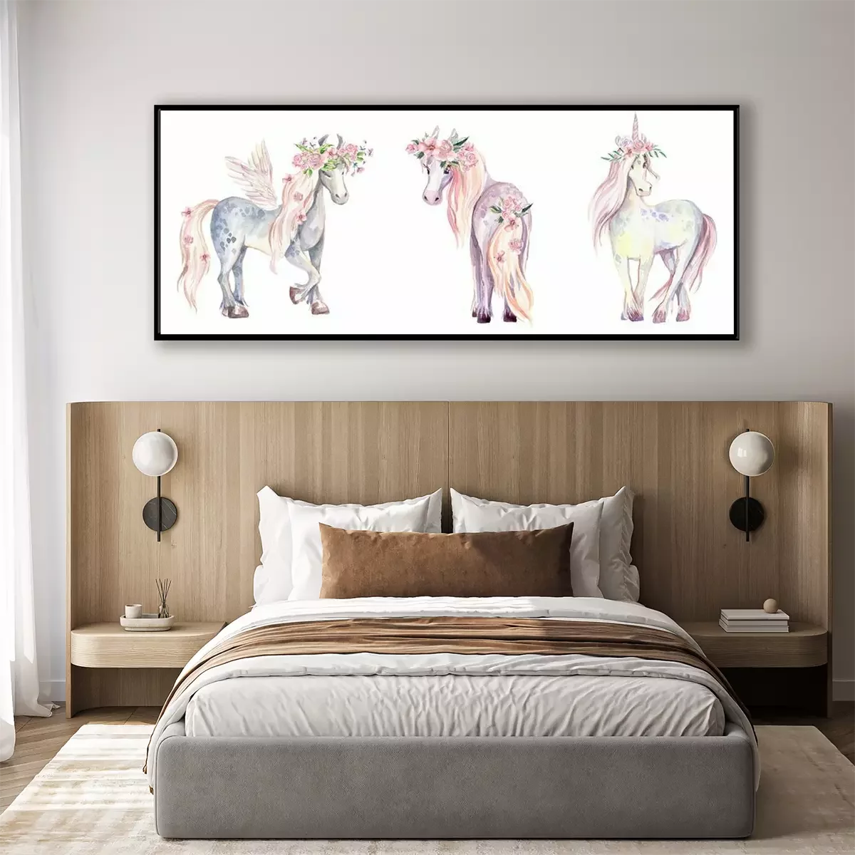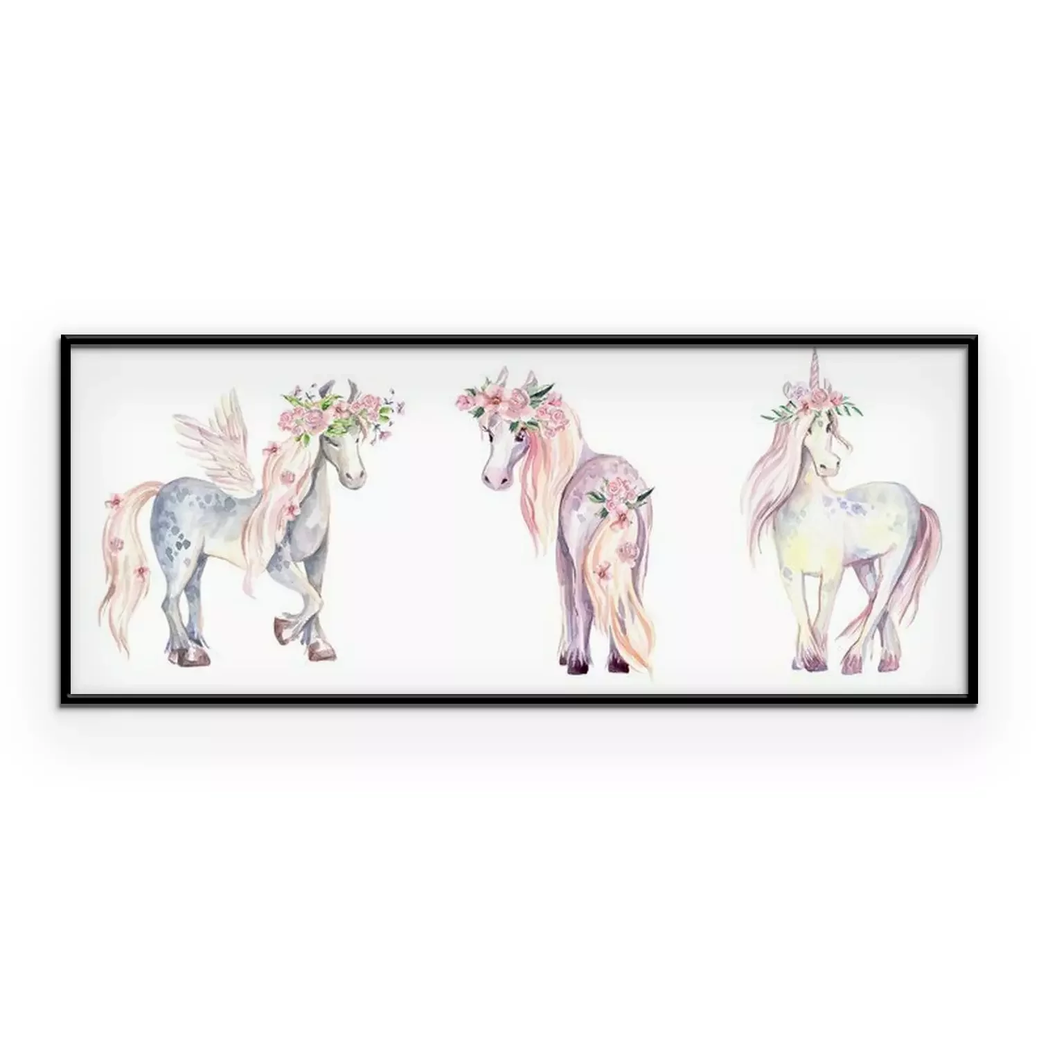 Poster Einhornpferd und Pegasus mit Blumen verziert