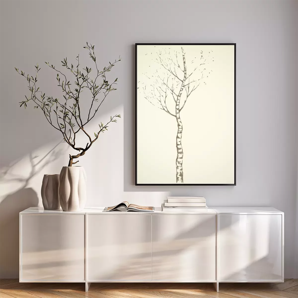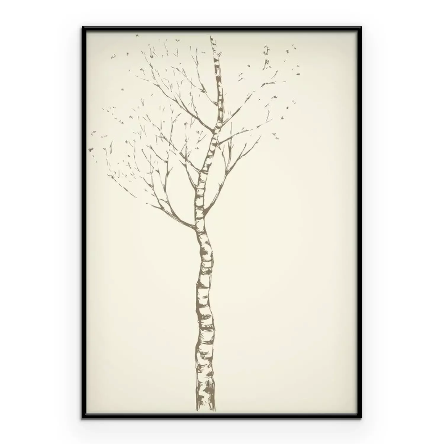 Poster: Einsame Birke auf cremefarbenem Hintergrund