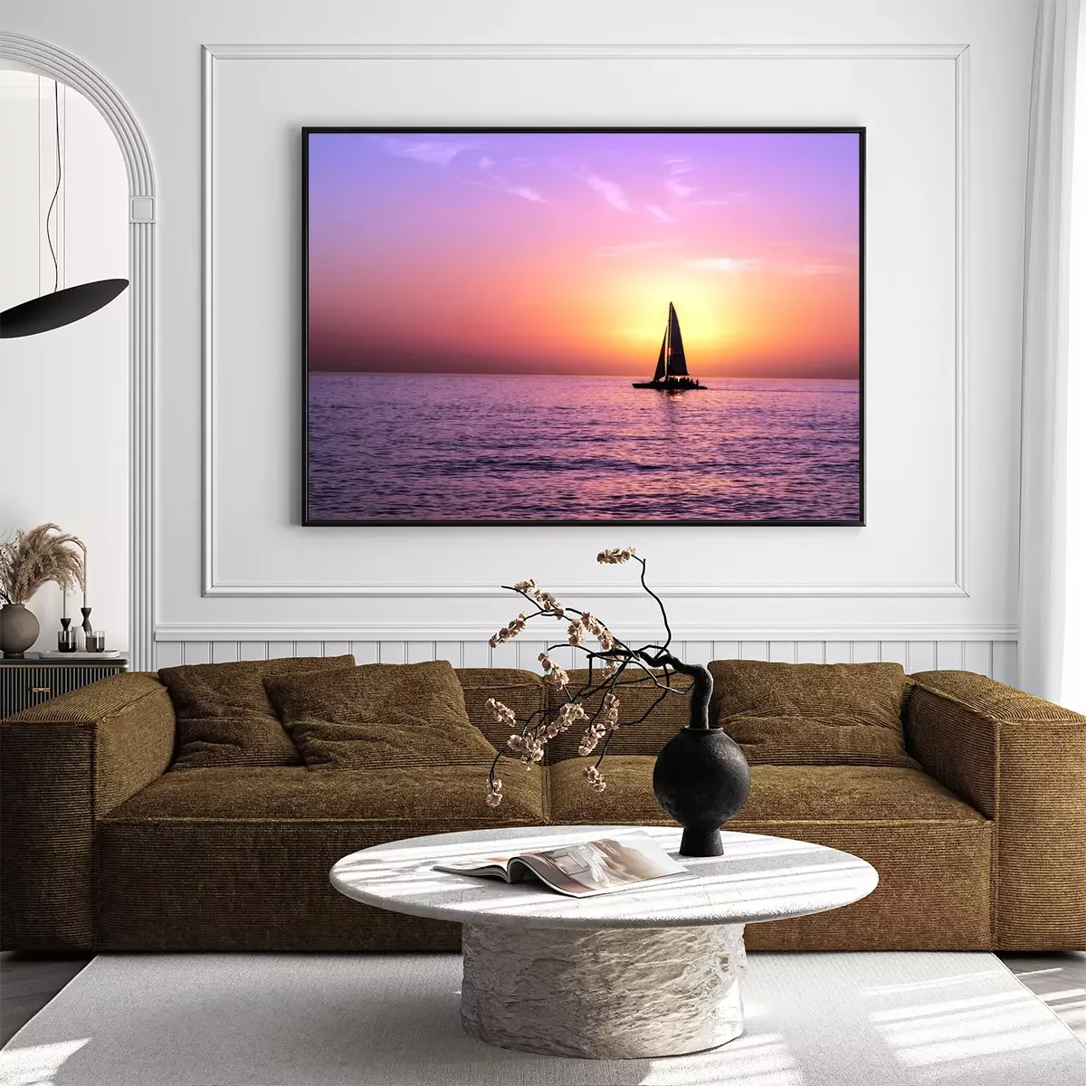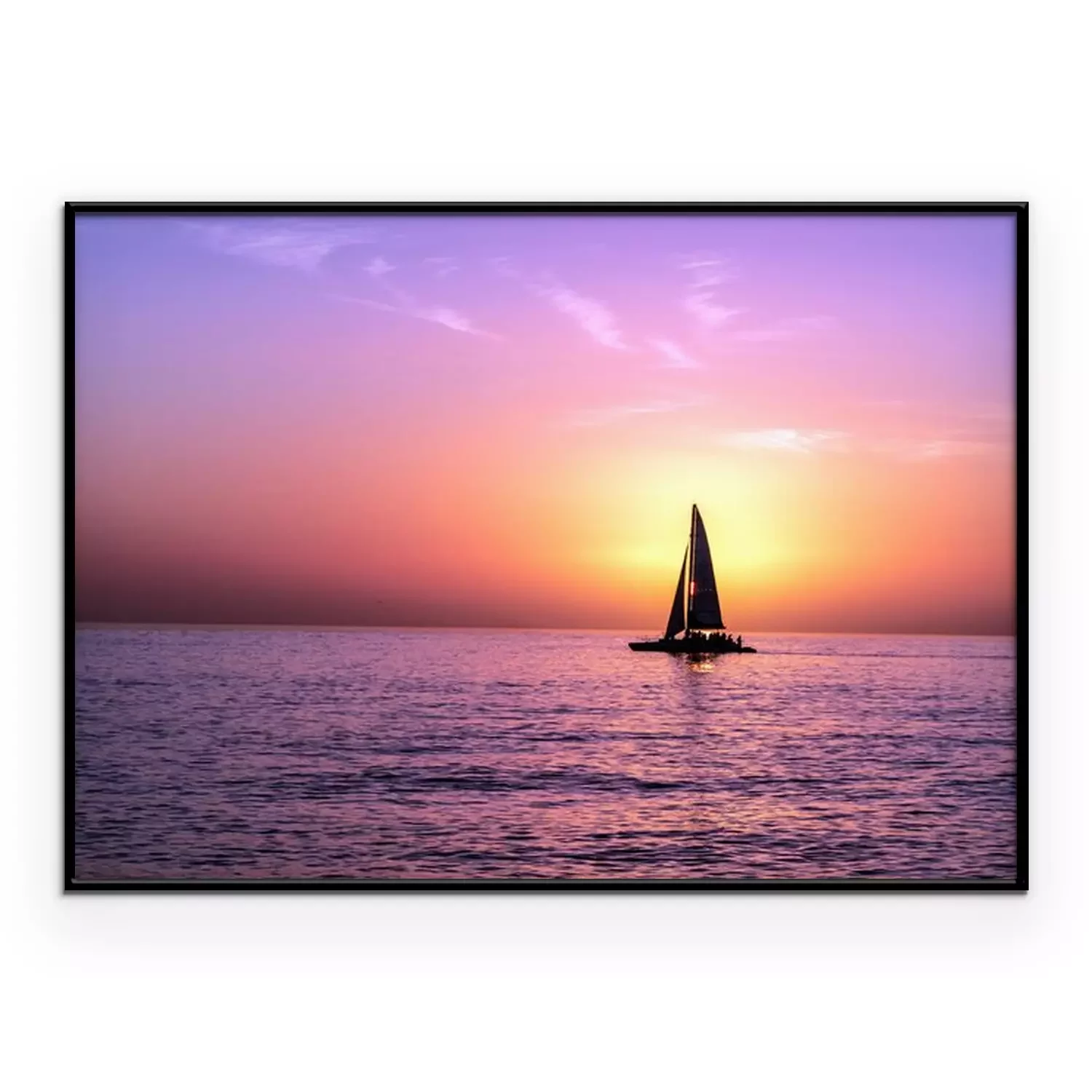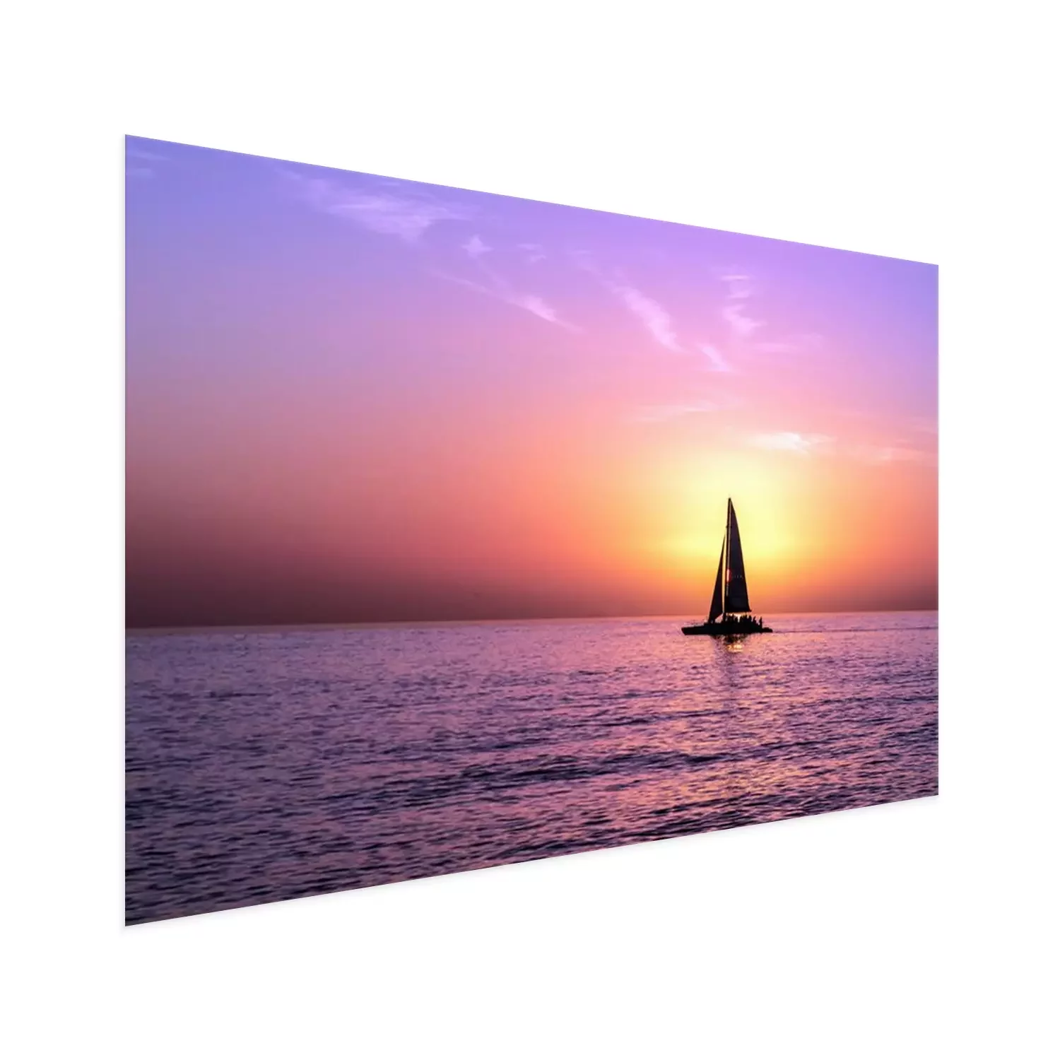 Poster: Einsames Segelboot auf dem Hintergrund des Sonnenuntergangs