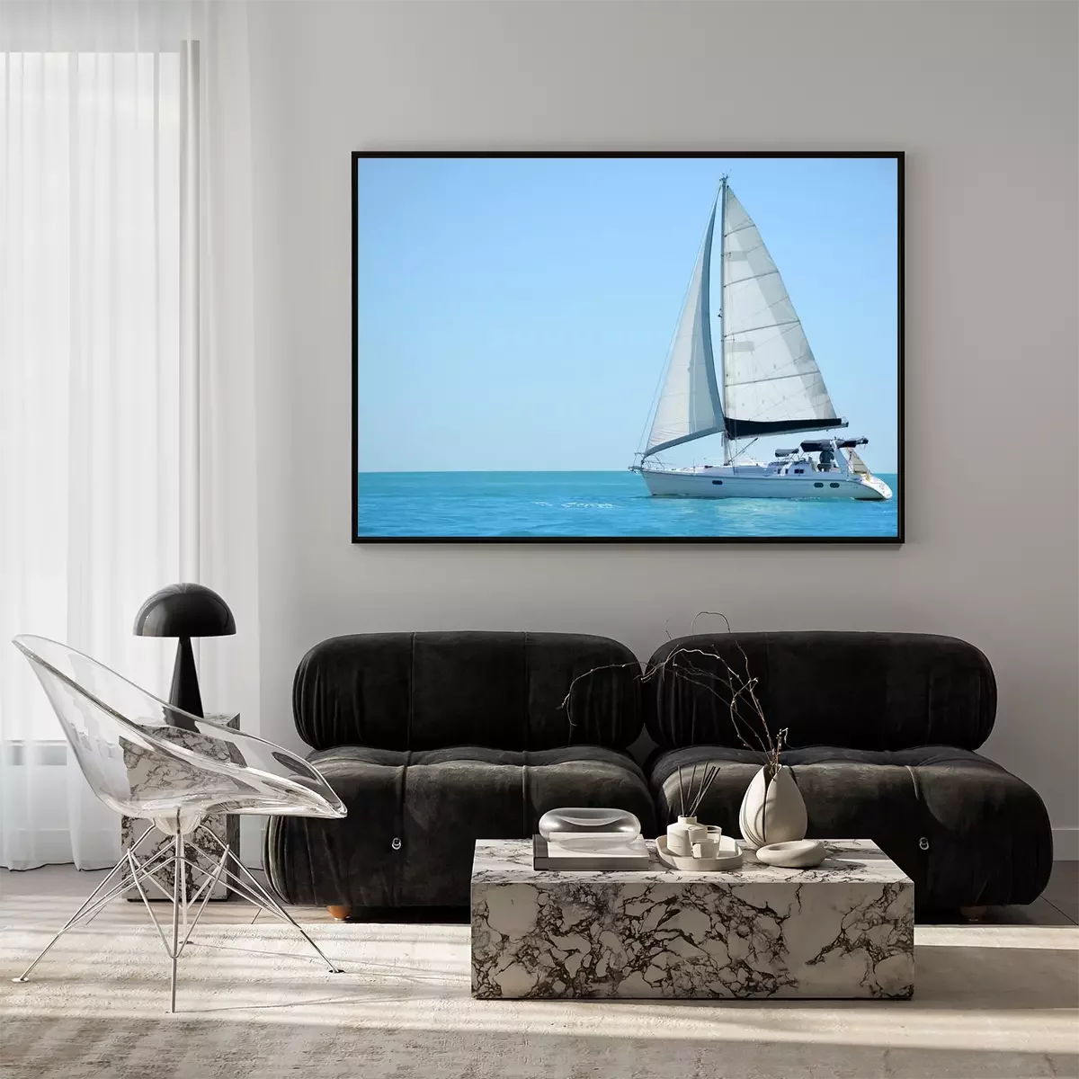 Poster Einsames Segelboot auf ruhigem Wasser