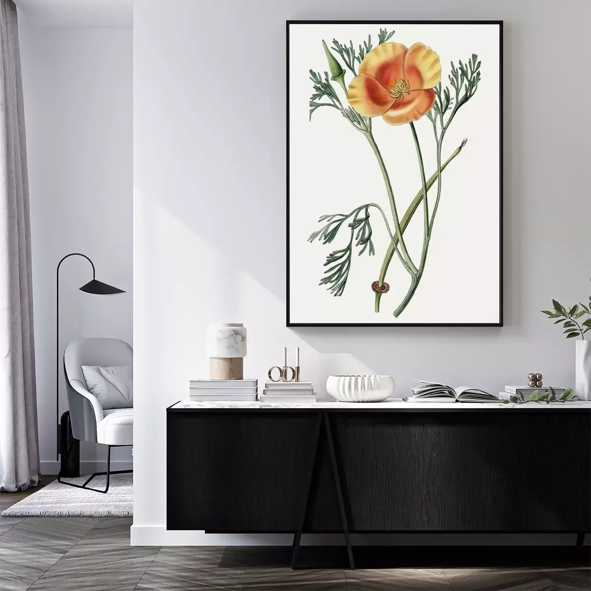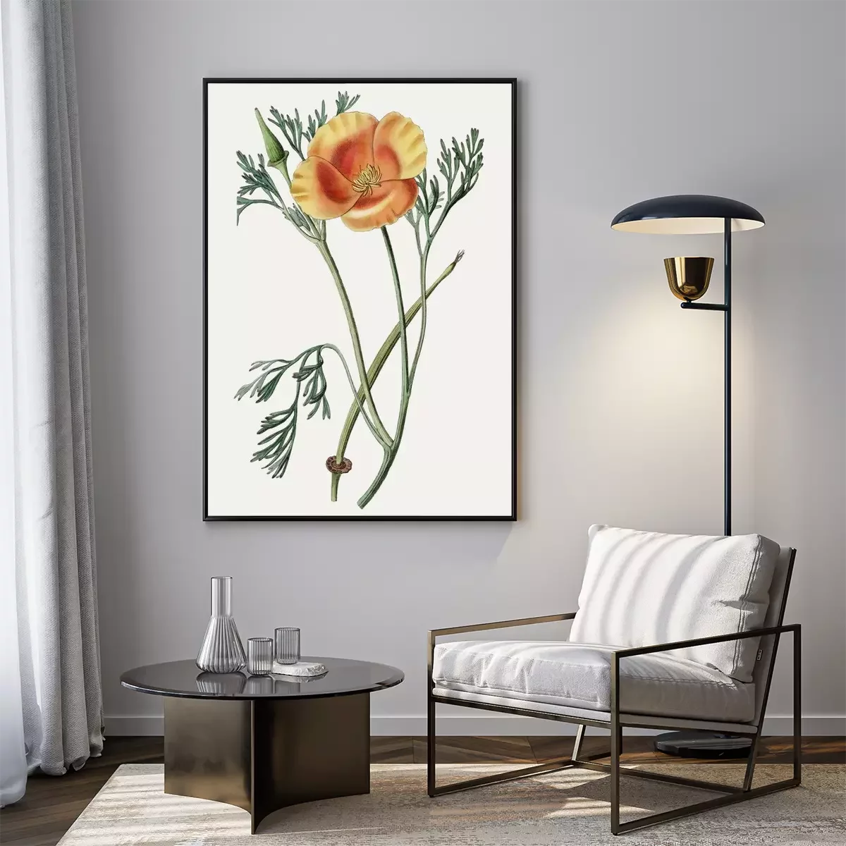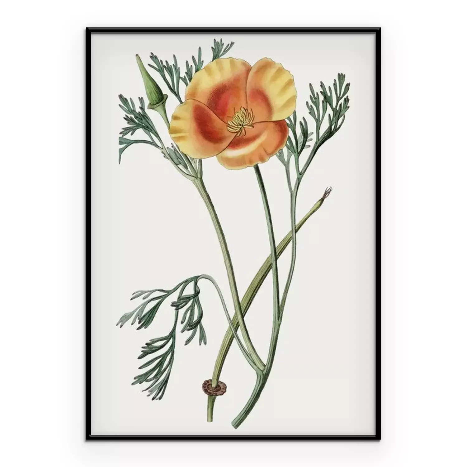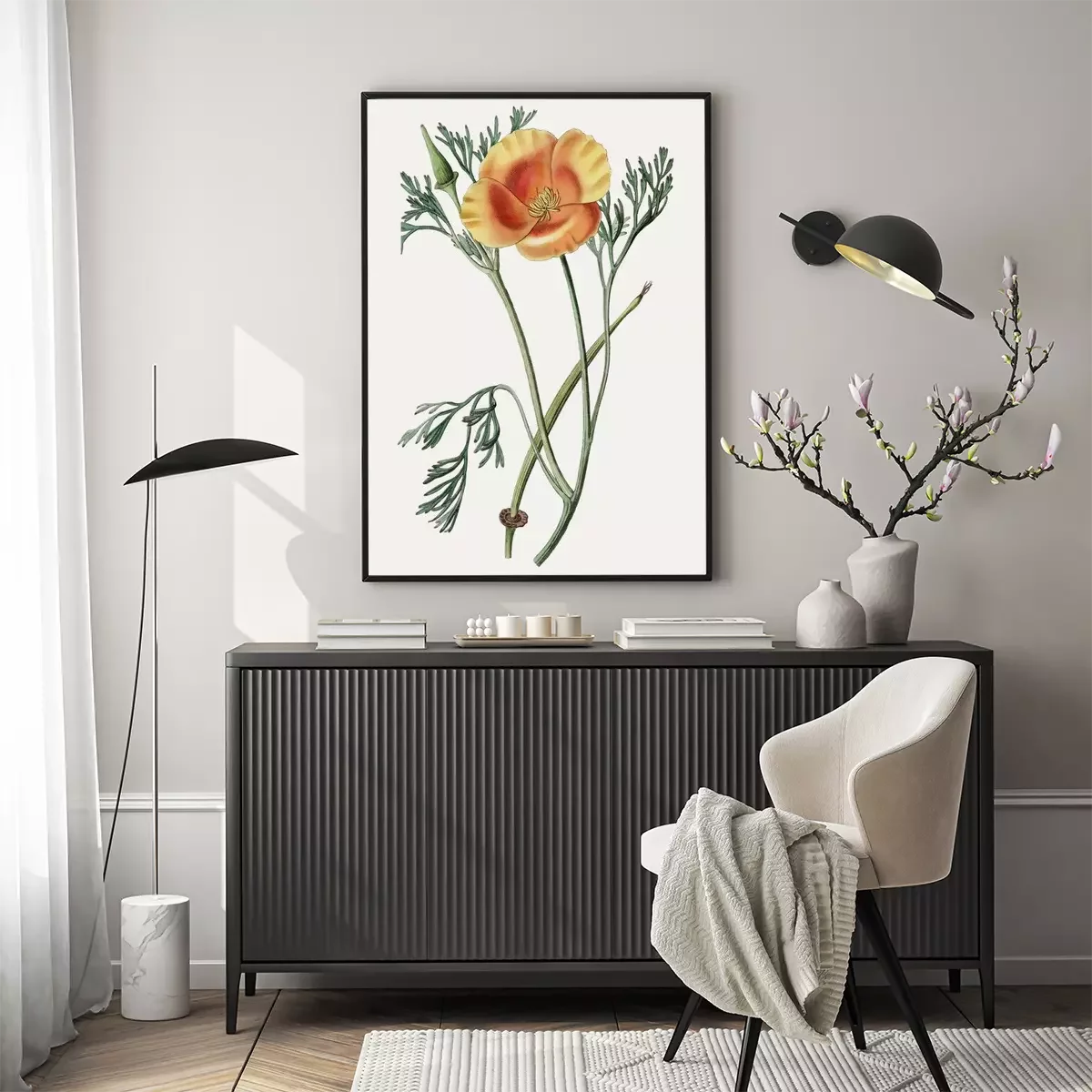 Poster Einzelne Blume und Triebe von orangefarbenem Mohn