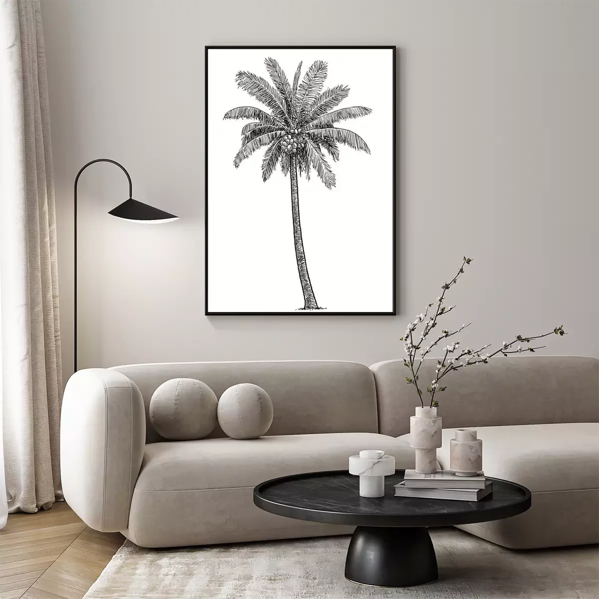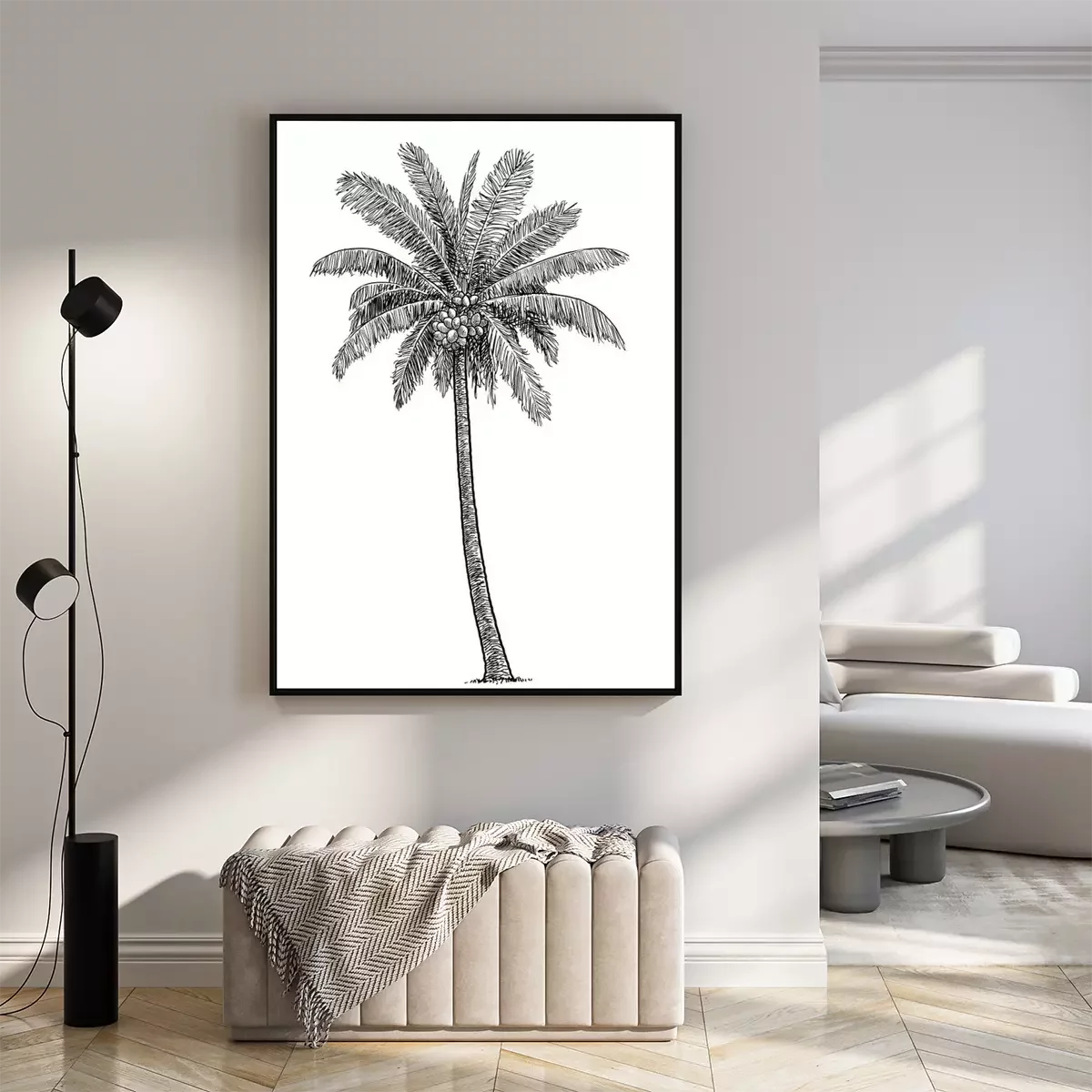 Poster: Einzelne einsame Palme Skizze schwarz-weiß