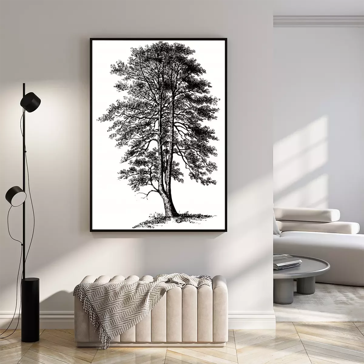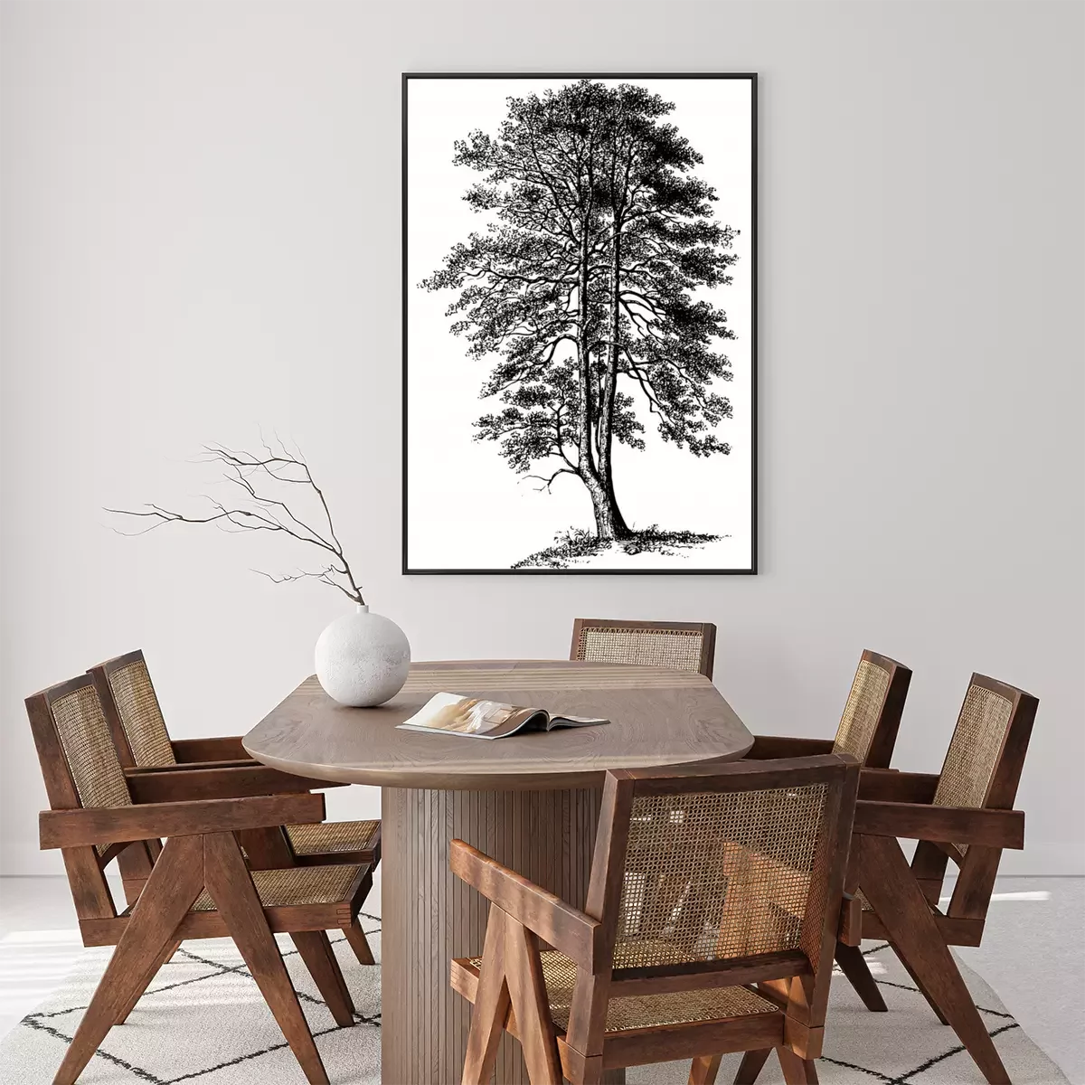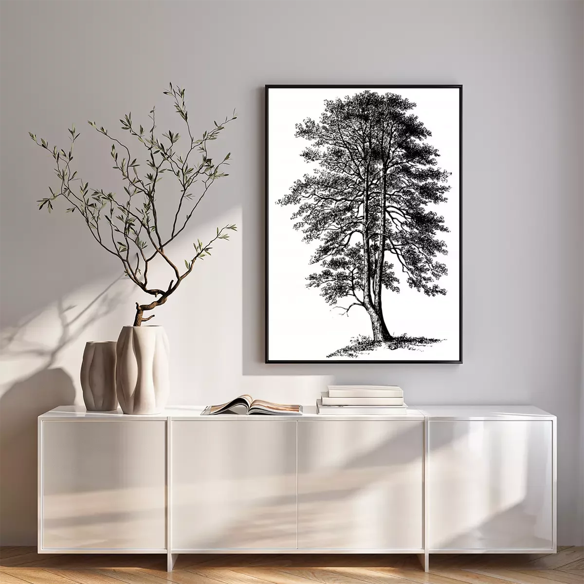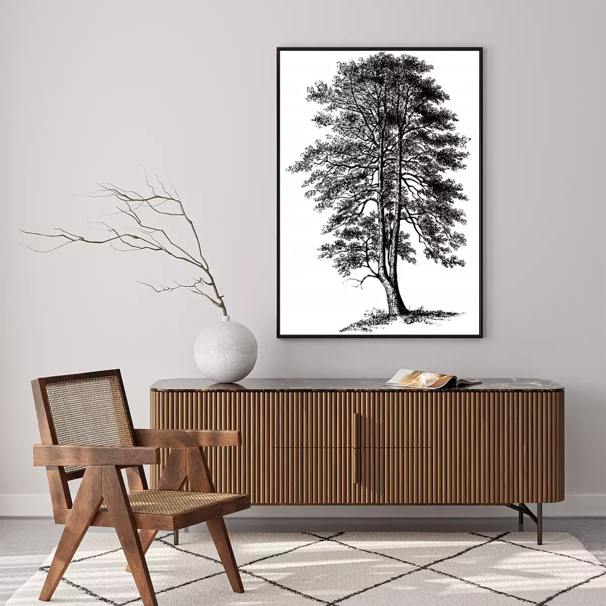 Poster: Einzelner Baum auf schwarz-weißer Skizze