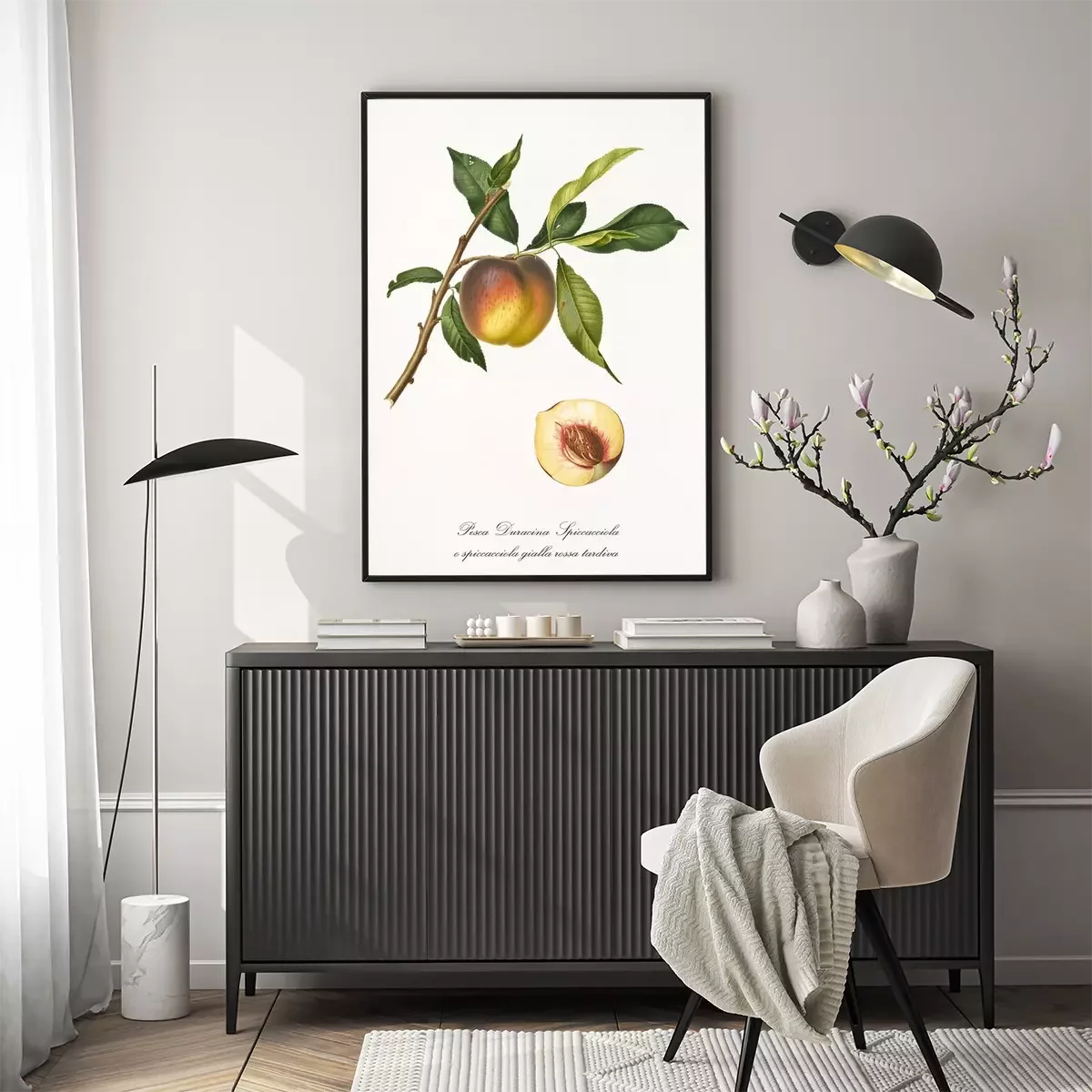 Poster: Einzelner Pfirsich in Retro-Ästhetik