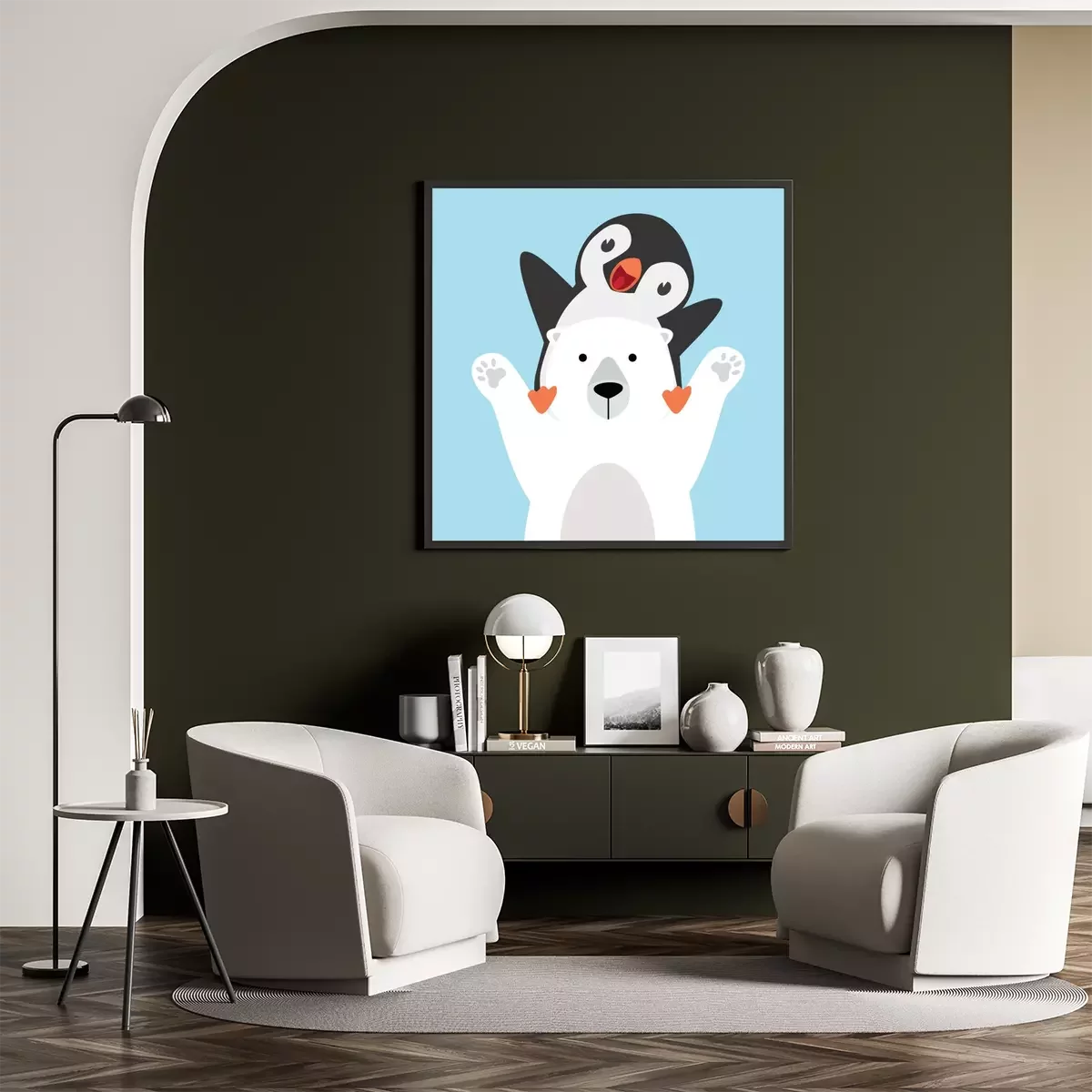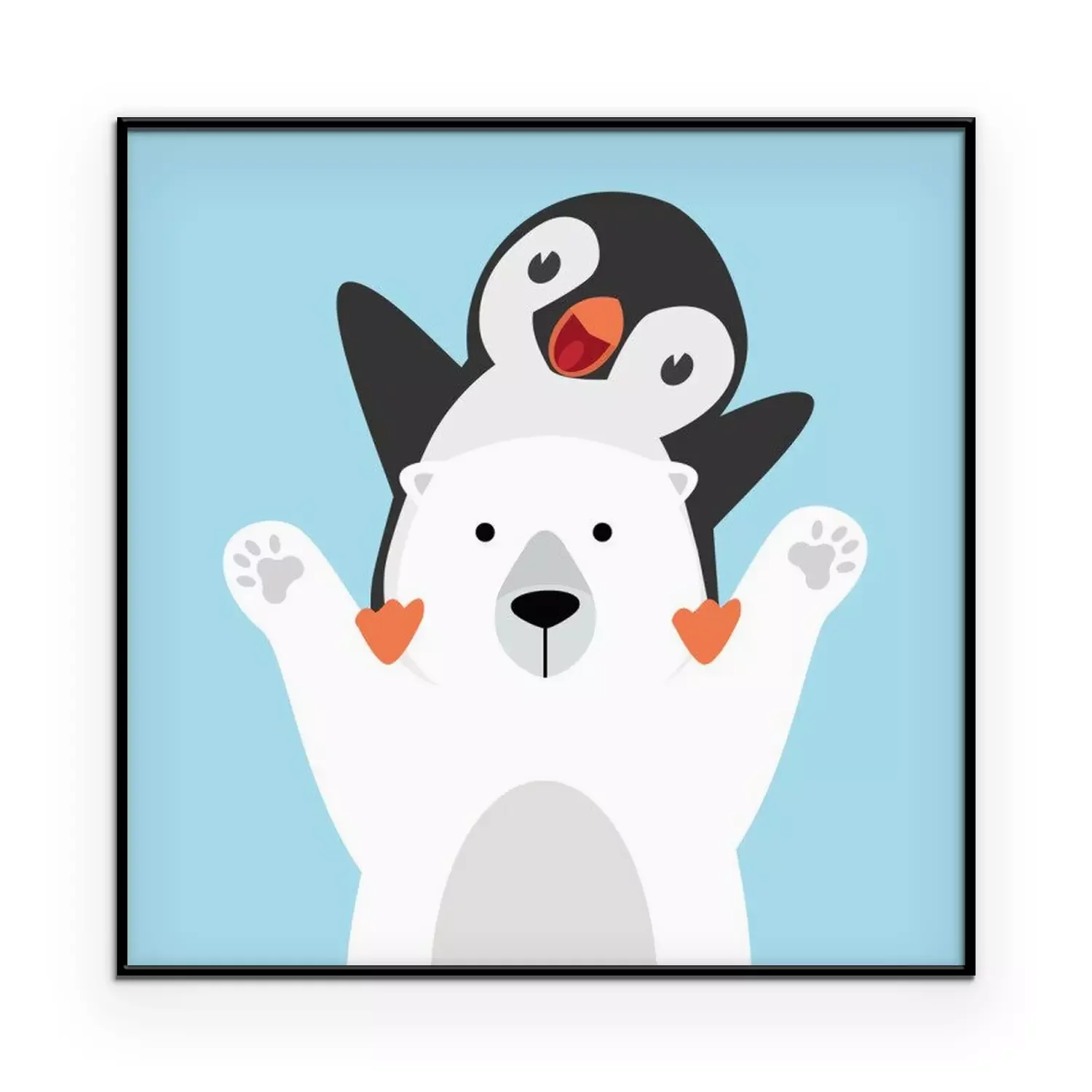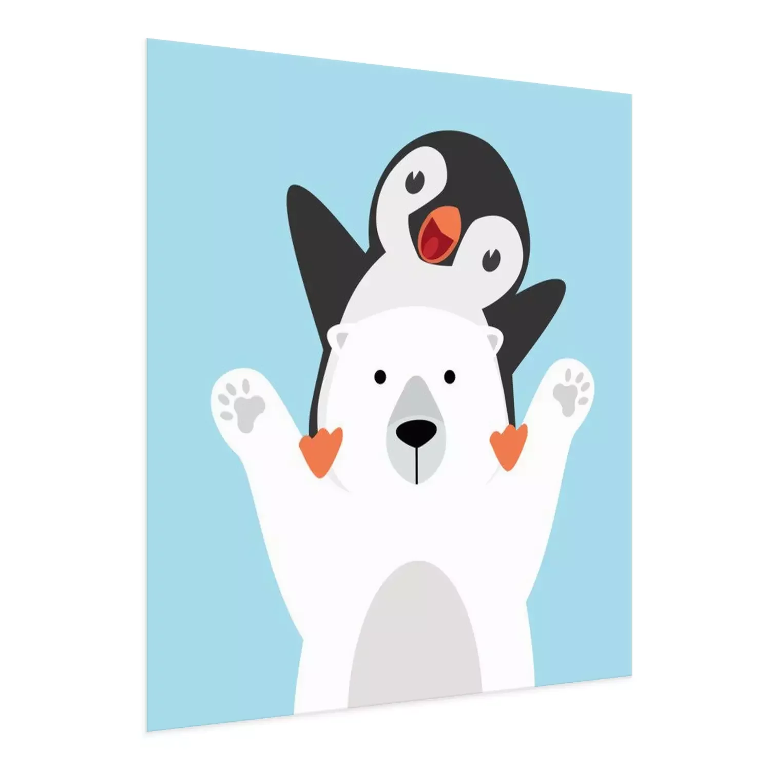 Poster Eisbär, der einen Pinguin auf seinen Schultern trägt