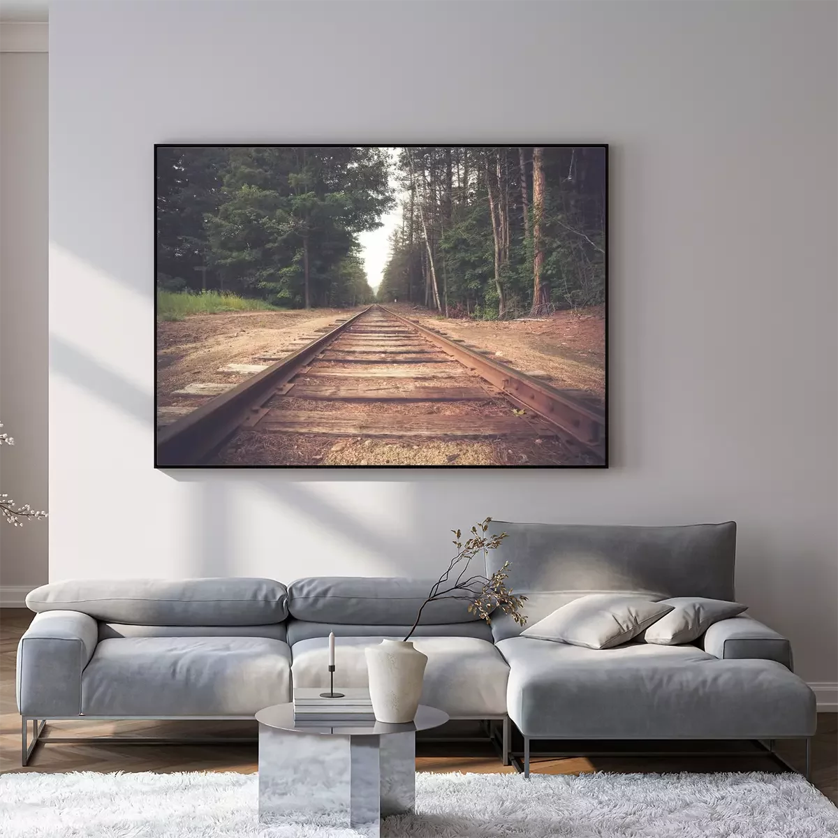 Poster: Eisenbahnschienen mitten im Wald