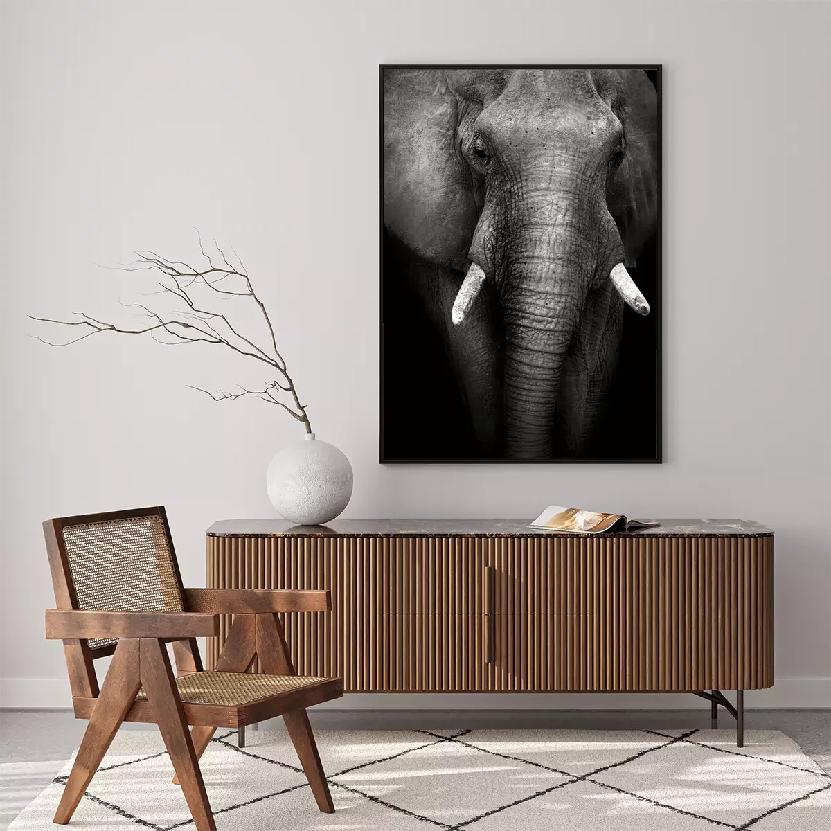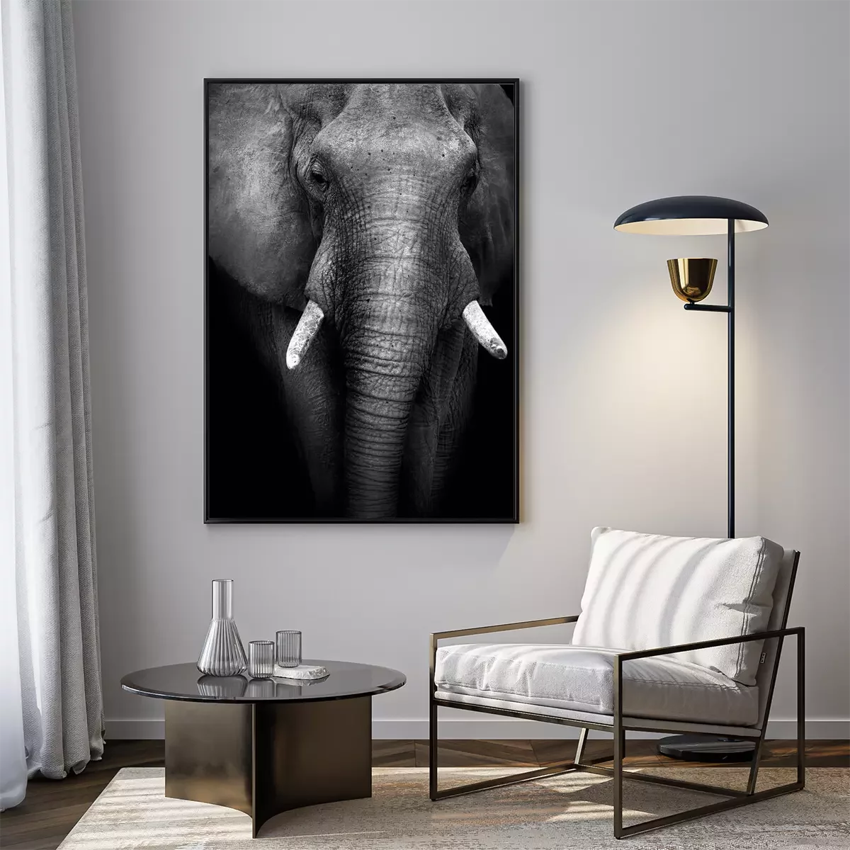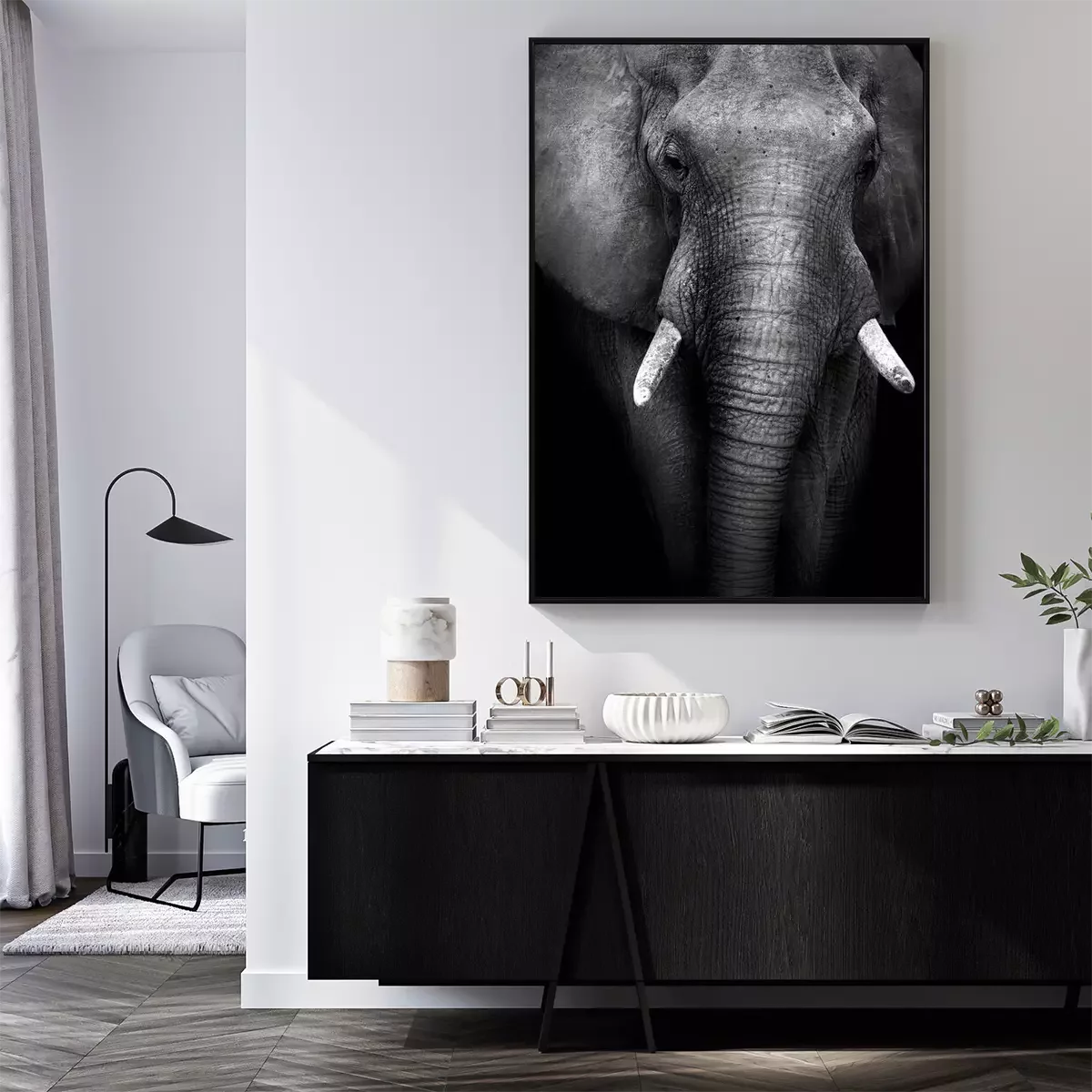 Poster Elefant auf schwarzen Hintergrund