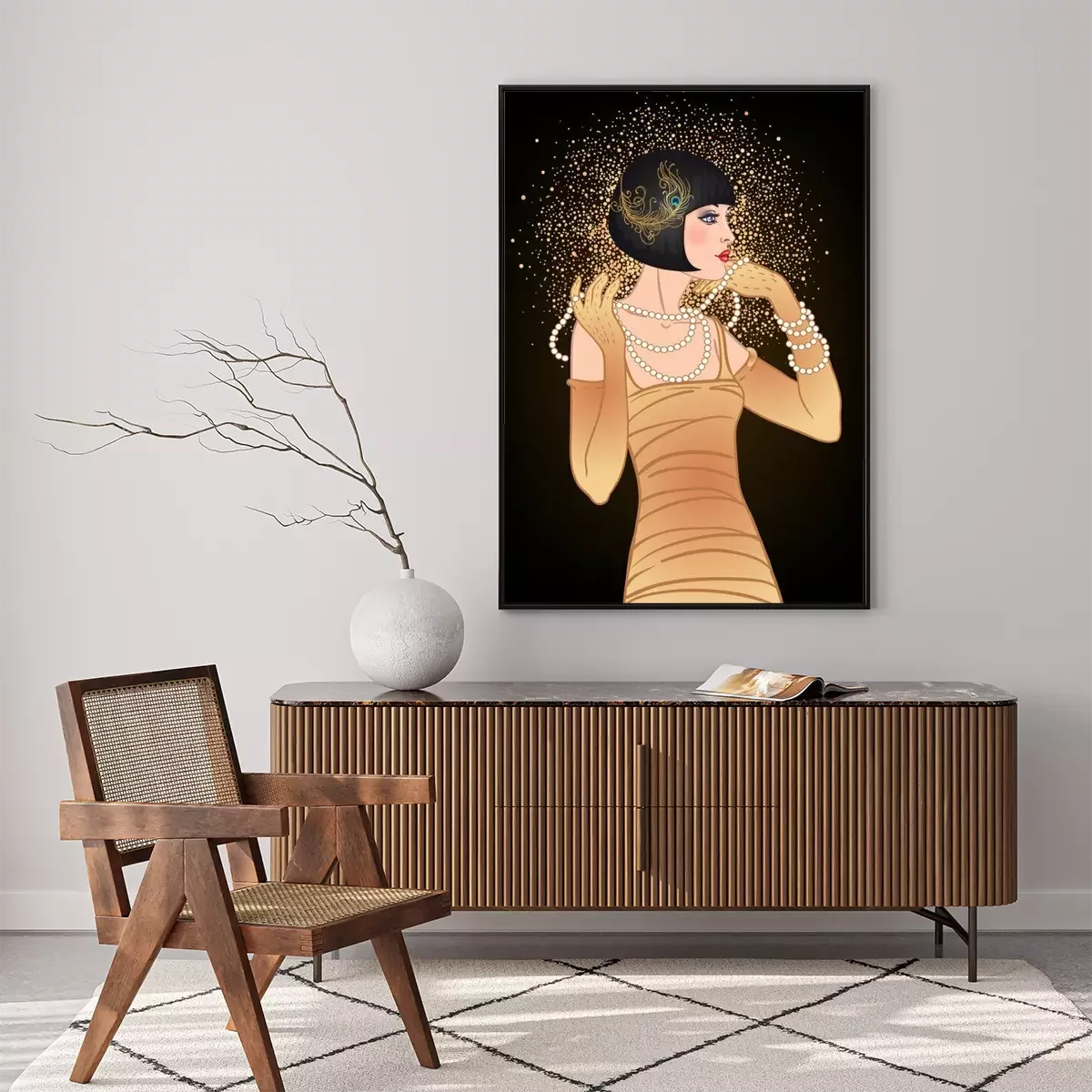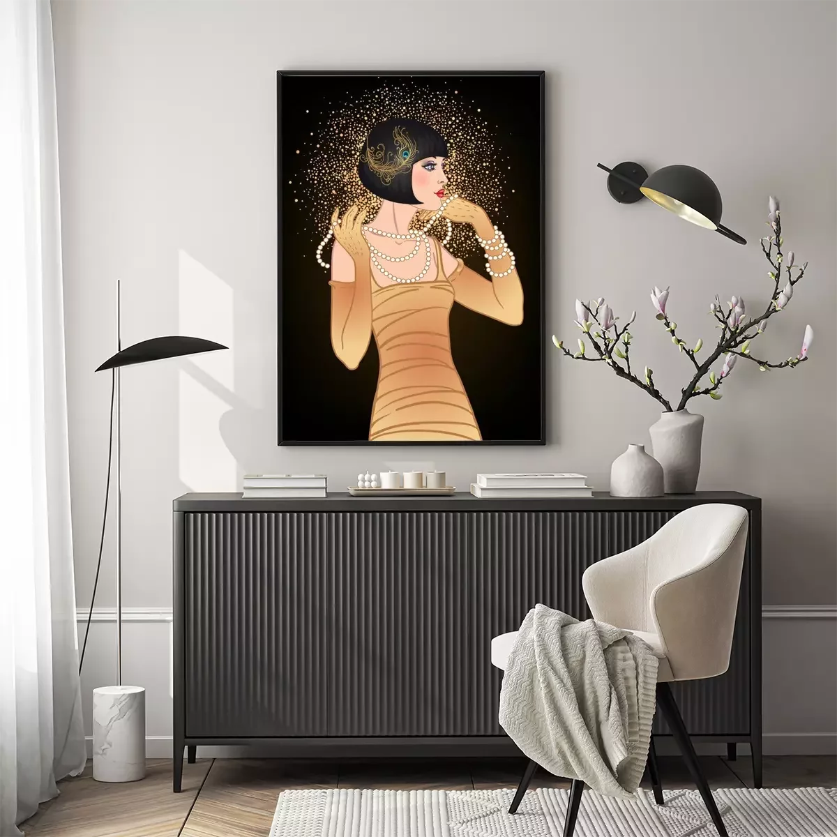 Poster: Elegante Frau auf schwarzem Hintergrund