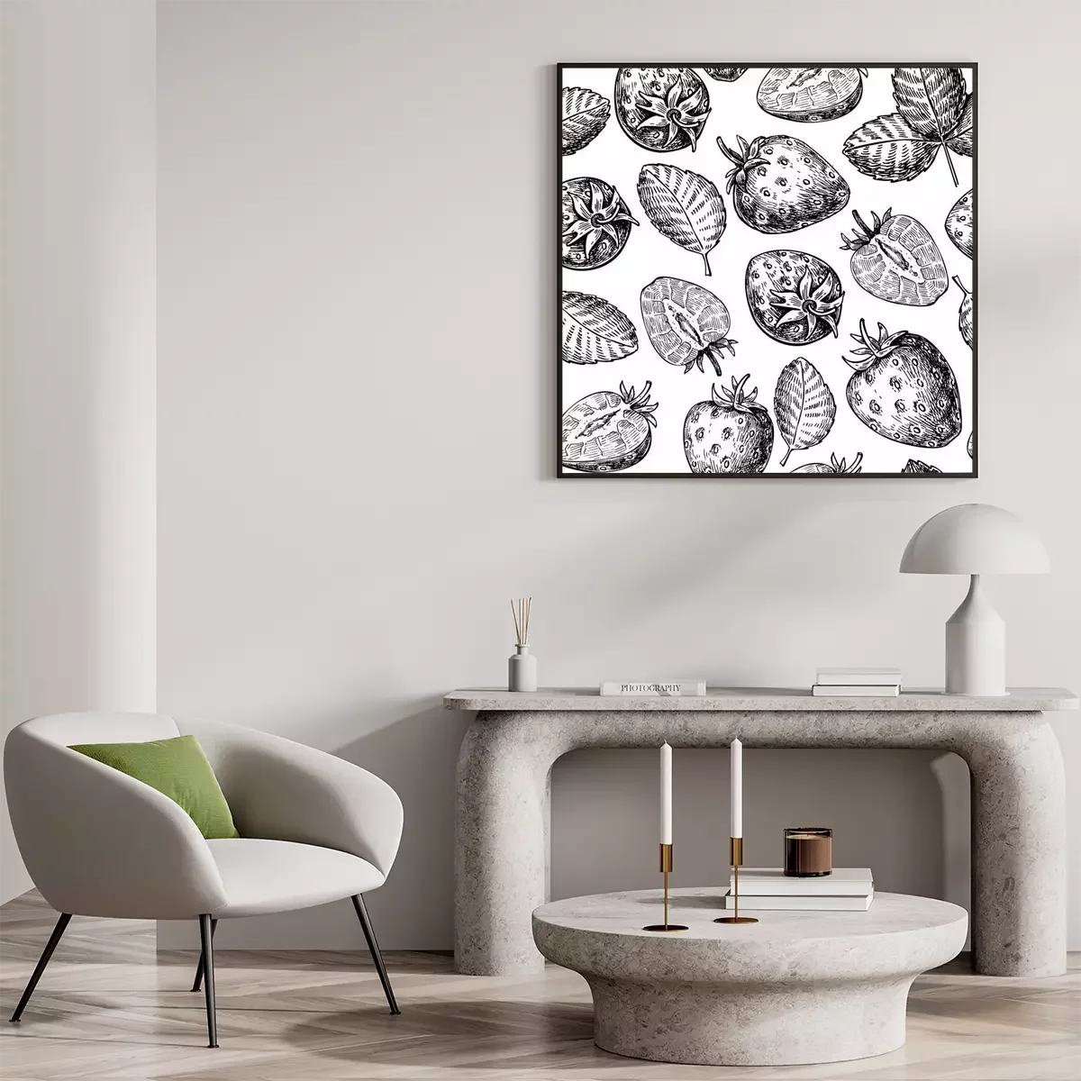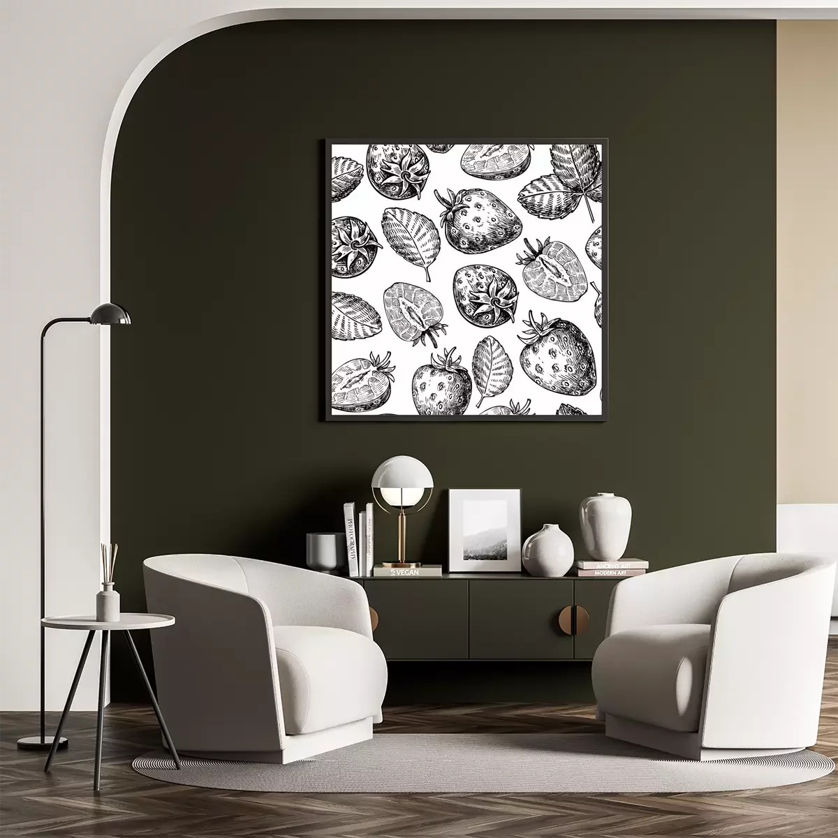 Poster Erdbeer Vektor nahtlose Muster Zeichnung. Isolierte Hand gezeichnet