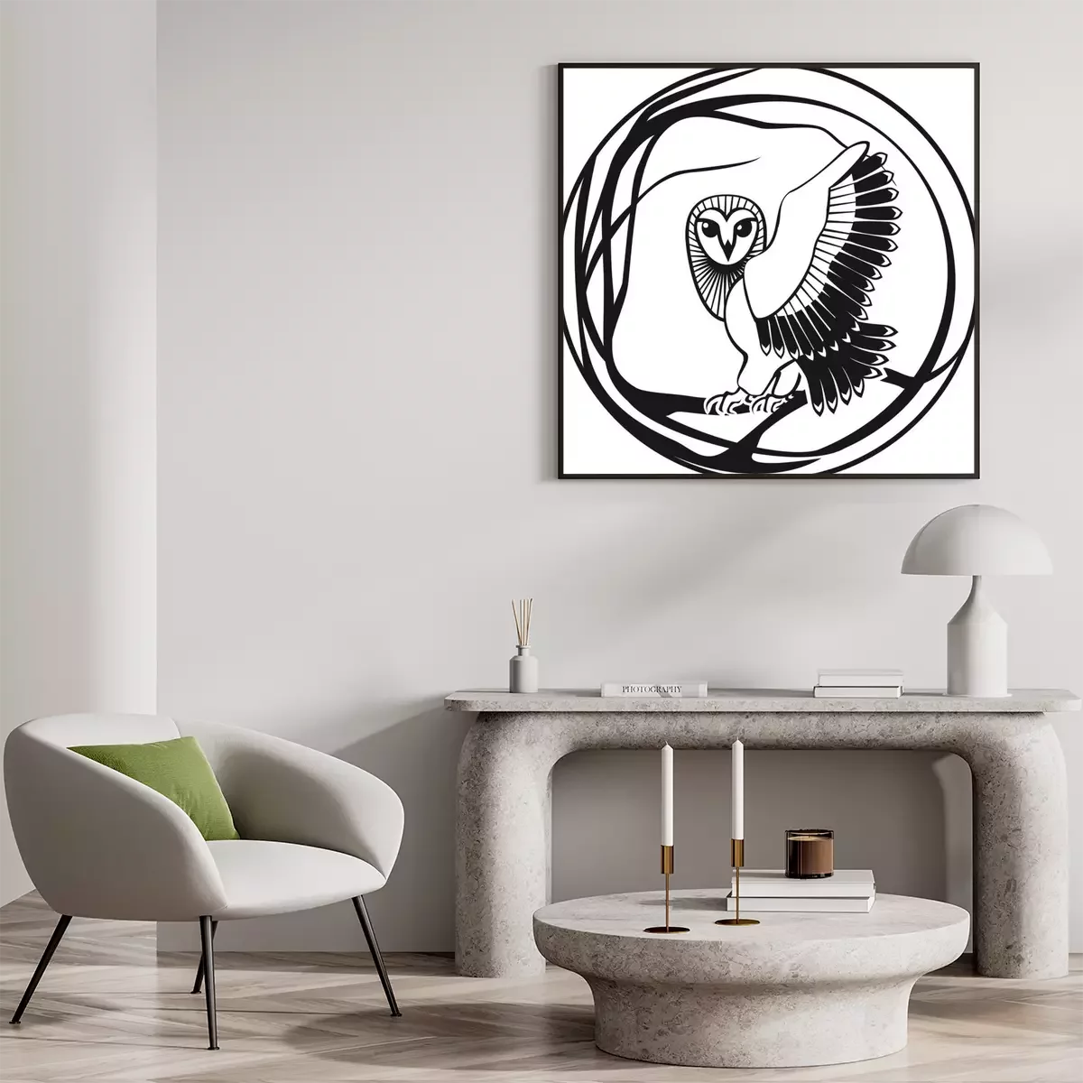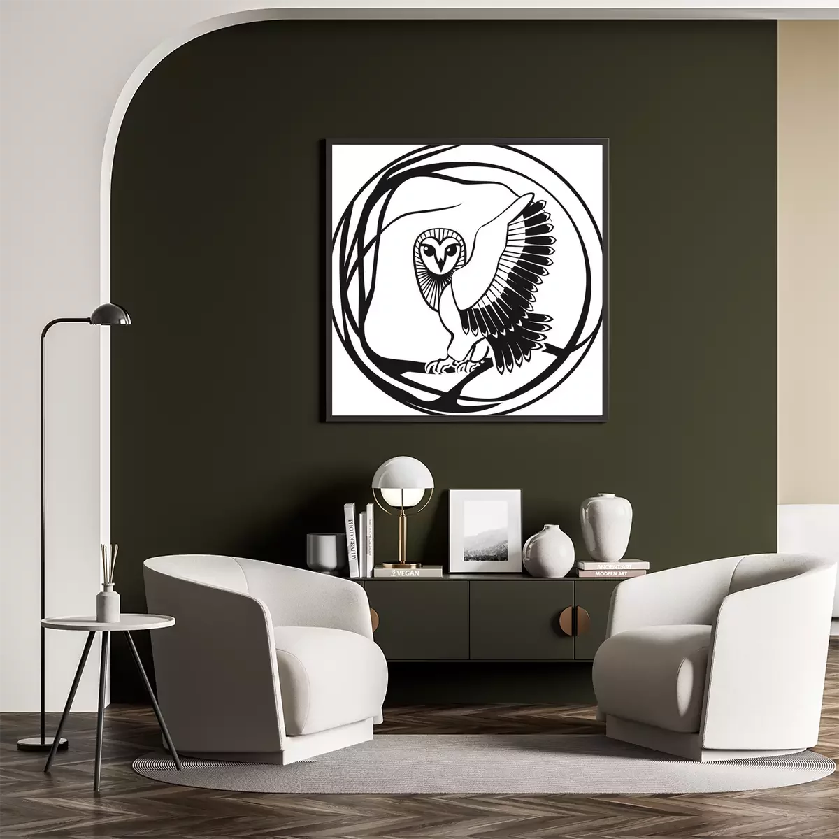 Poster: Eule schwarz-weiße Grafik