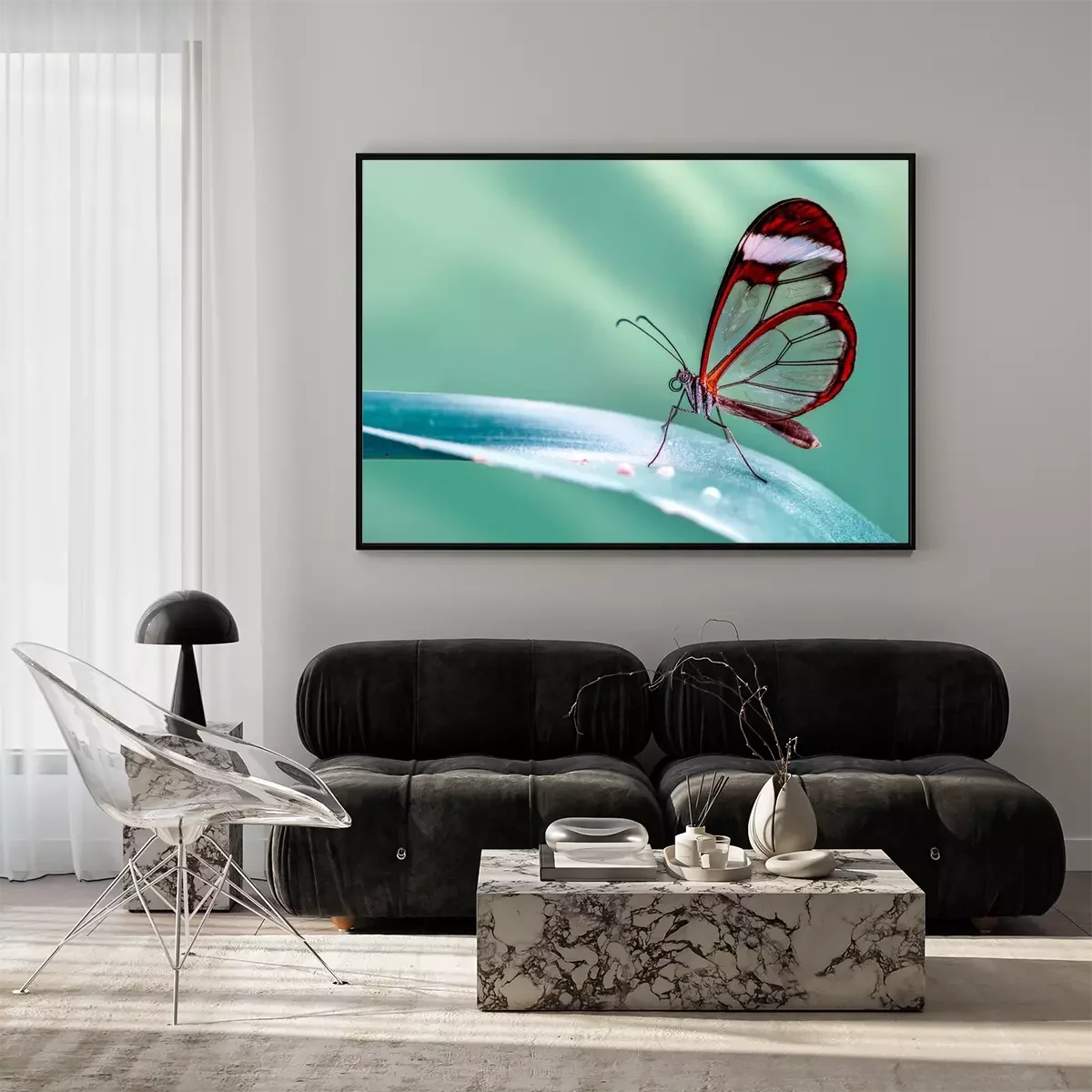 Poster: Exotischer Schmetterling auf einem Pflanzenblatt