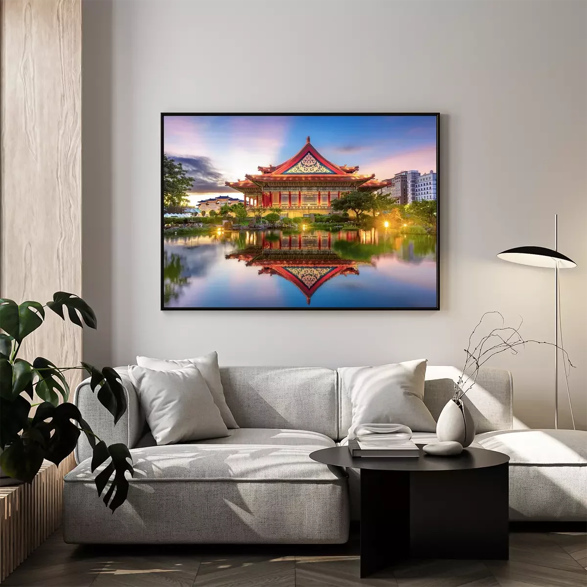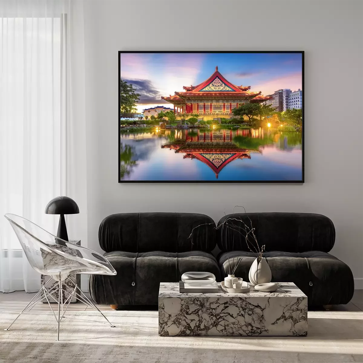 Poster: Exotisches Gebäude über der Wasseroberfläche
