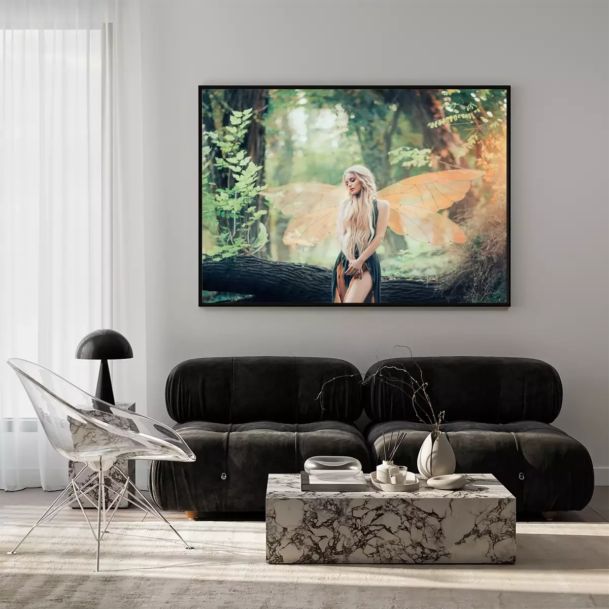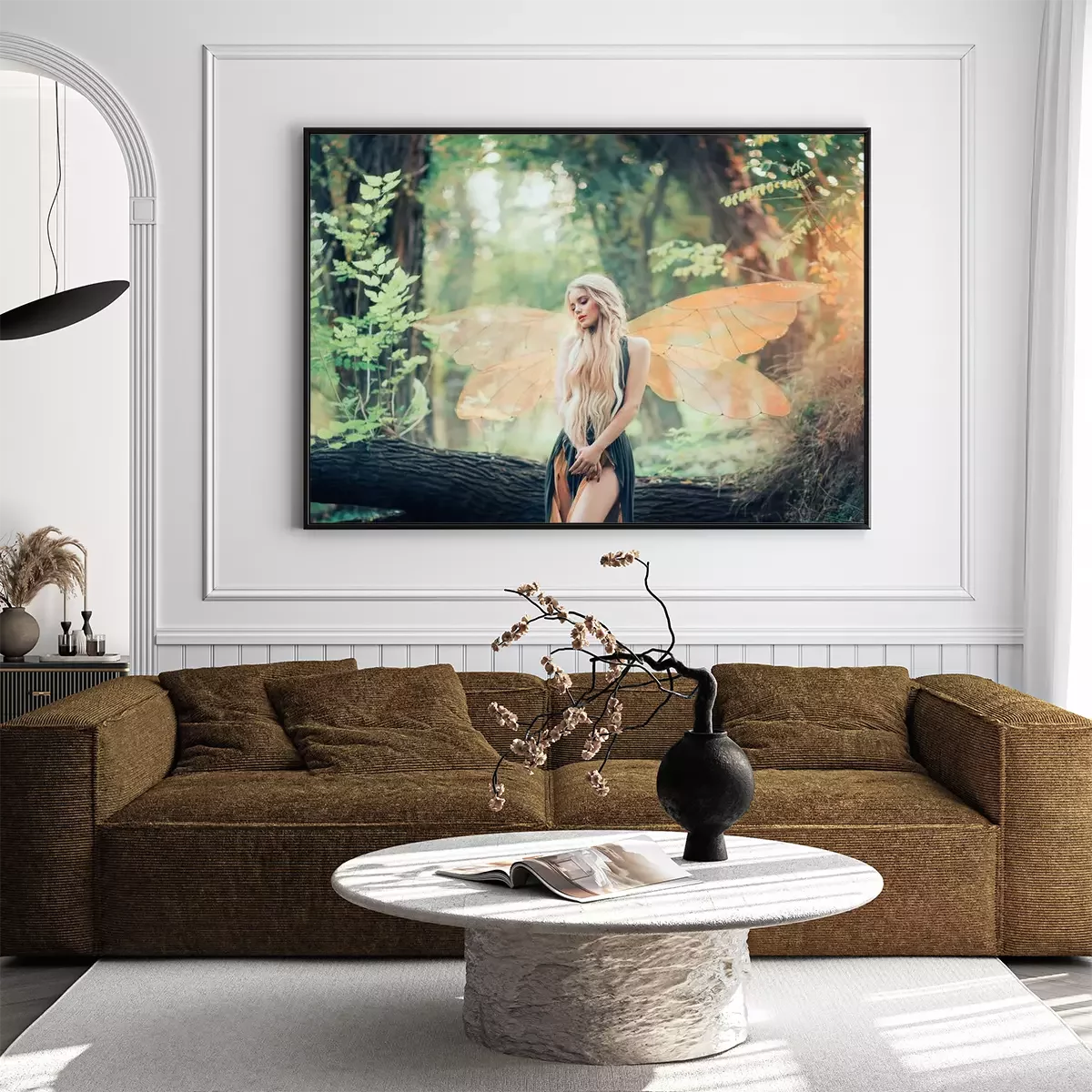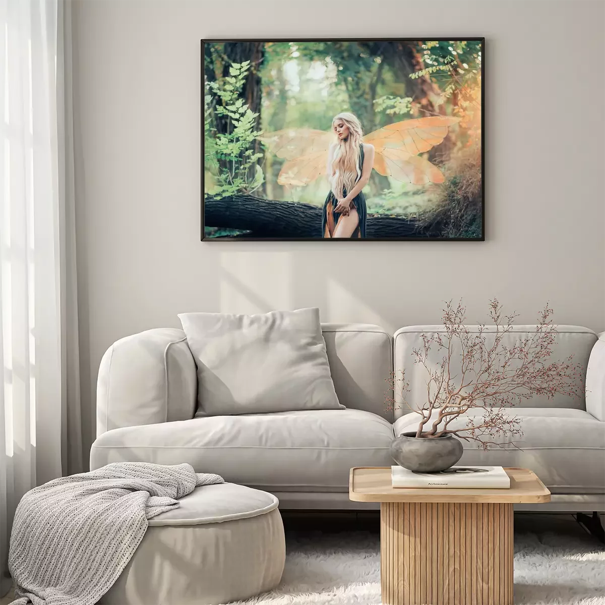 Poster: Fantasy inmitten eines Waldes mit einer Fee