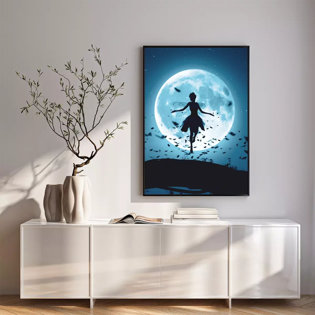 Poster: Fee auf dem Hintergrund eines Vollmondes