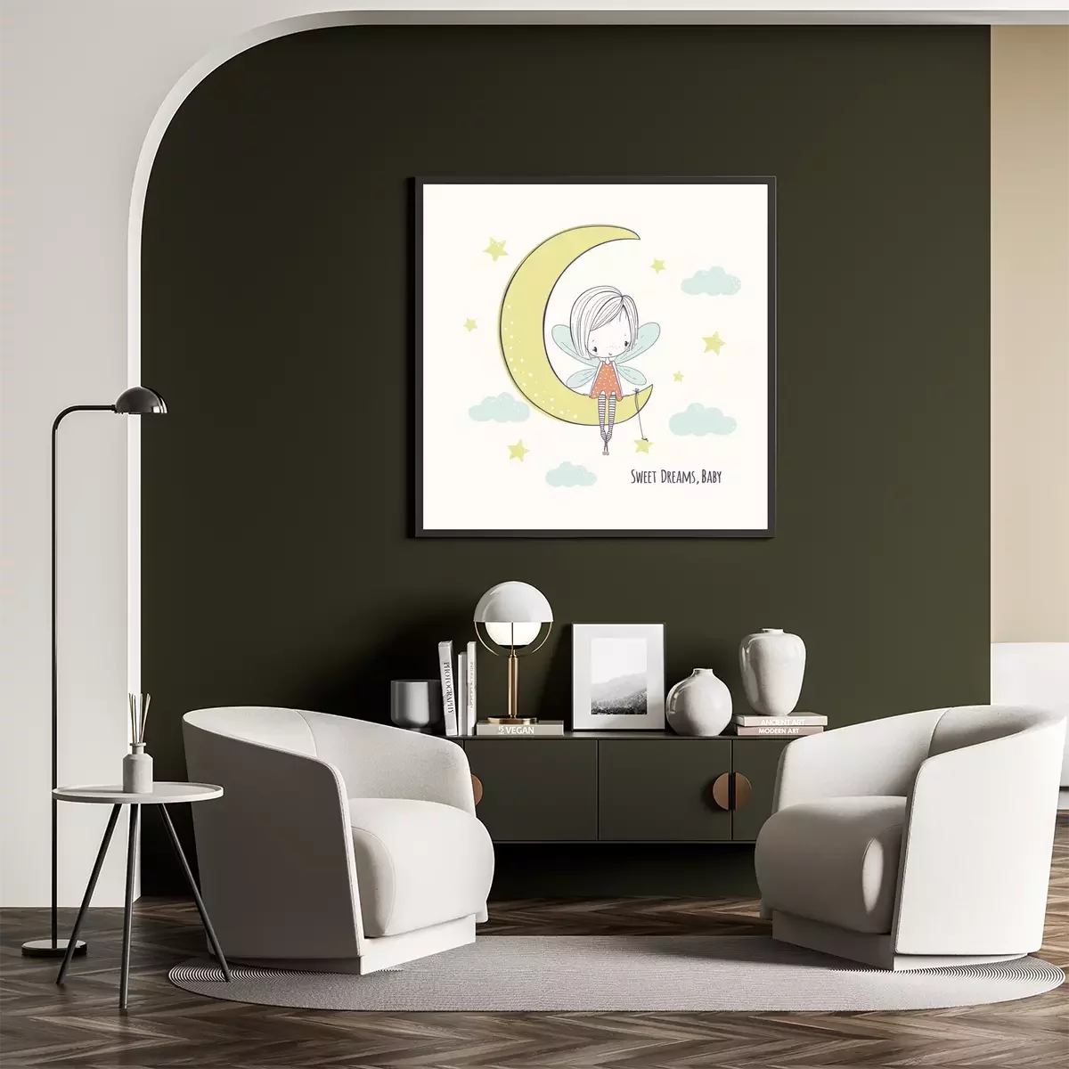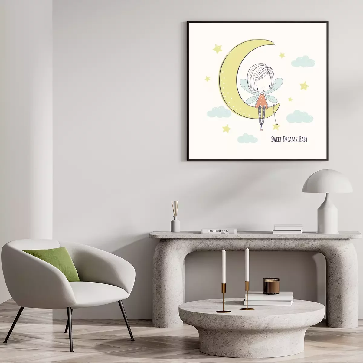 Poster: Fee auf dem Mond mit einem Stern an ihr befestigt