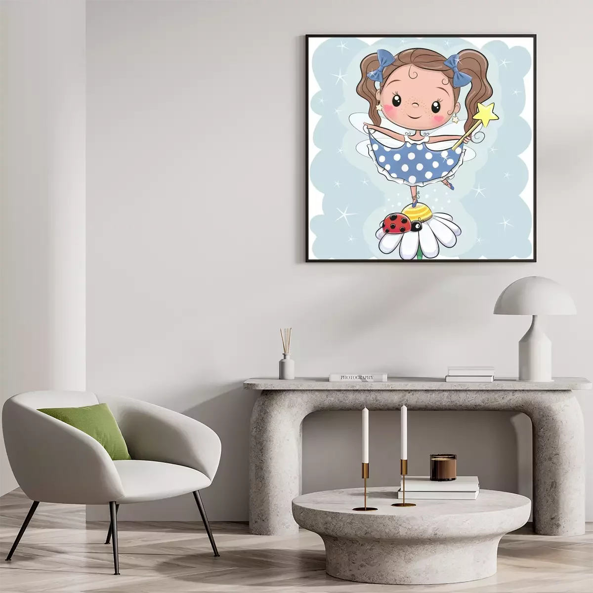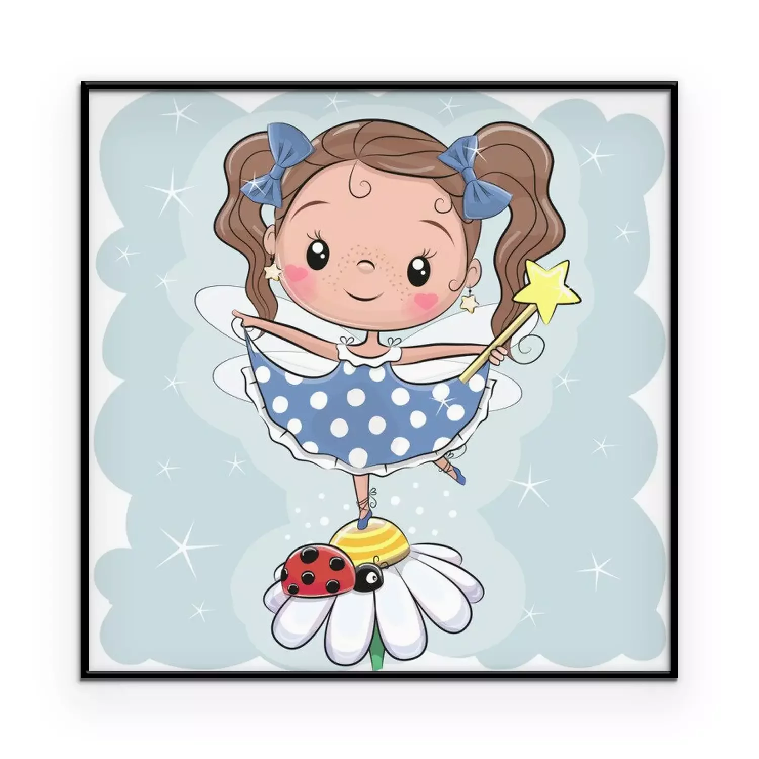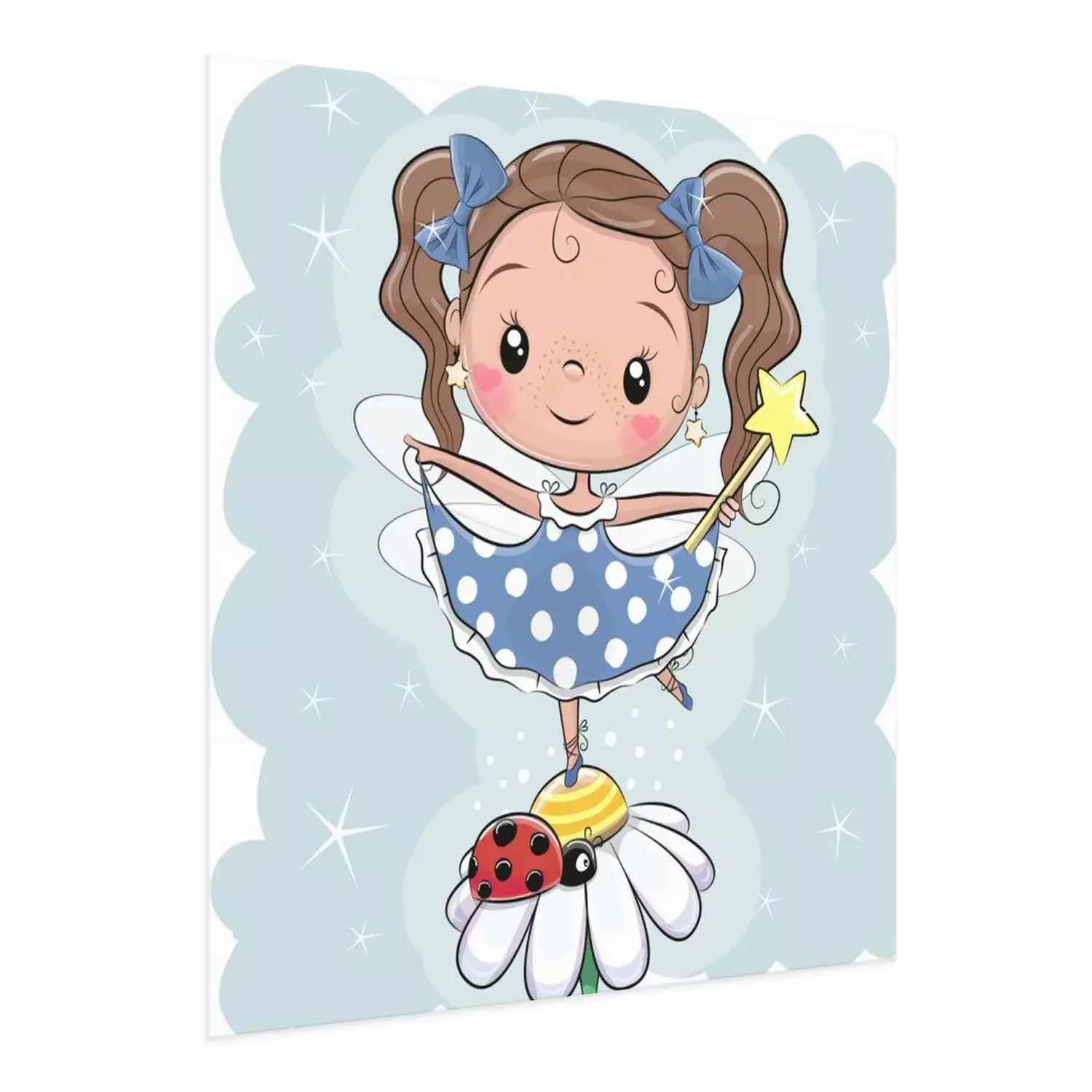 Poster: Fee auf einer Blume auf einem Bein stehend