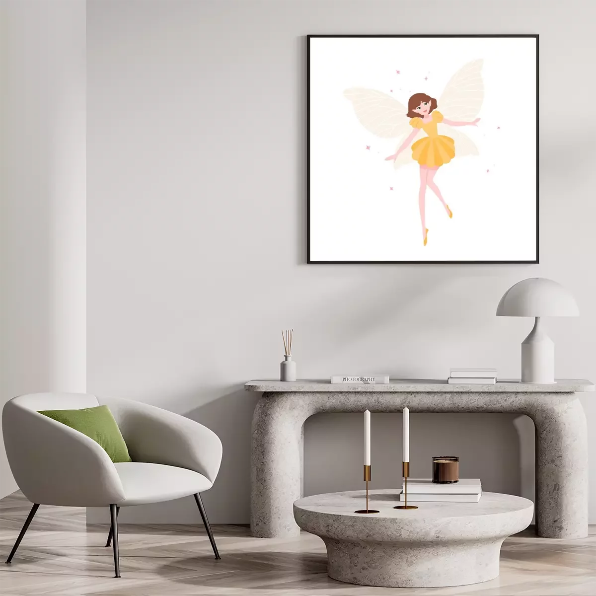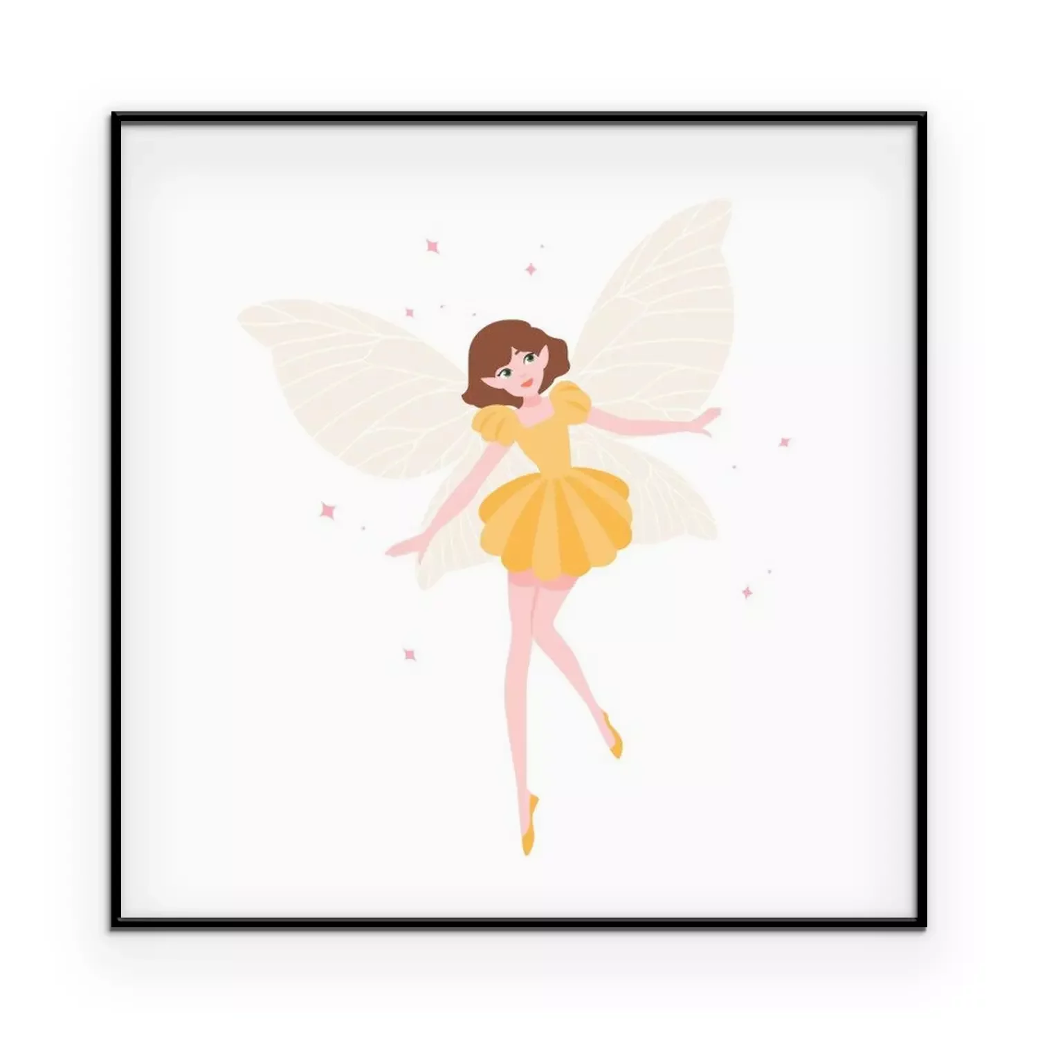 Poster: Fee in gelbem Kleid und Halbschuhen