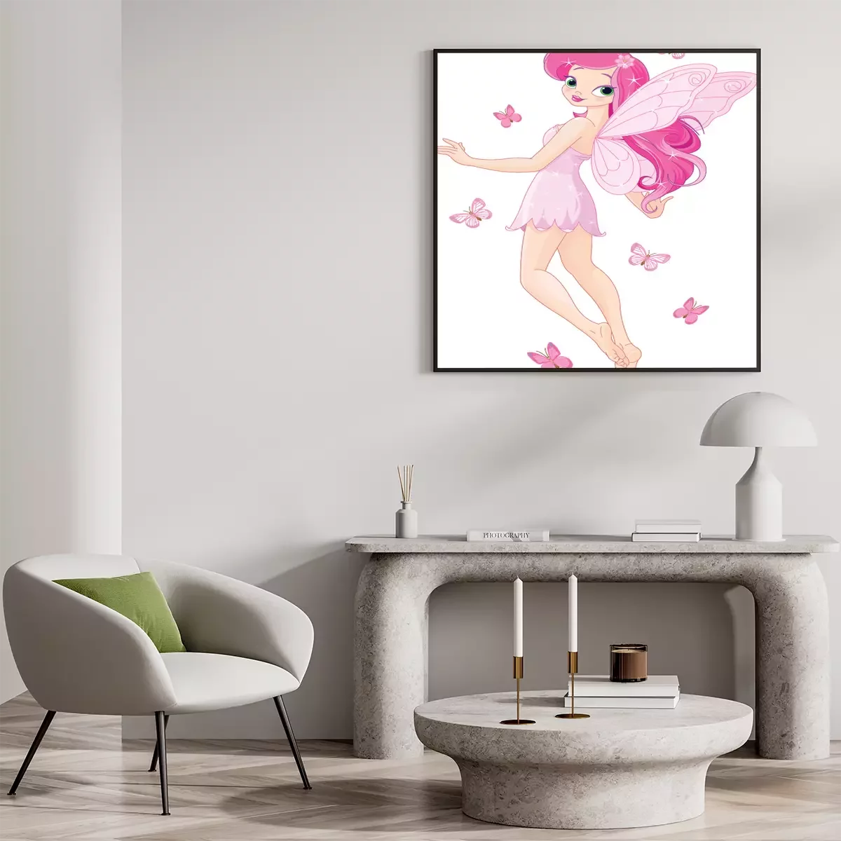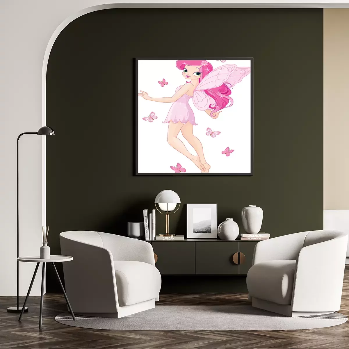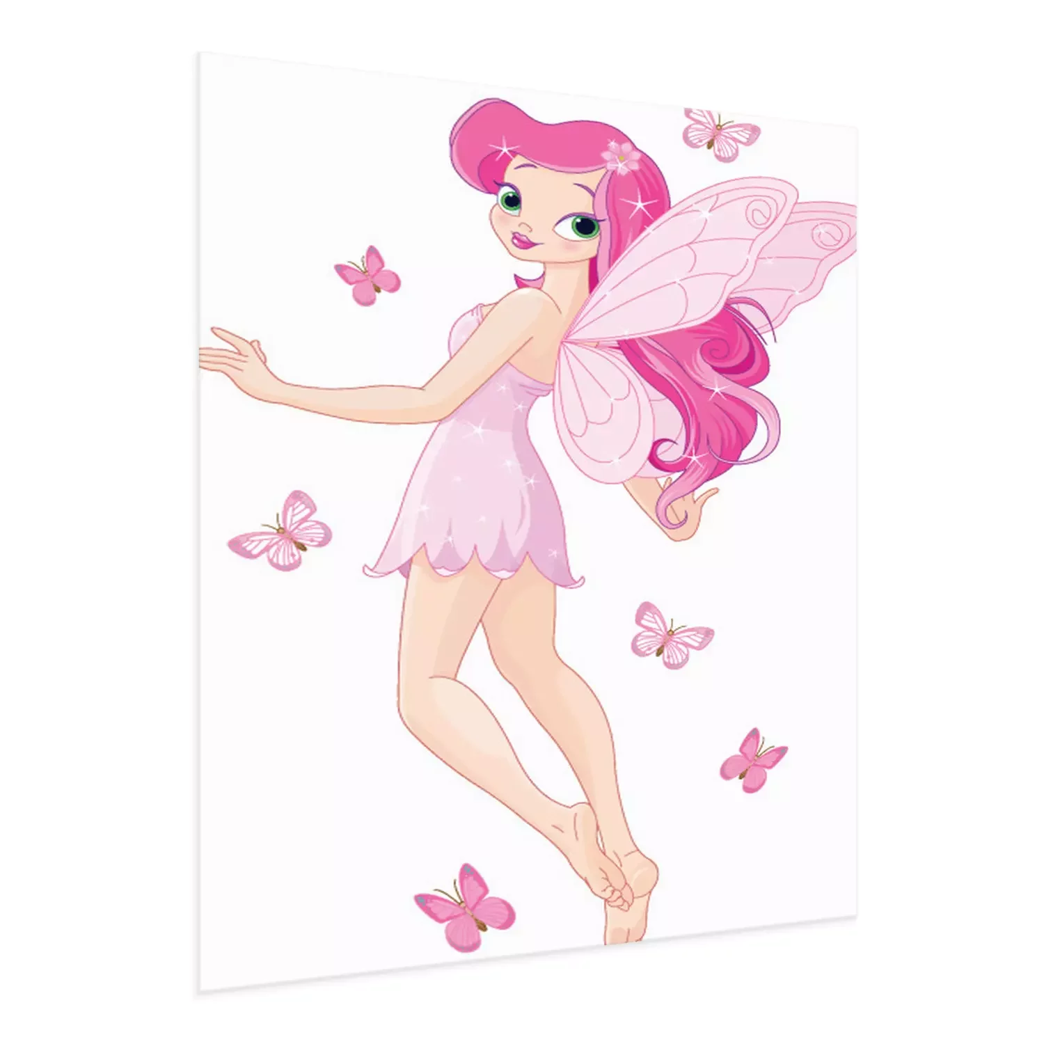 Poster: Fee mit langen rosa Haaren und Schmetterlingen