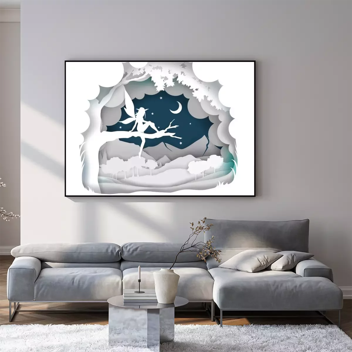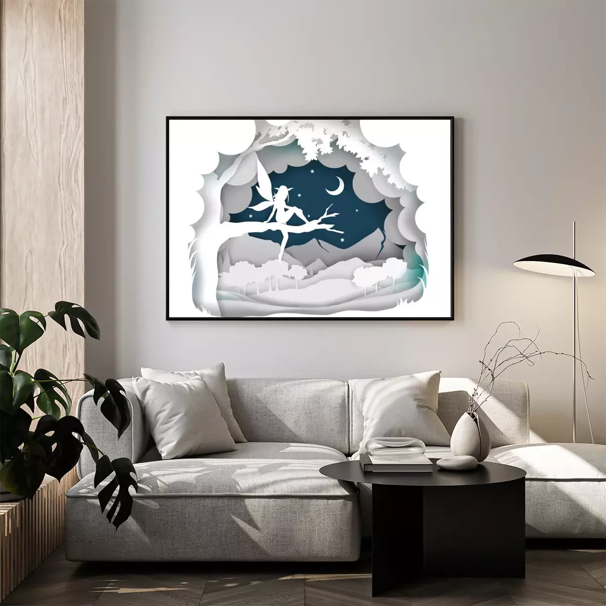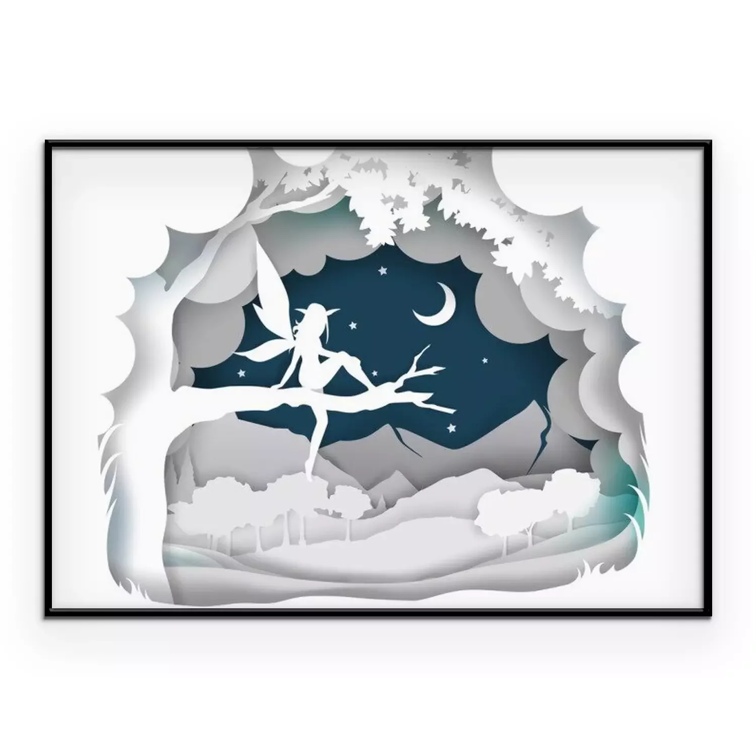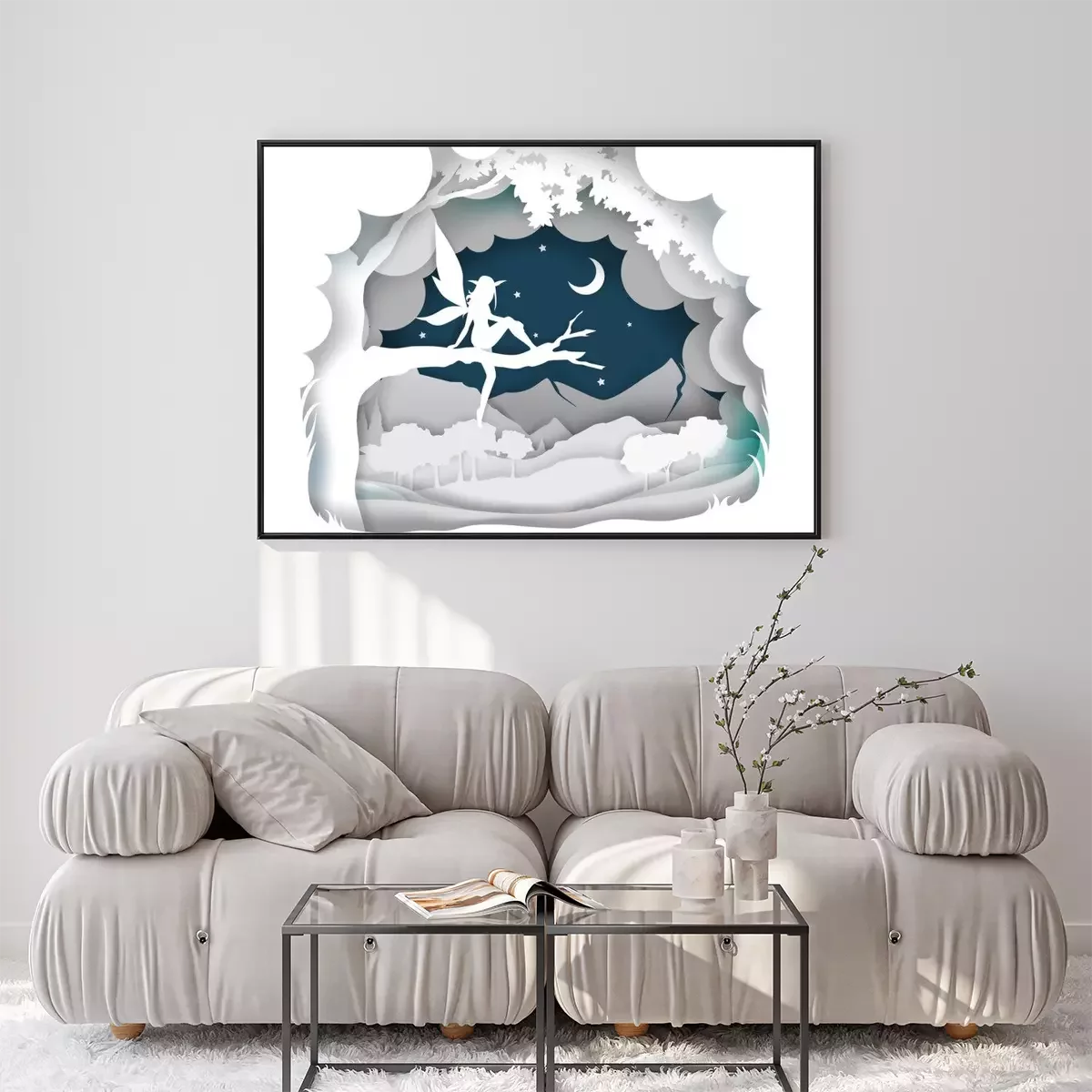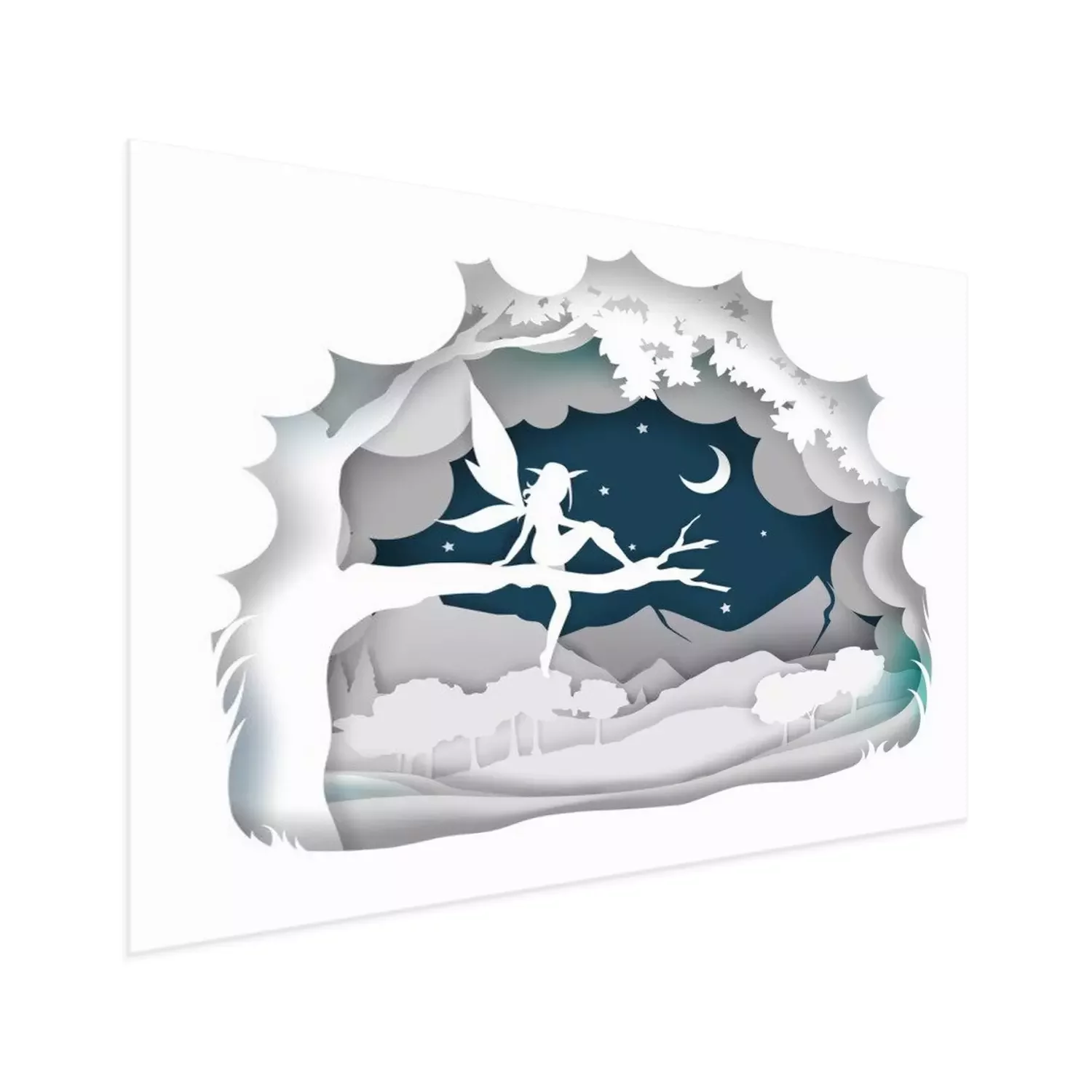 Poster: Fee sitzend auf einem ausgeschnittenen Ast
