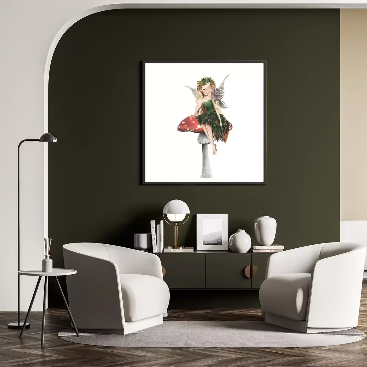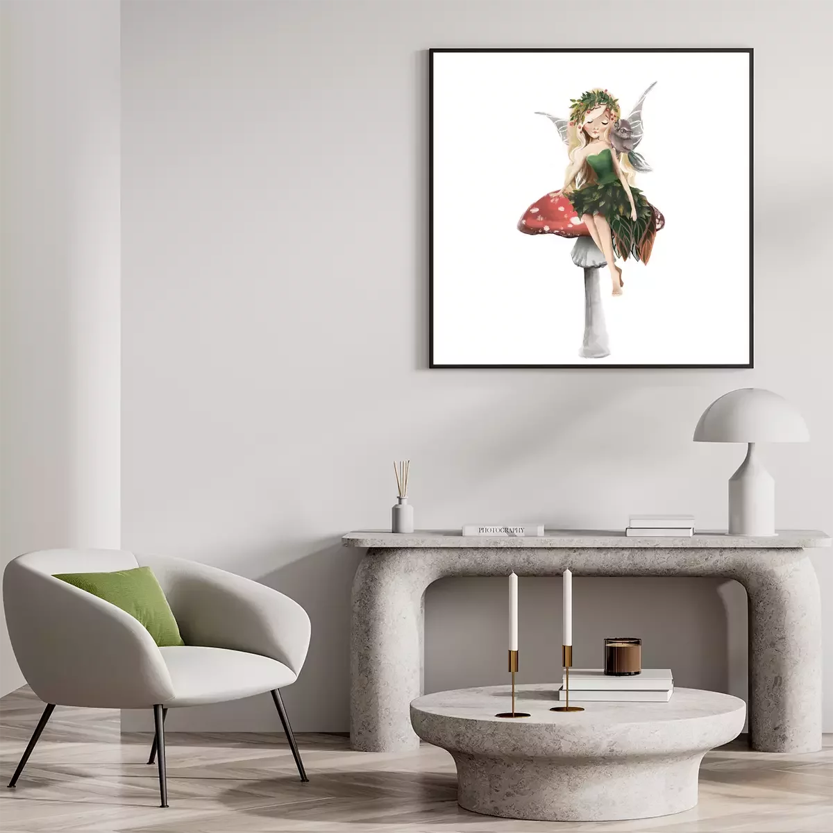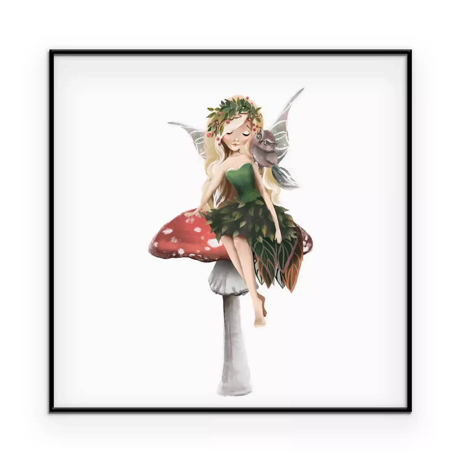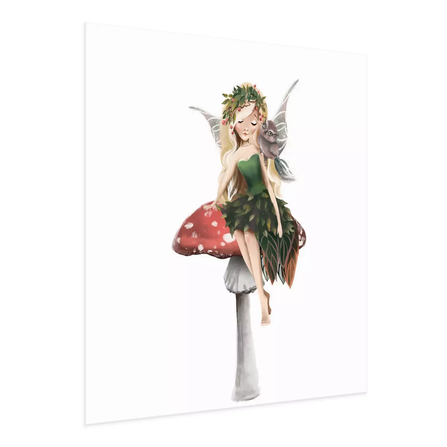 Die Waldfee auf einem mit Blumen bedeckten Ast