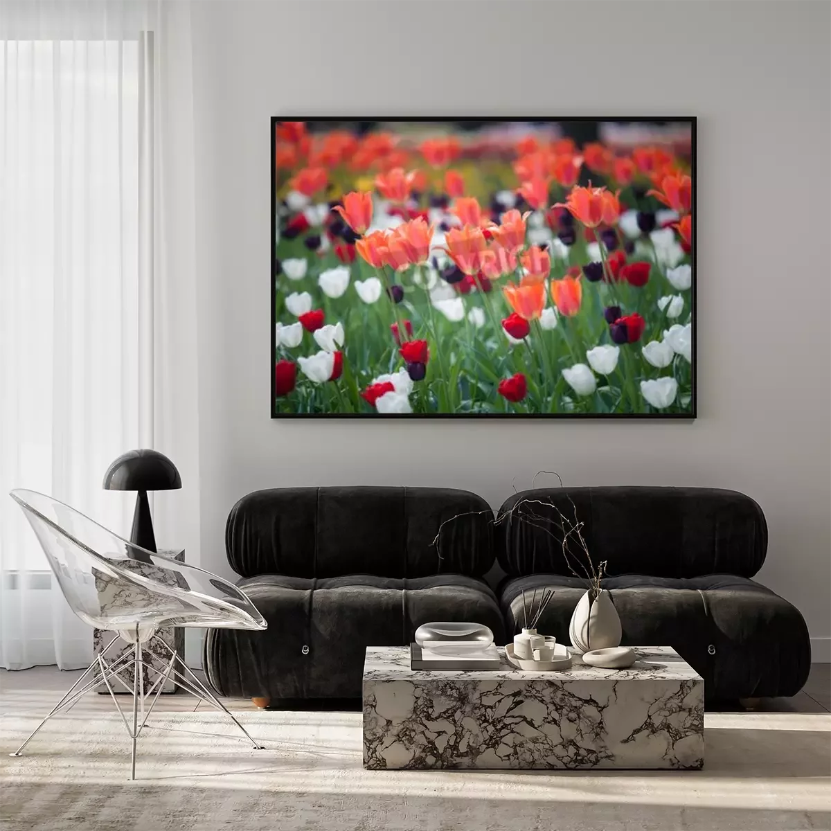 Poster: Feld von bunten Tulpen