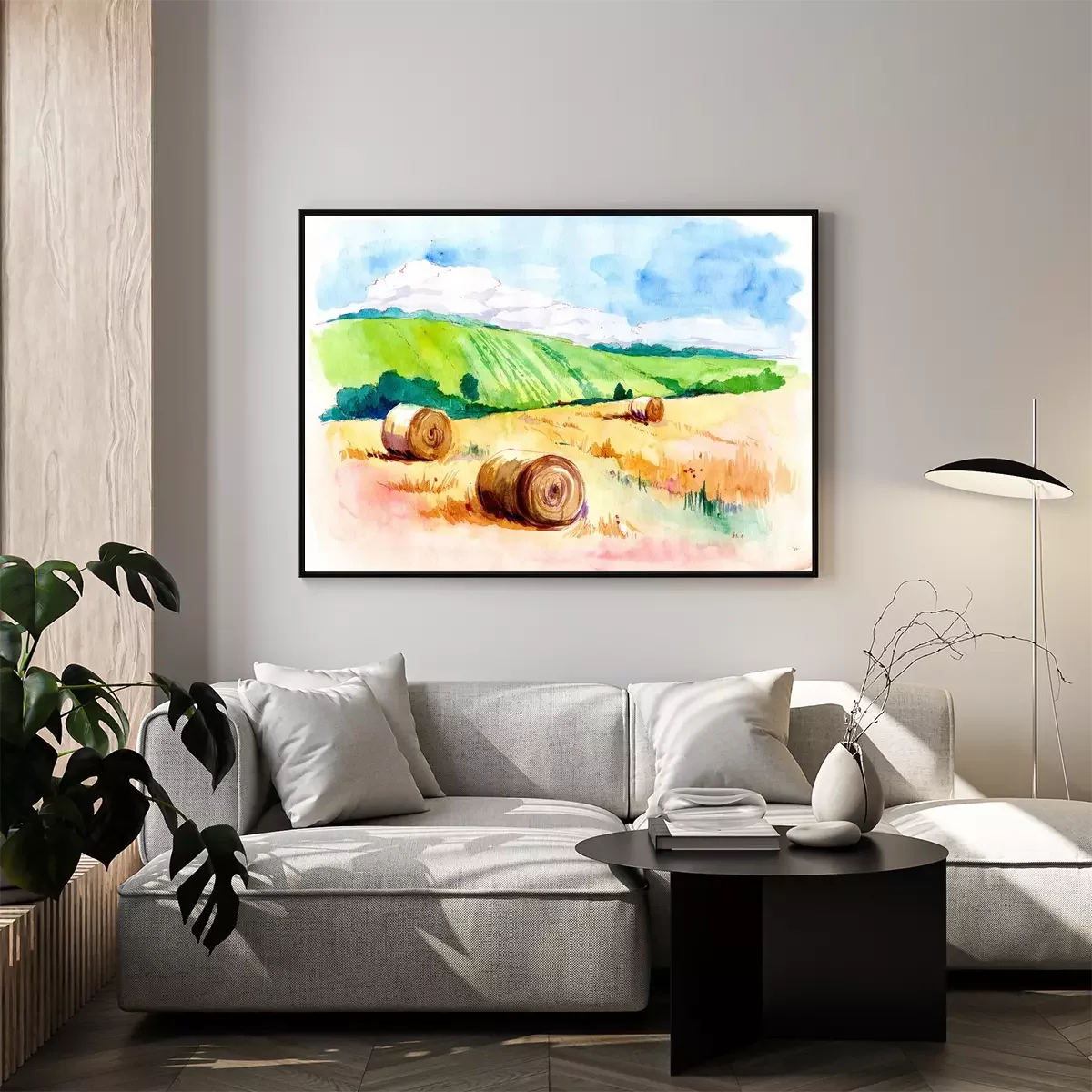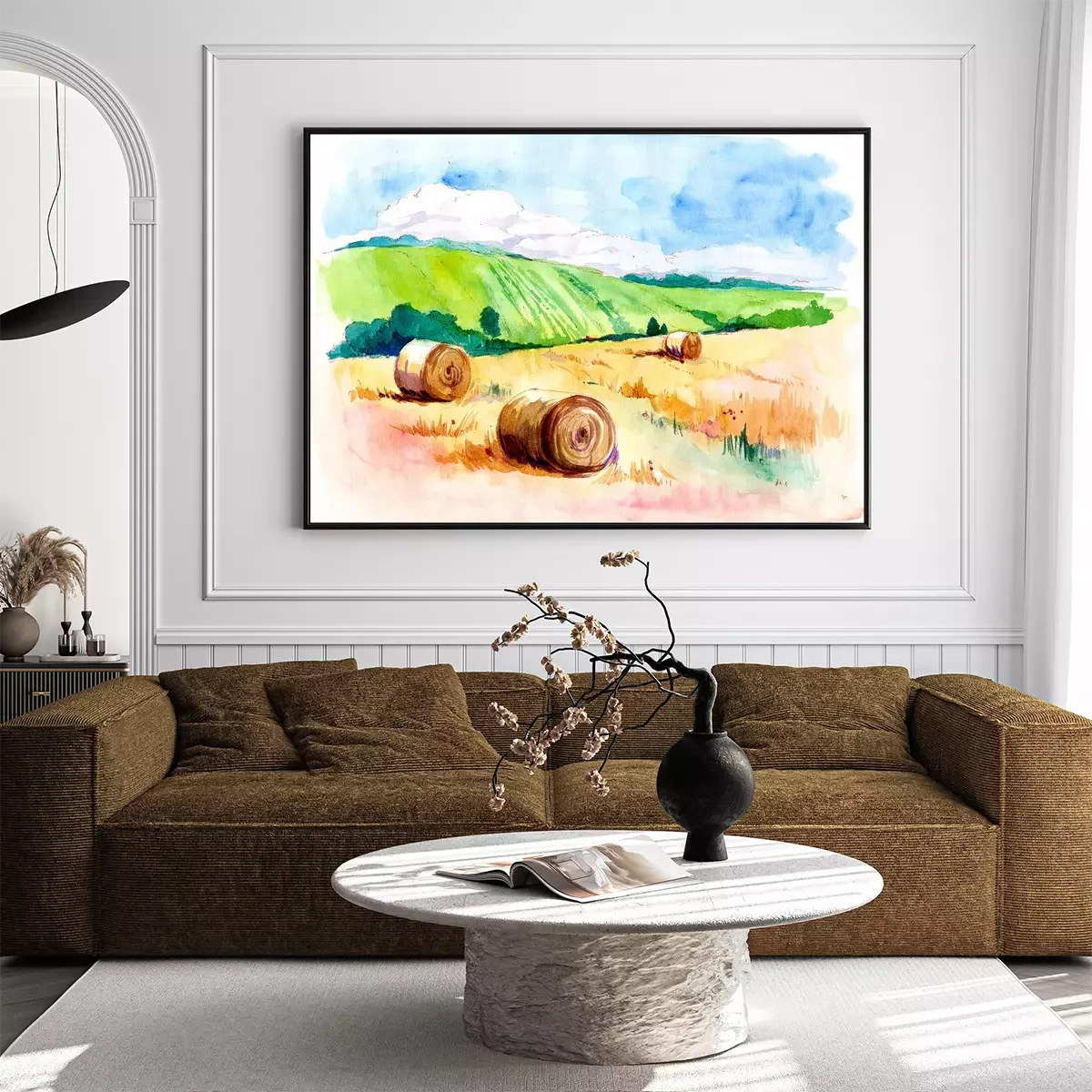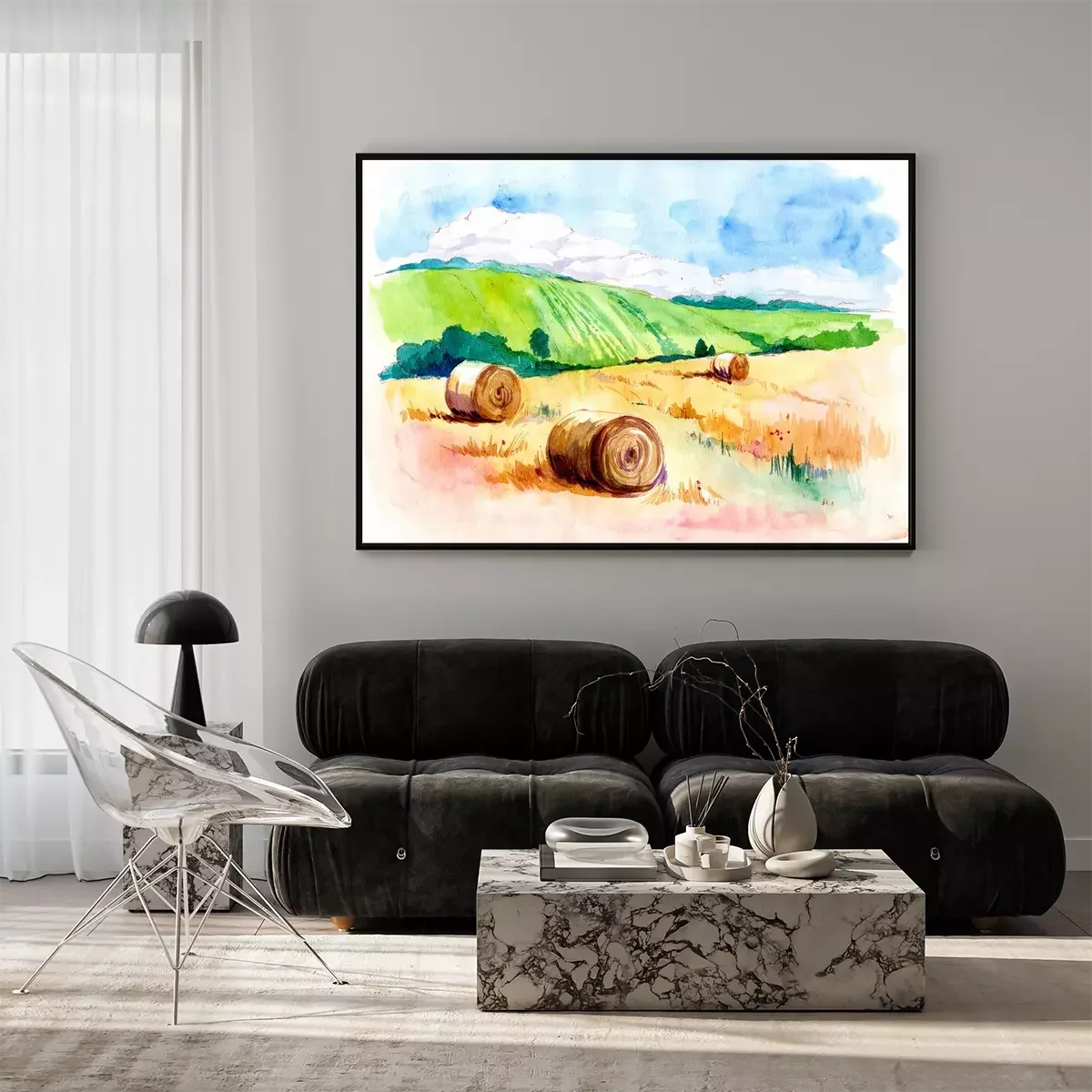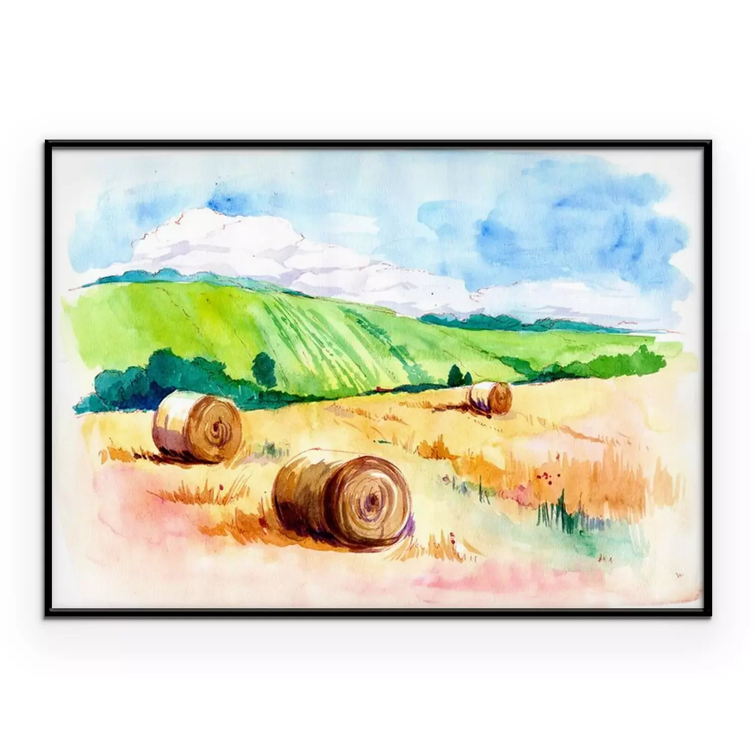 Poster: Felder der Toskana auf Aquarelldarstellung