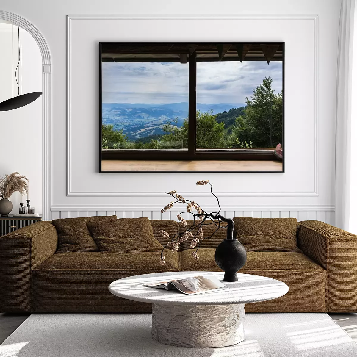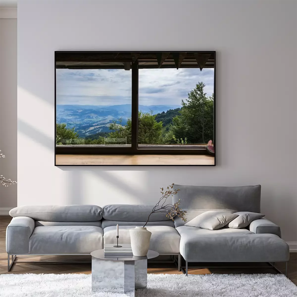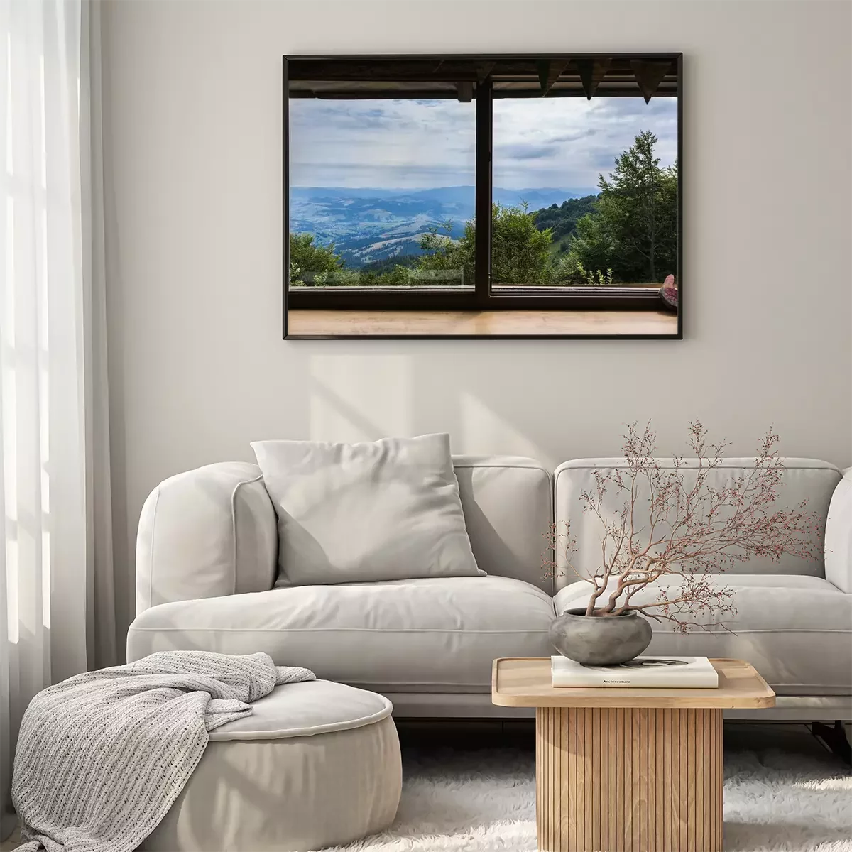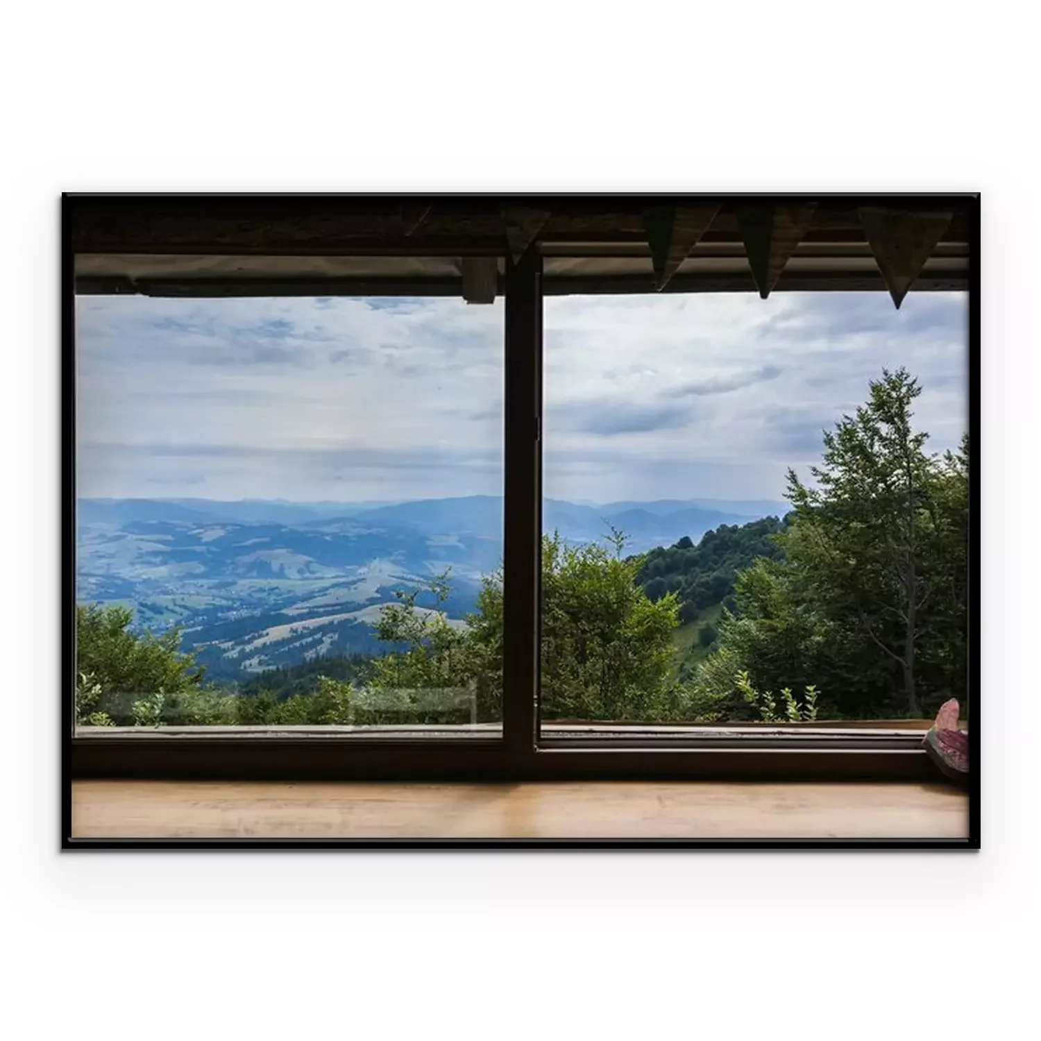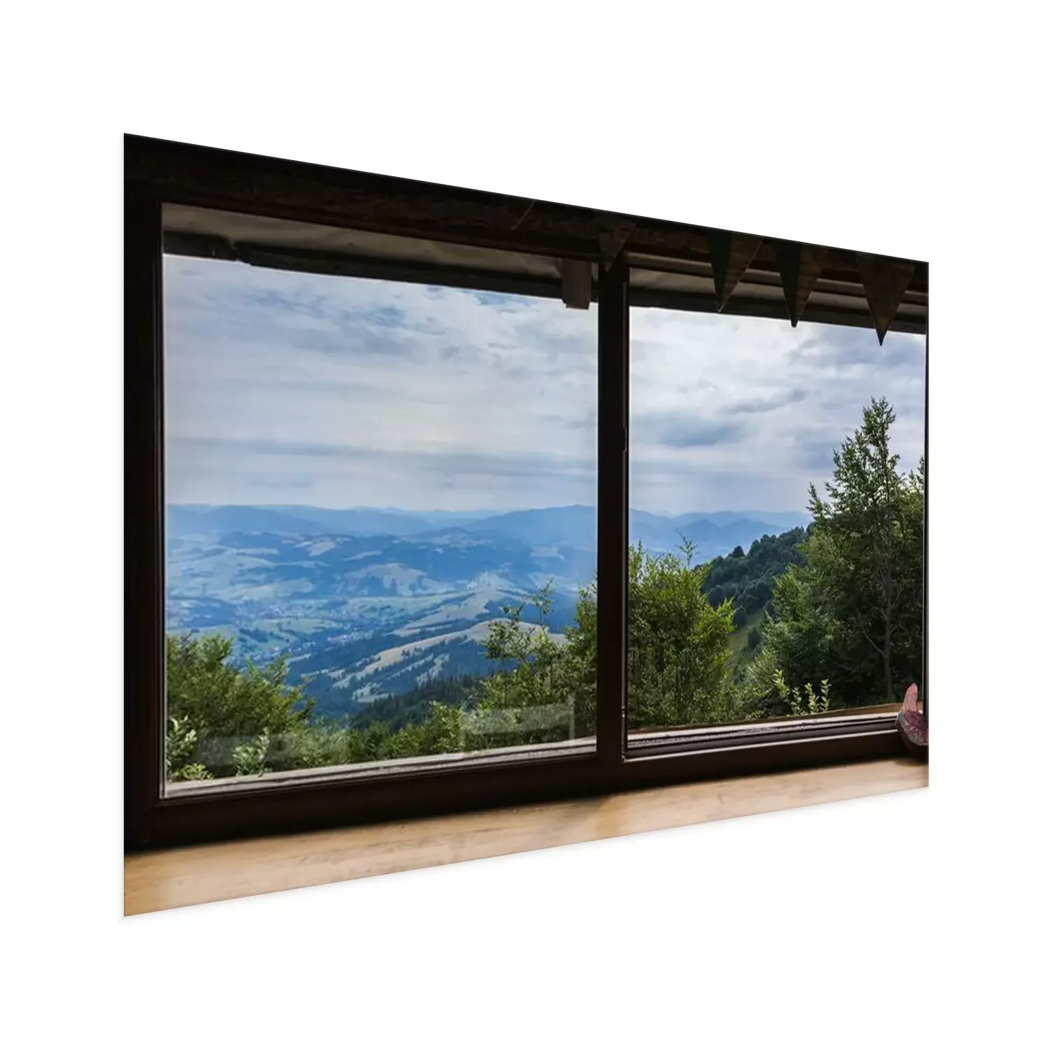 Poster: Fenster mit Blick auf ein Bergpanorama
