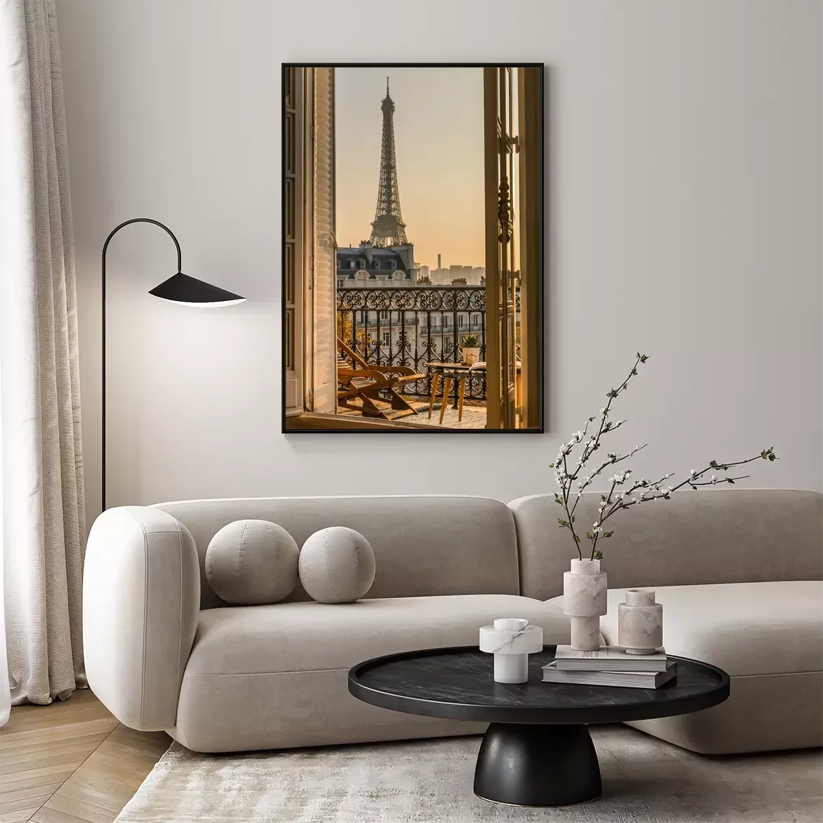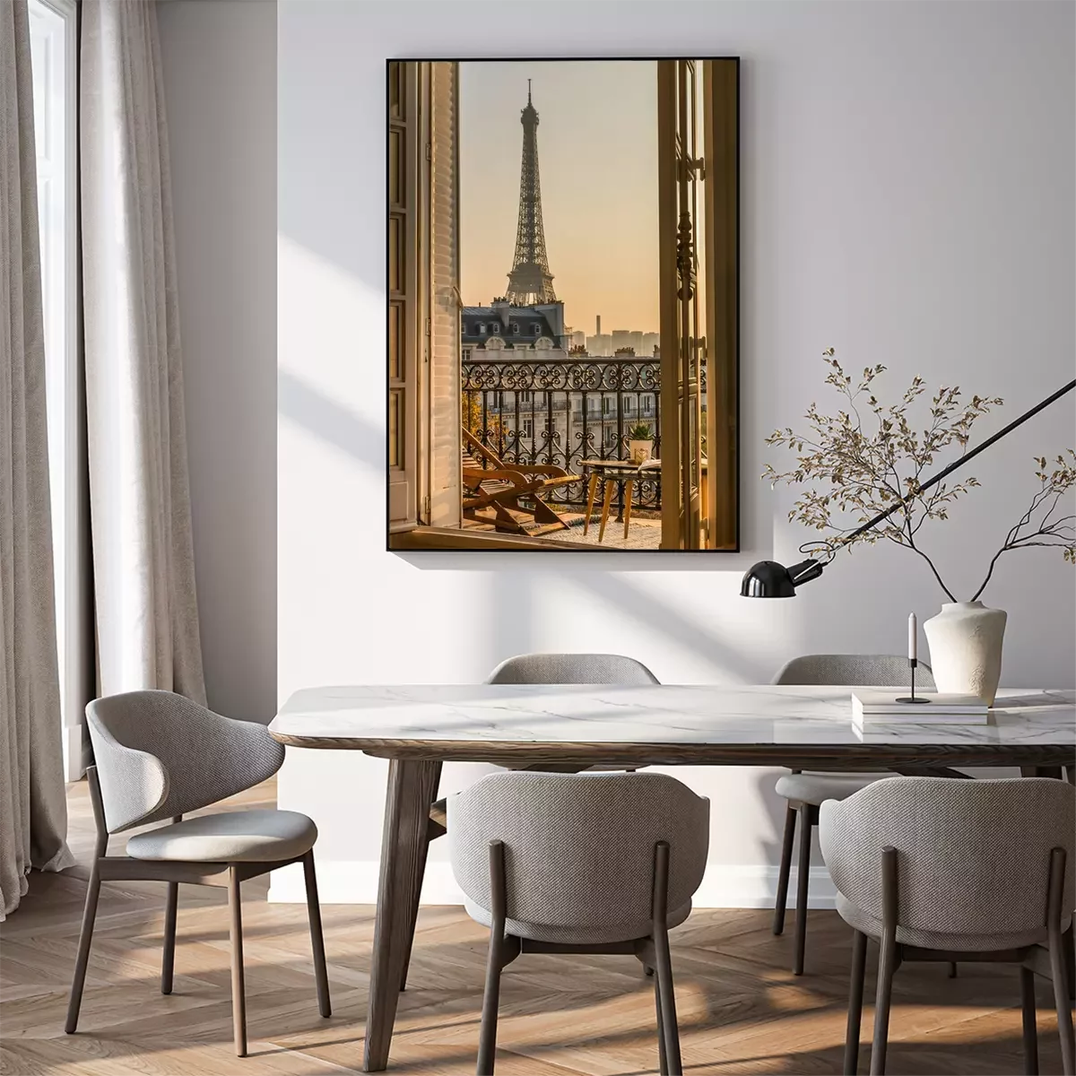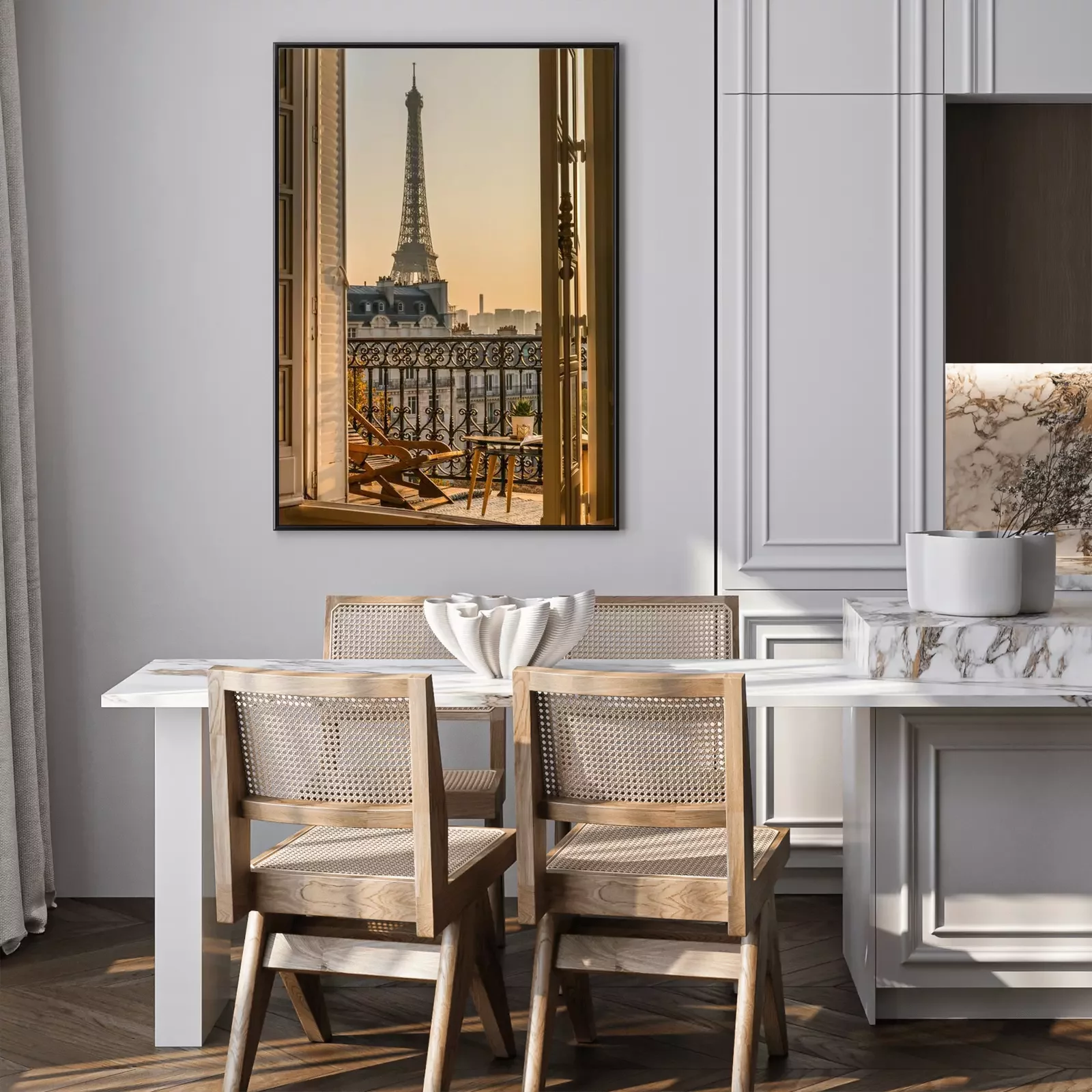 Poster: Fensterblick auf den Eiffelturm in Paris