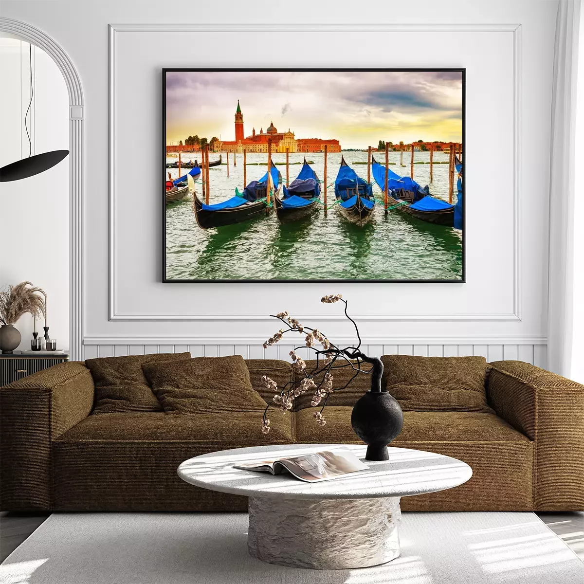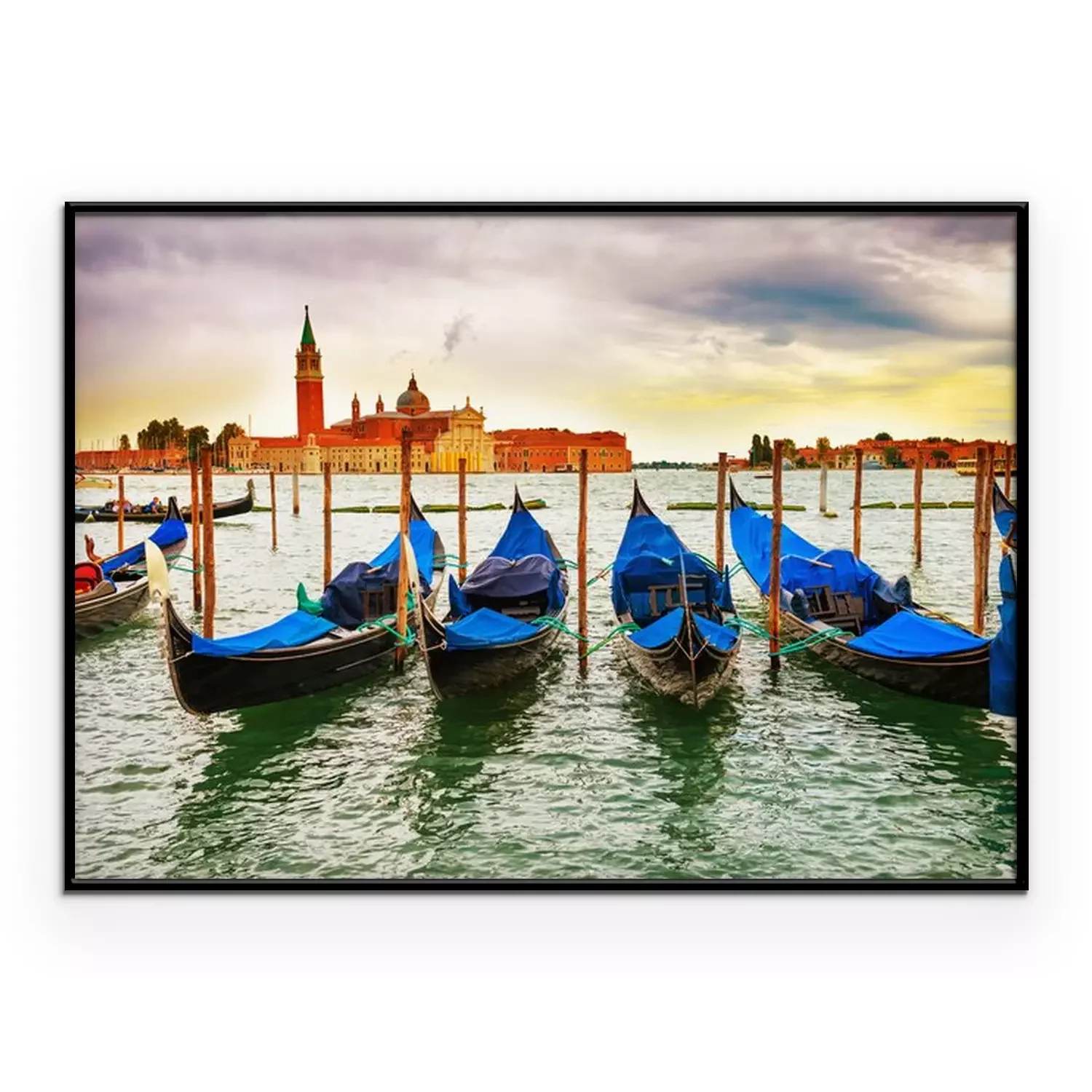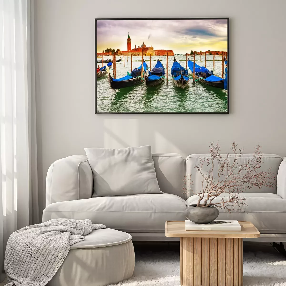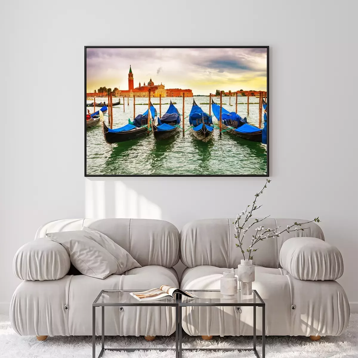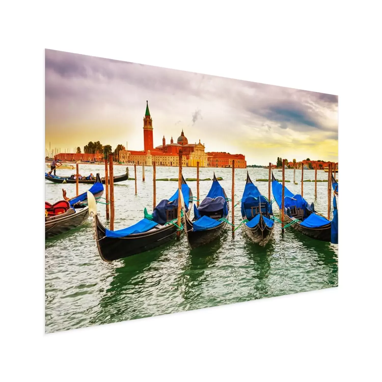 Poster: Festgemachte Gondeln bei Sonnenuntergang