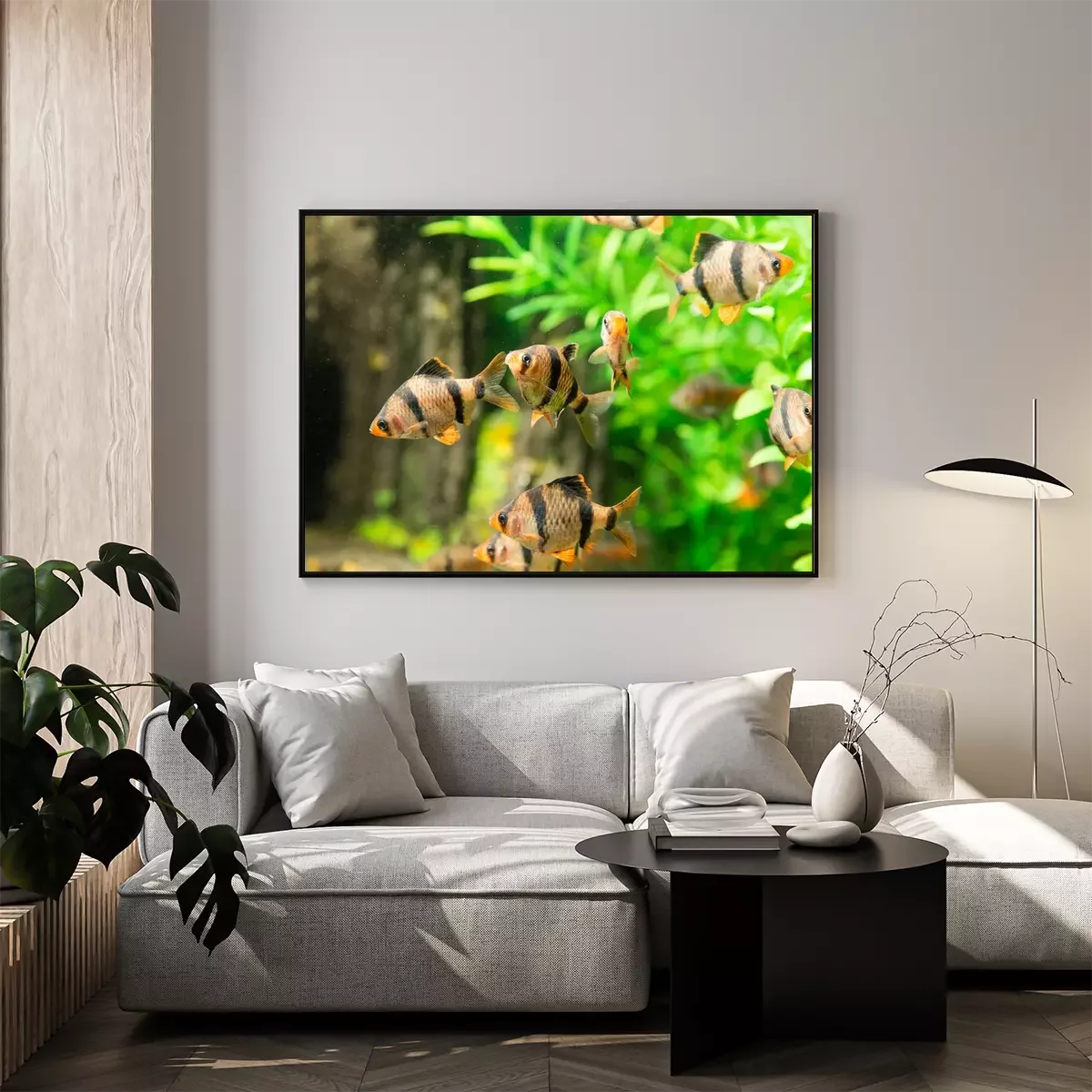 Poster: Fische im Aquarium inmitten der Pflanzen