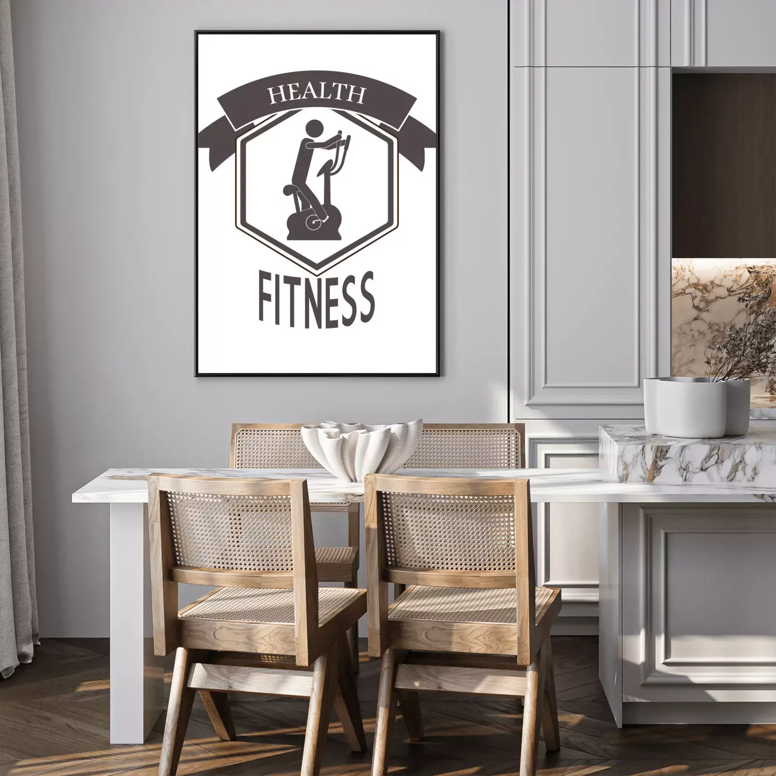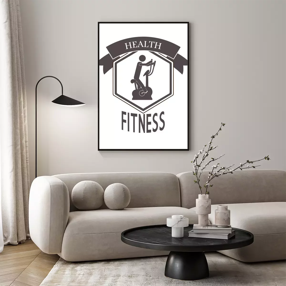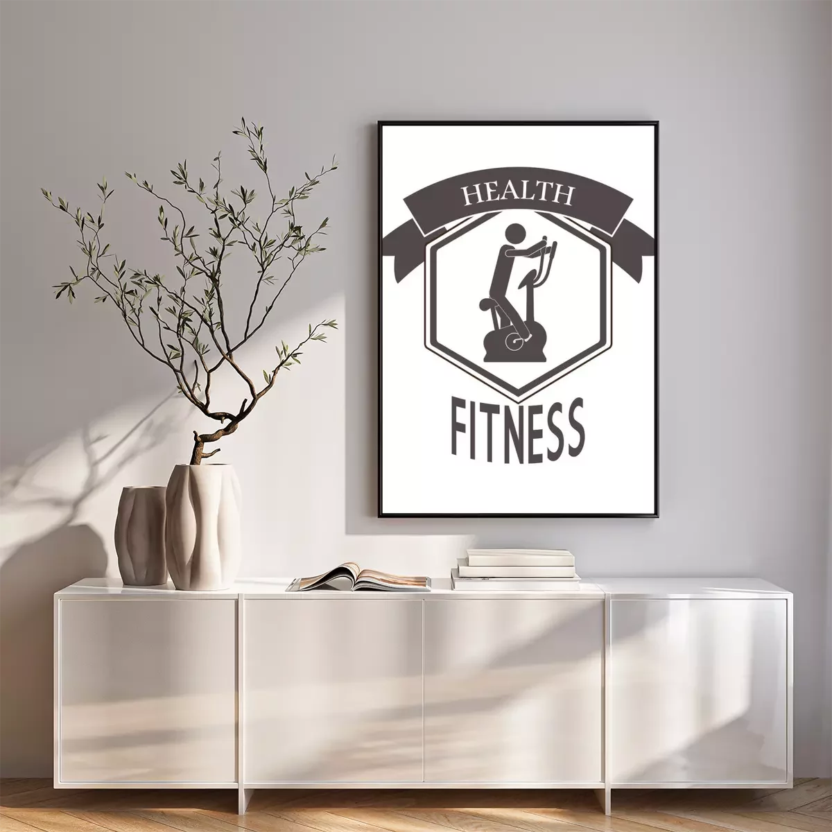 Poster: Fitness Grafik mit stationärem Fahrrad