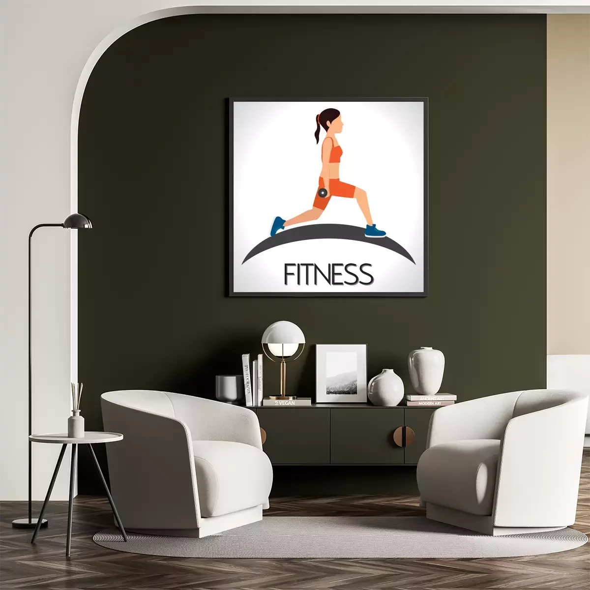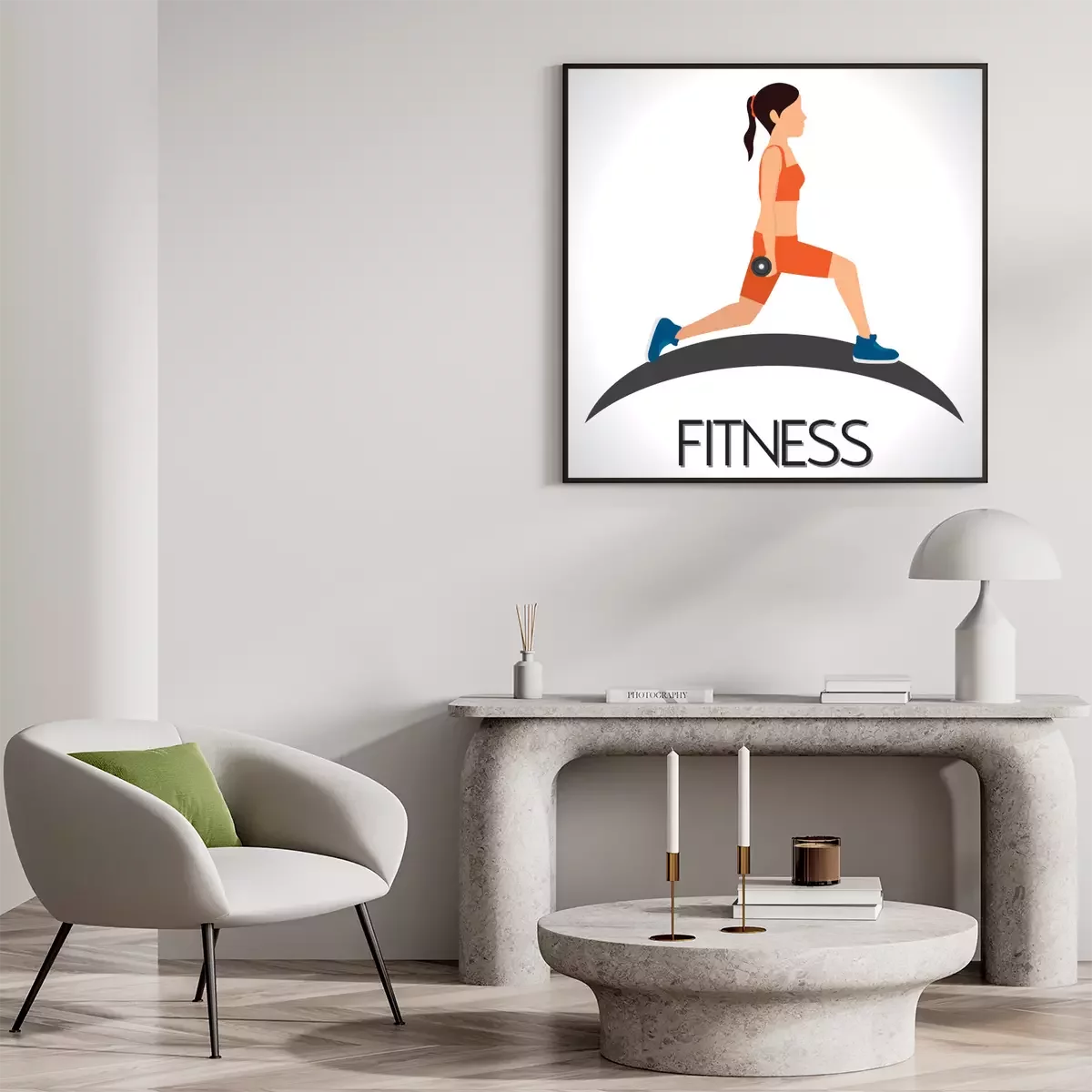 Poster Fitness mit Hanteln Grafik in Farbe