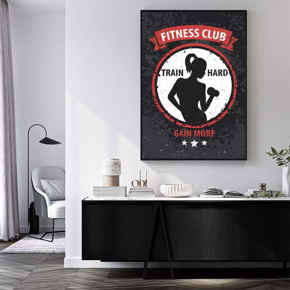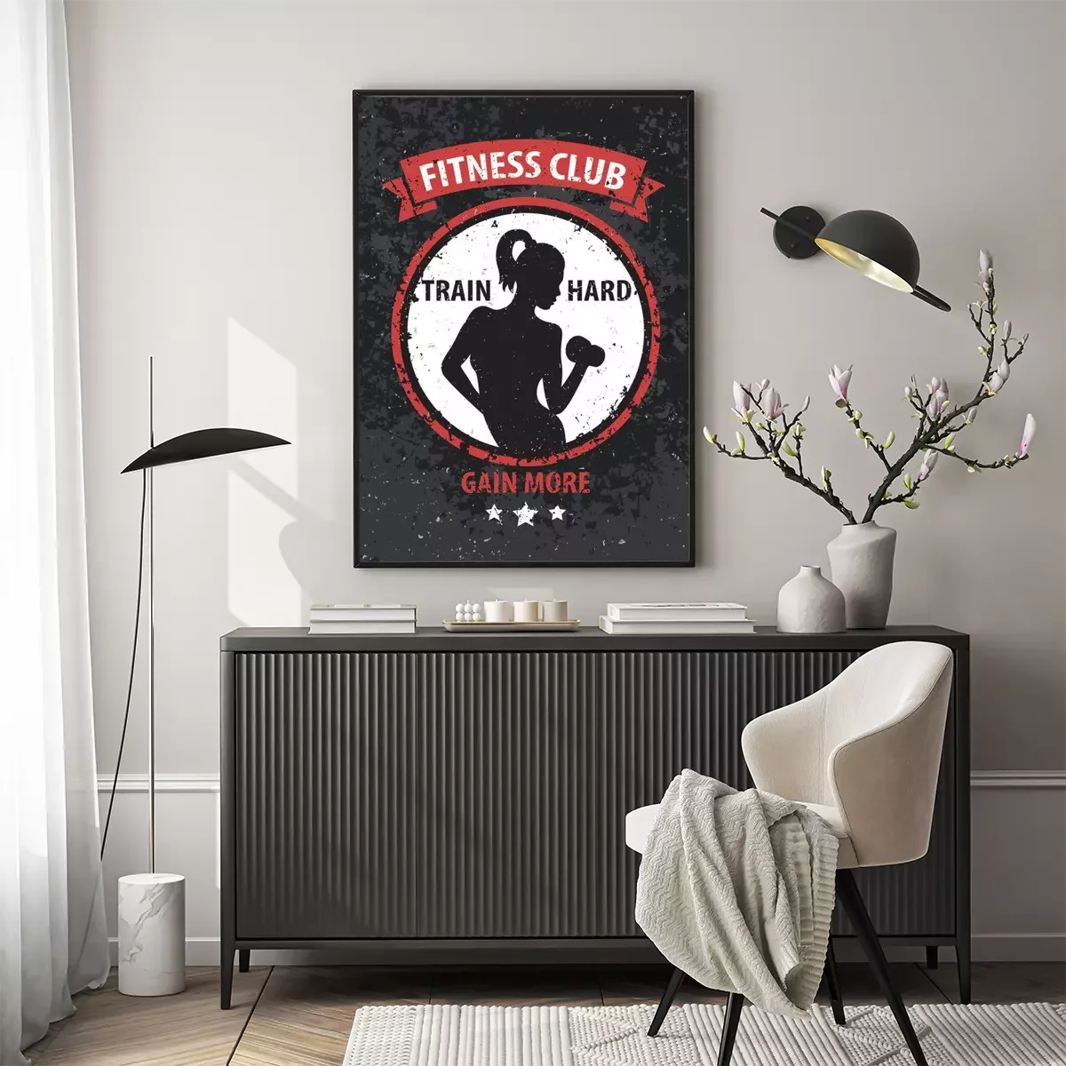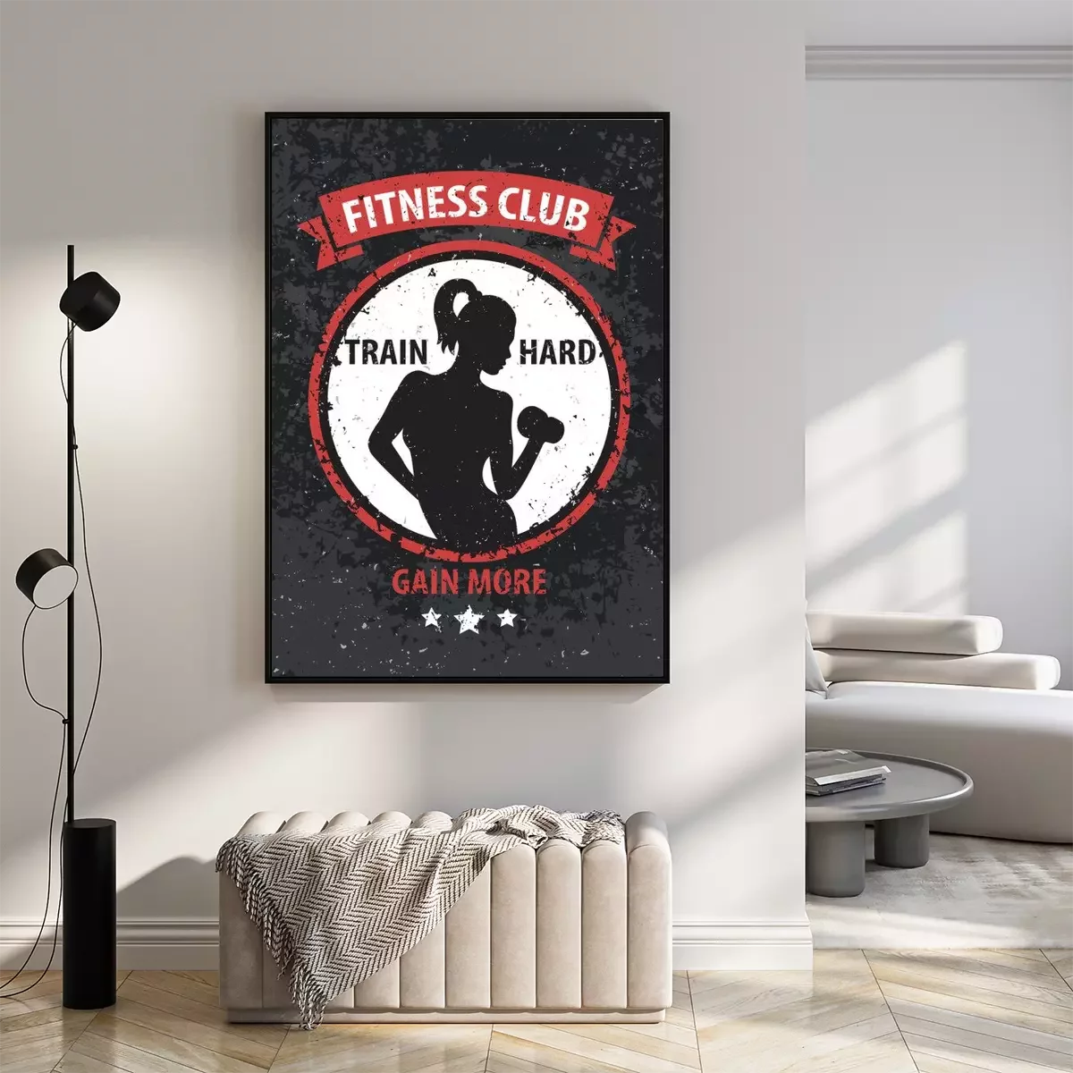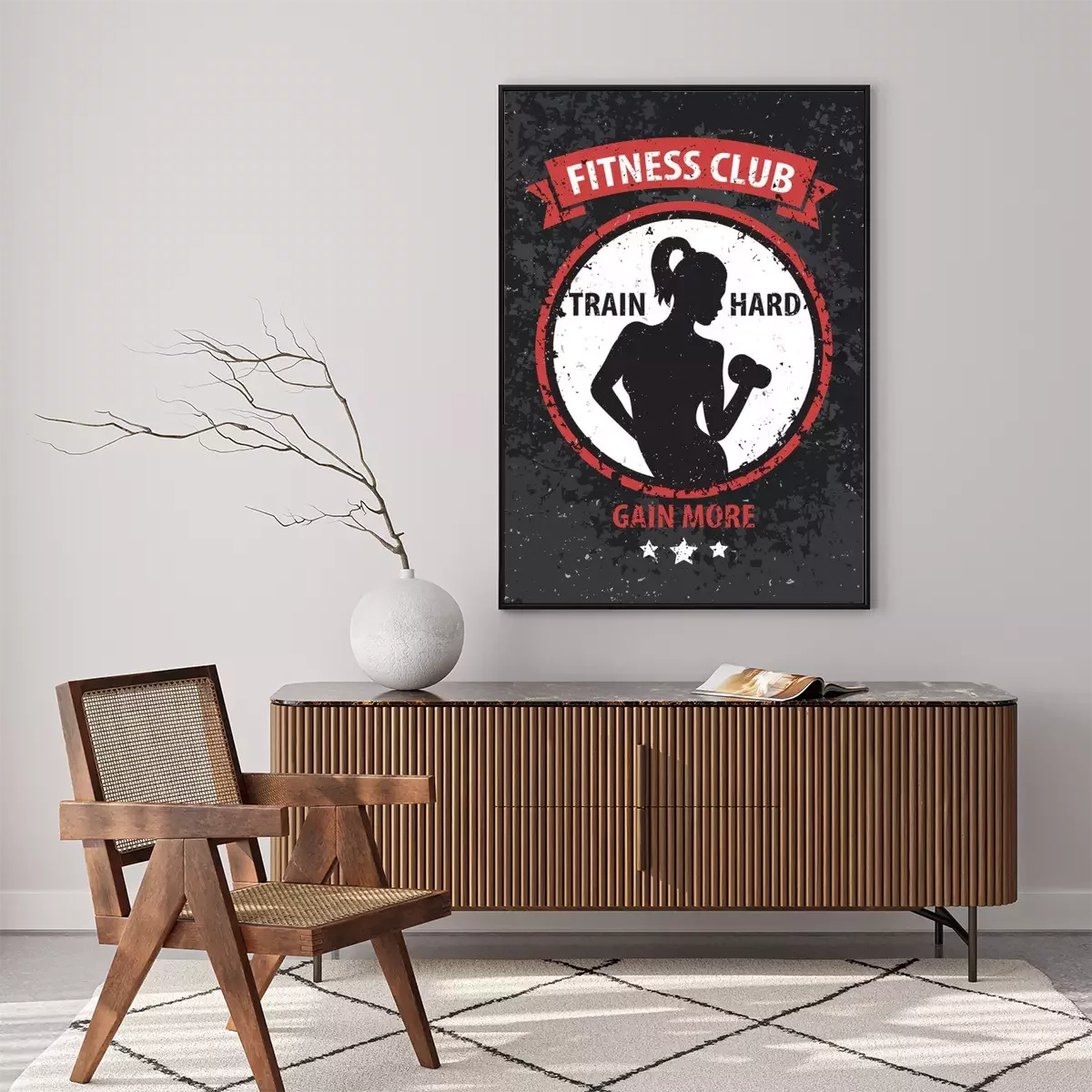 Poster Fitness mit Hanteln Grafik mit einer Frau