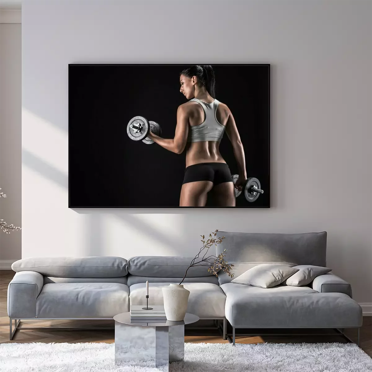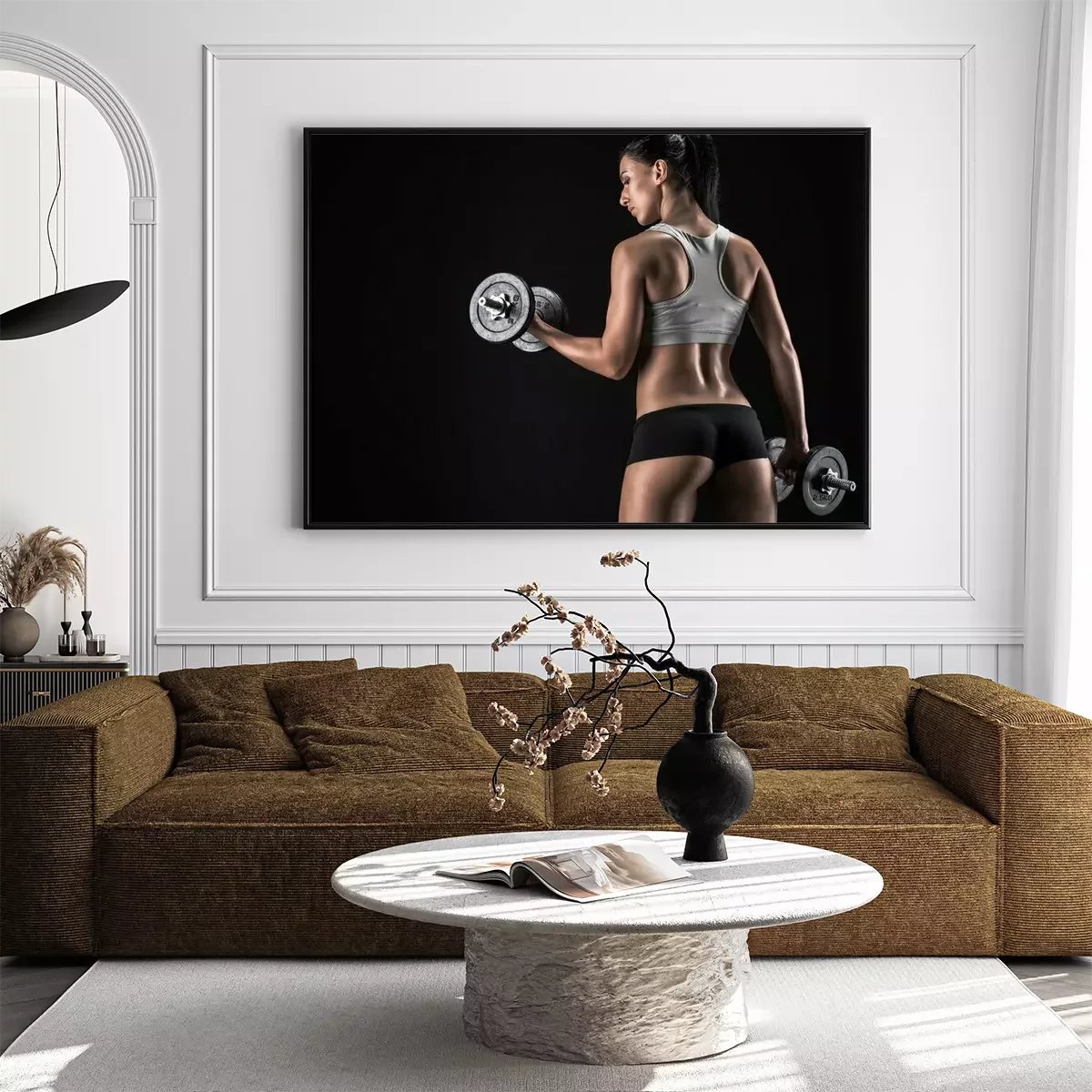 Poster: Fitness mit Hanteln in weiblichen Händen