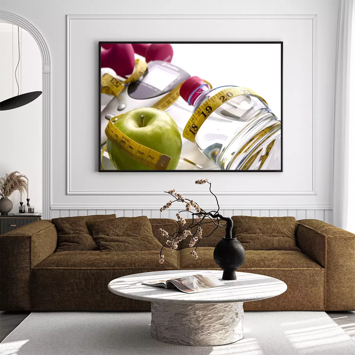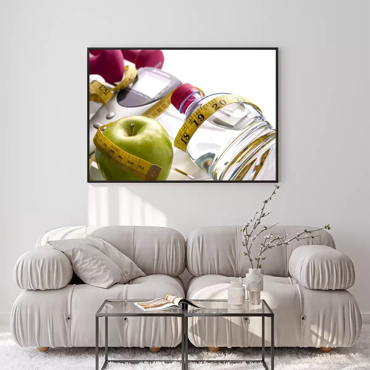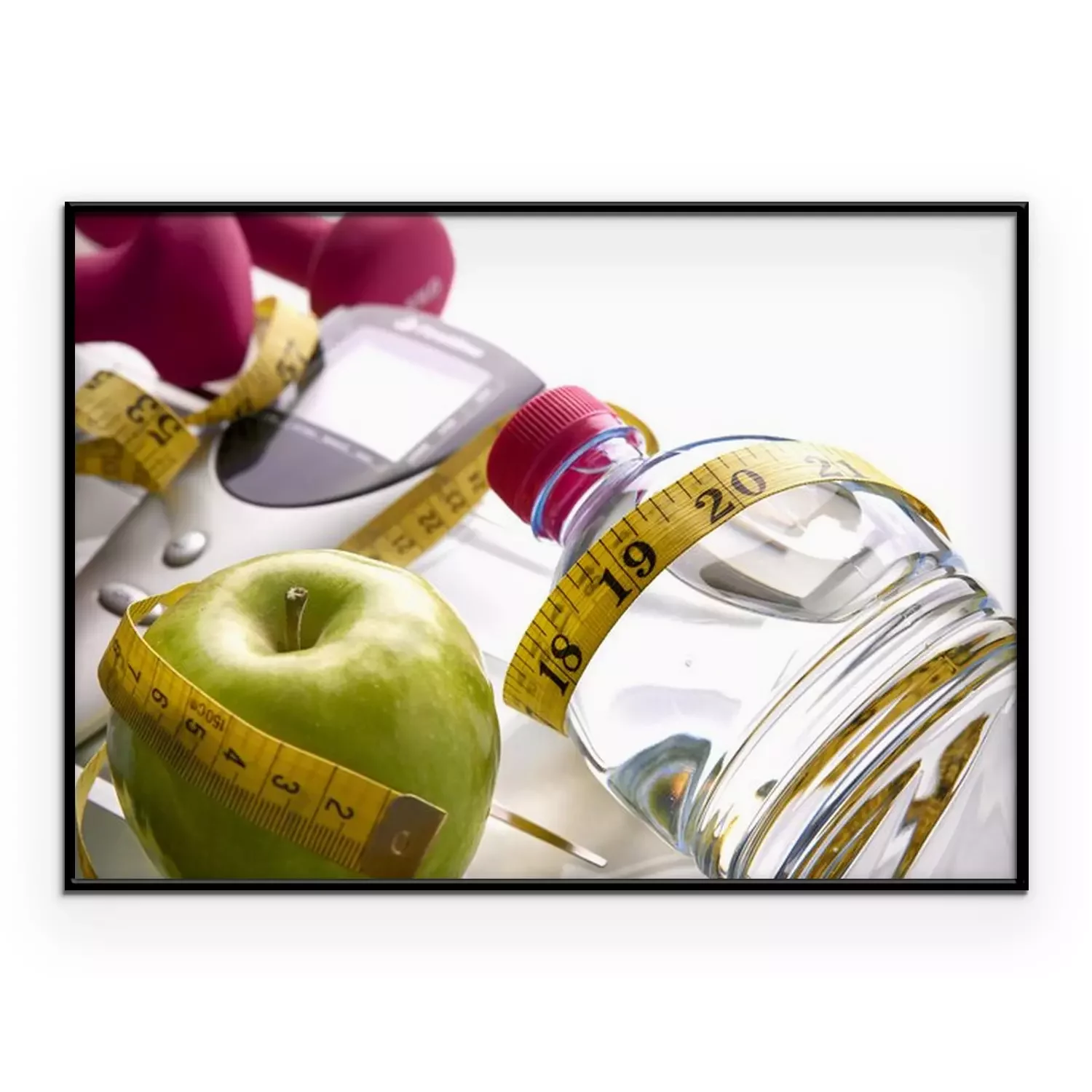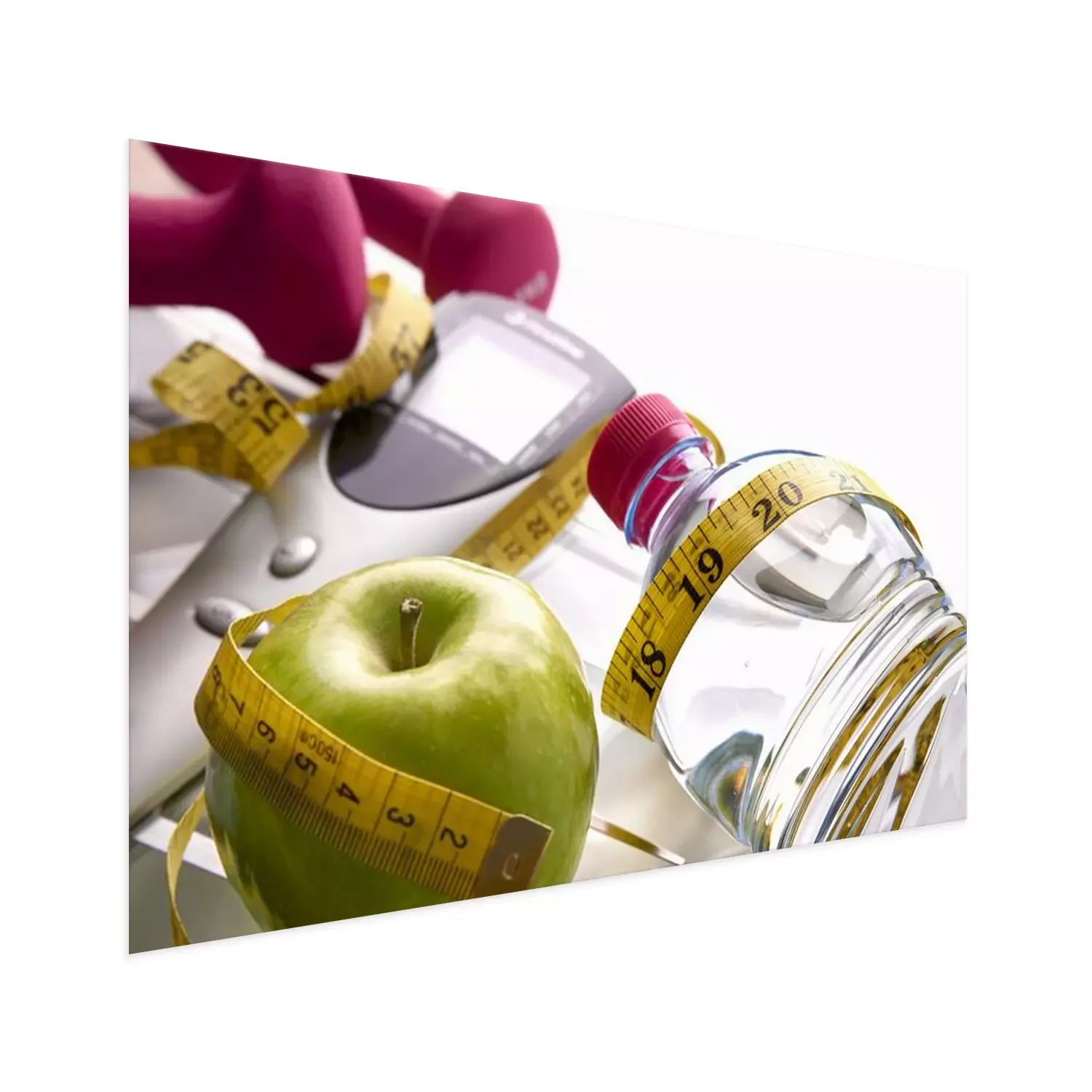 Poster: Fitness Wasser und Apfel verpackt mit Messgerät