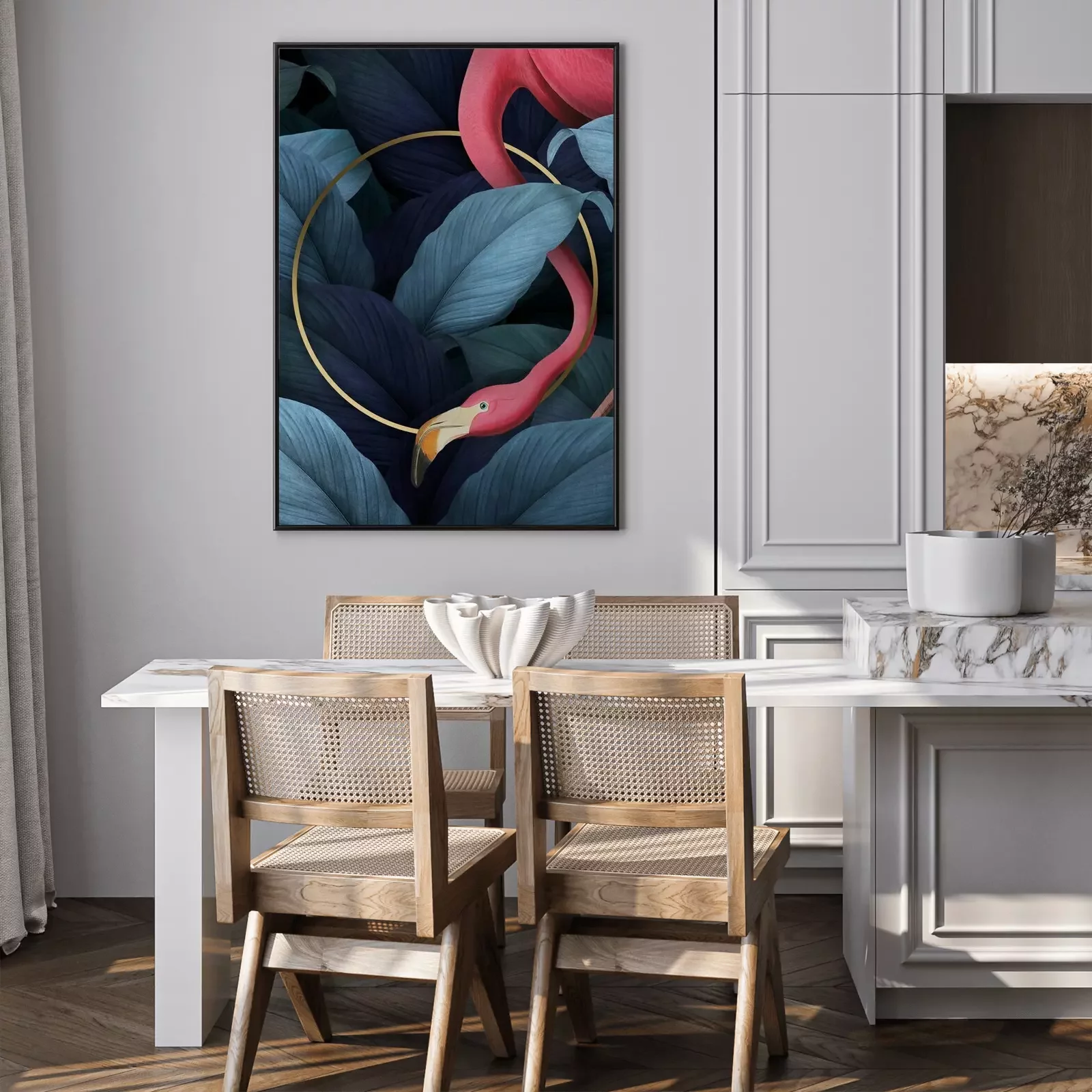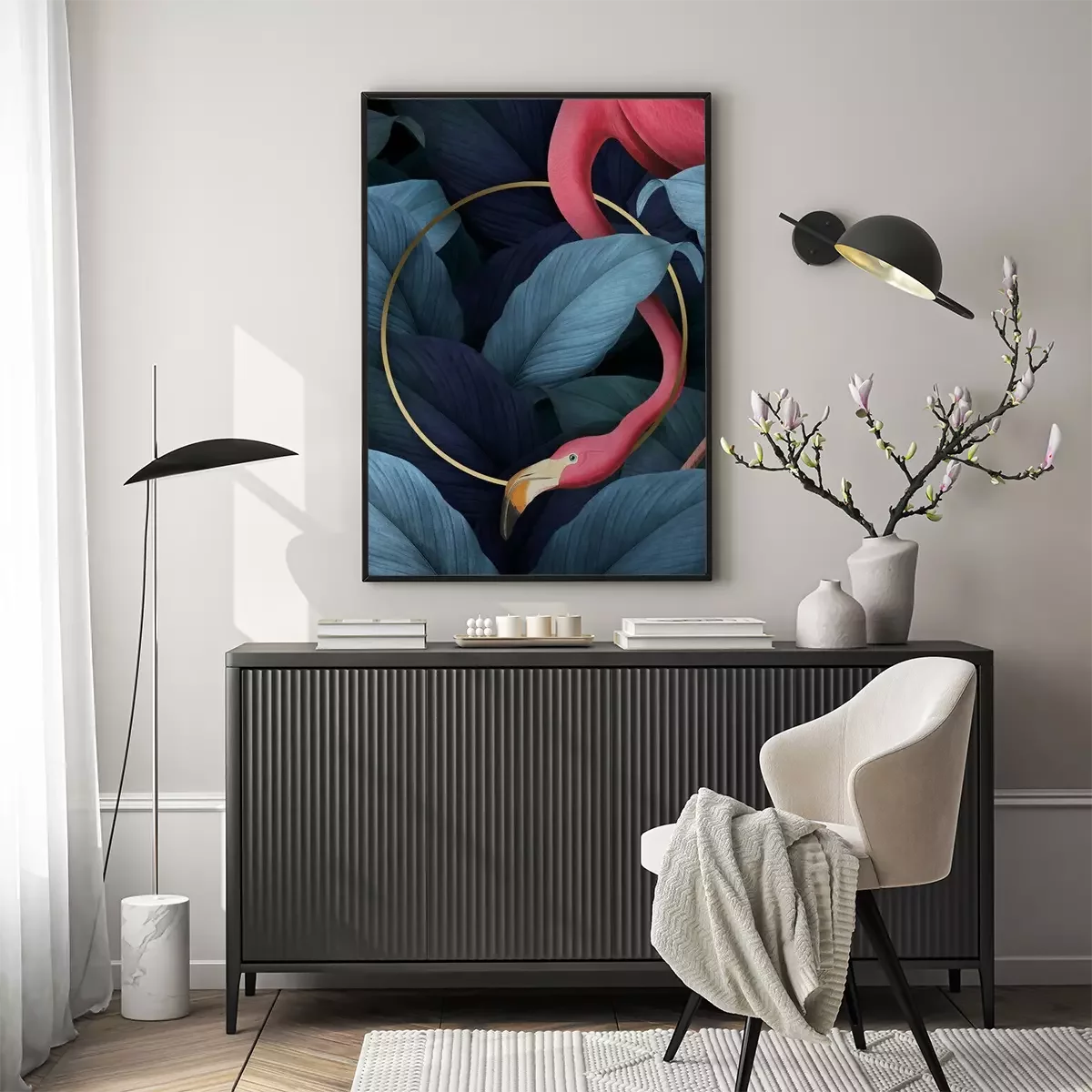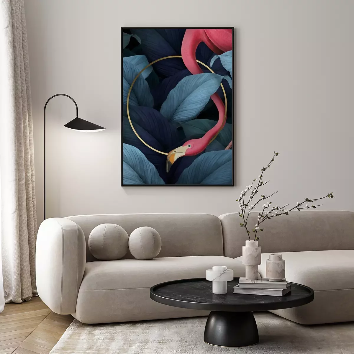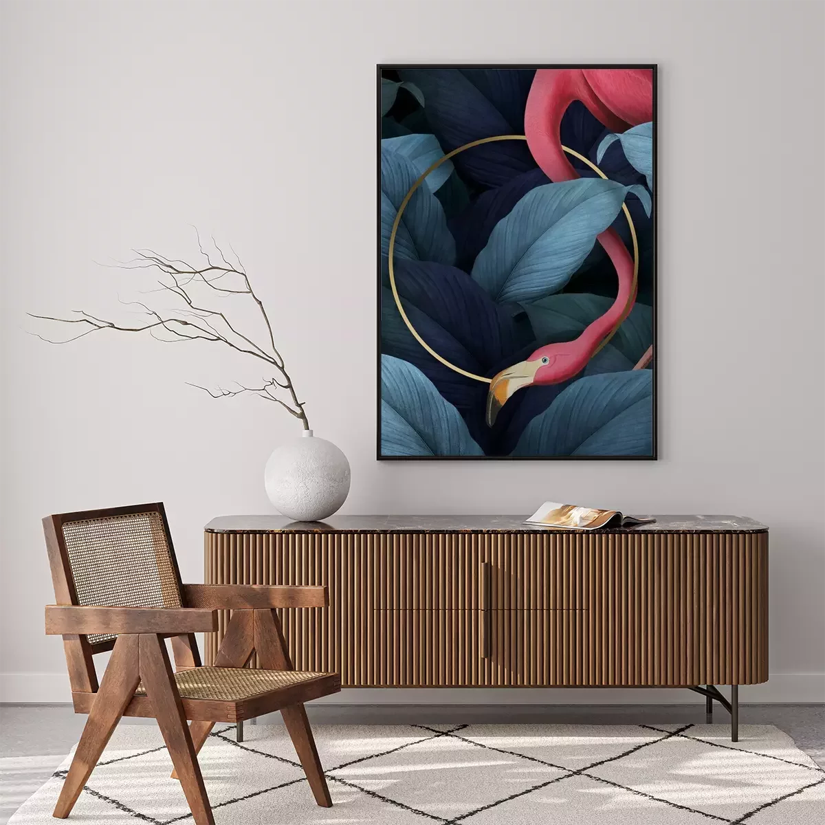 Poster: Flamingo und ein Goldrand