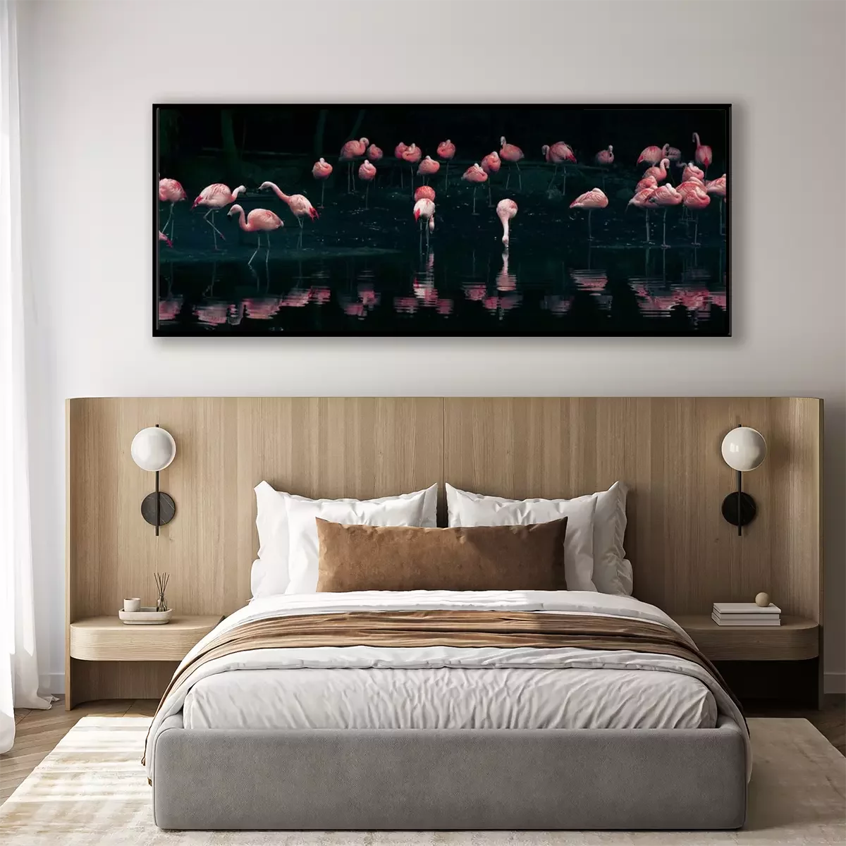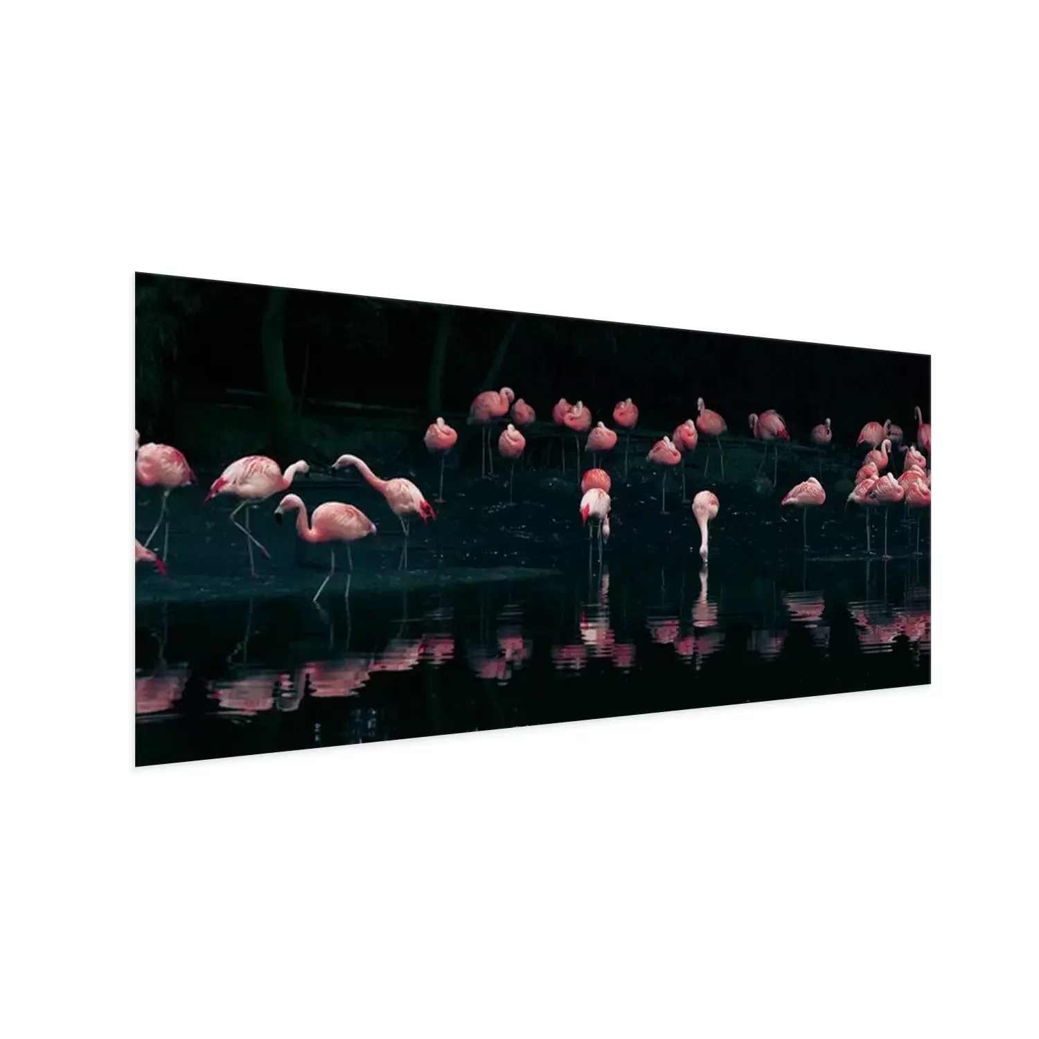 Poster: Flamingos auf dem dunklen Wasser-Hintergrund
