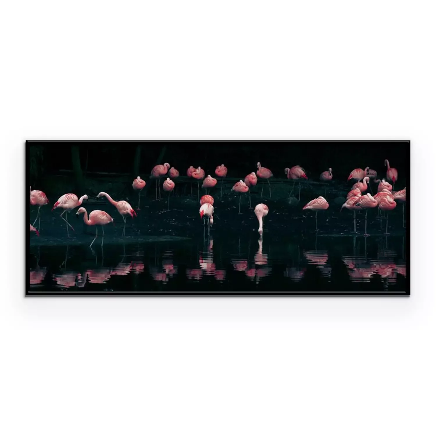 Poster Flamingos auf dem dunklen Wasser-Hintergrund
