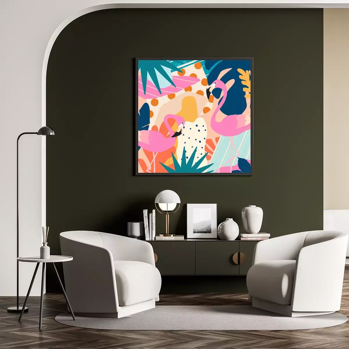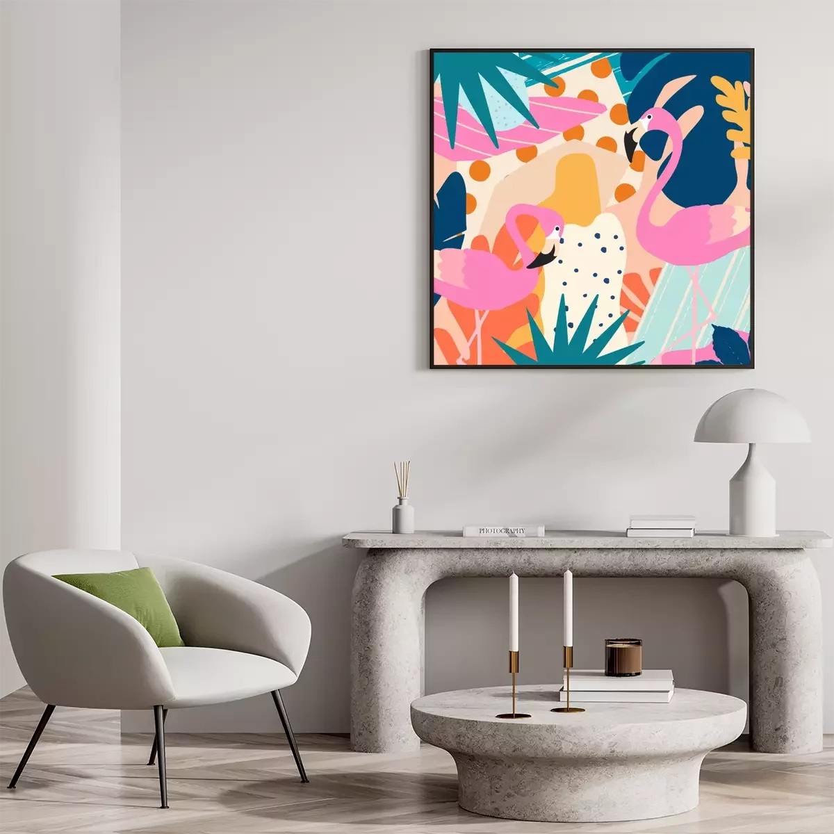 Poster: Flamingos im farbenprächtigen Dschungel