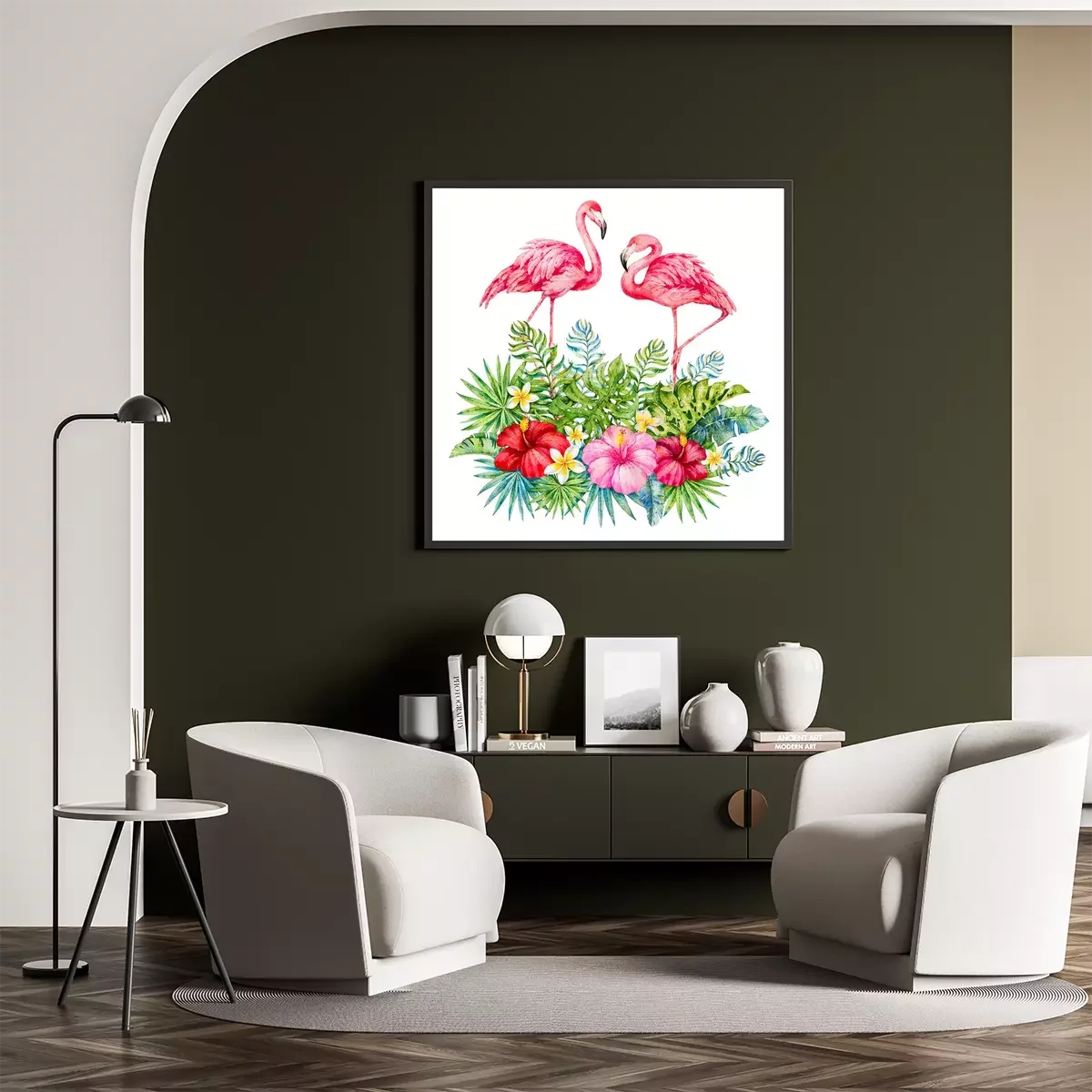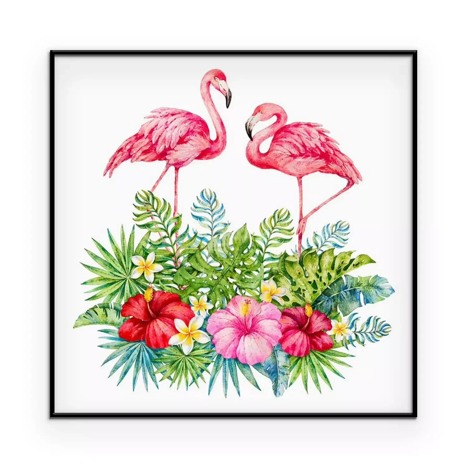 Poster: Flamingos in tropischen Blättern