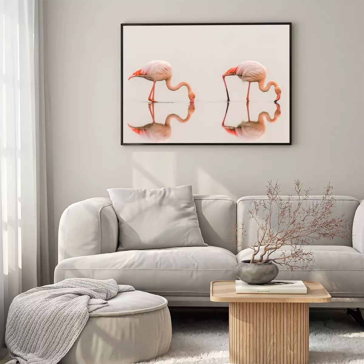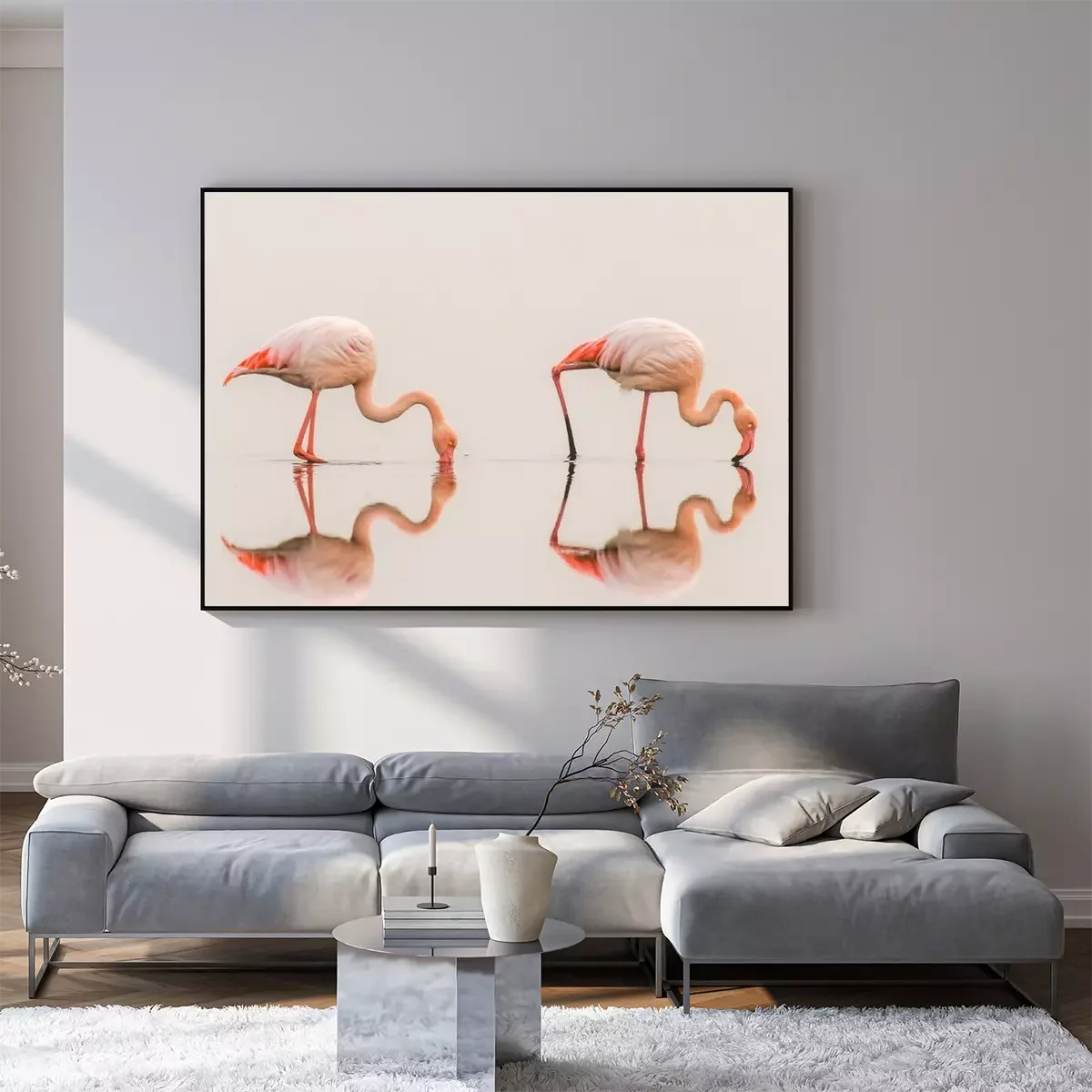 Poster: Flamingos mit Spiegelung im Wasser
