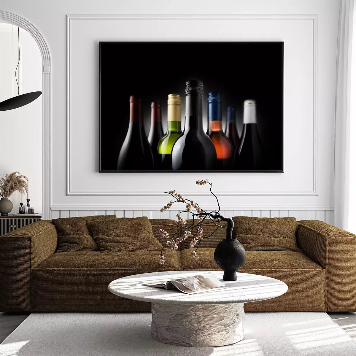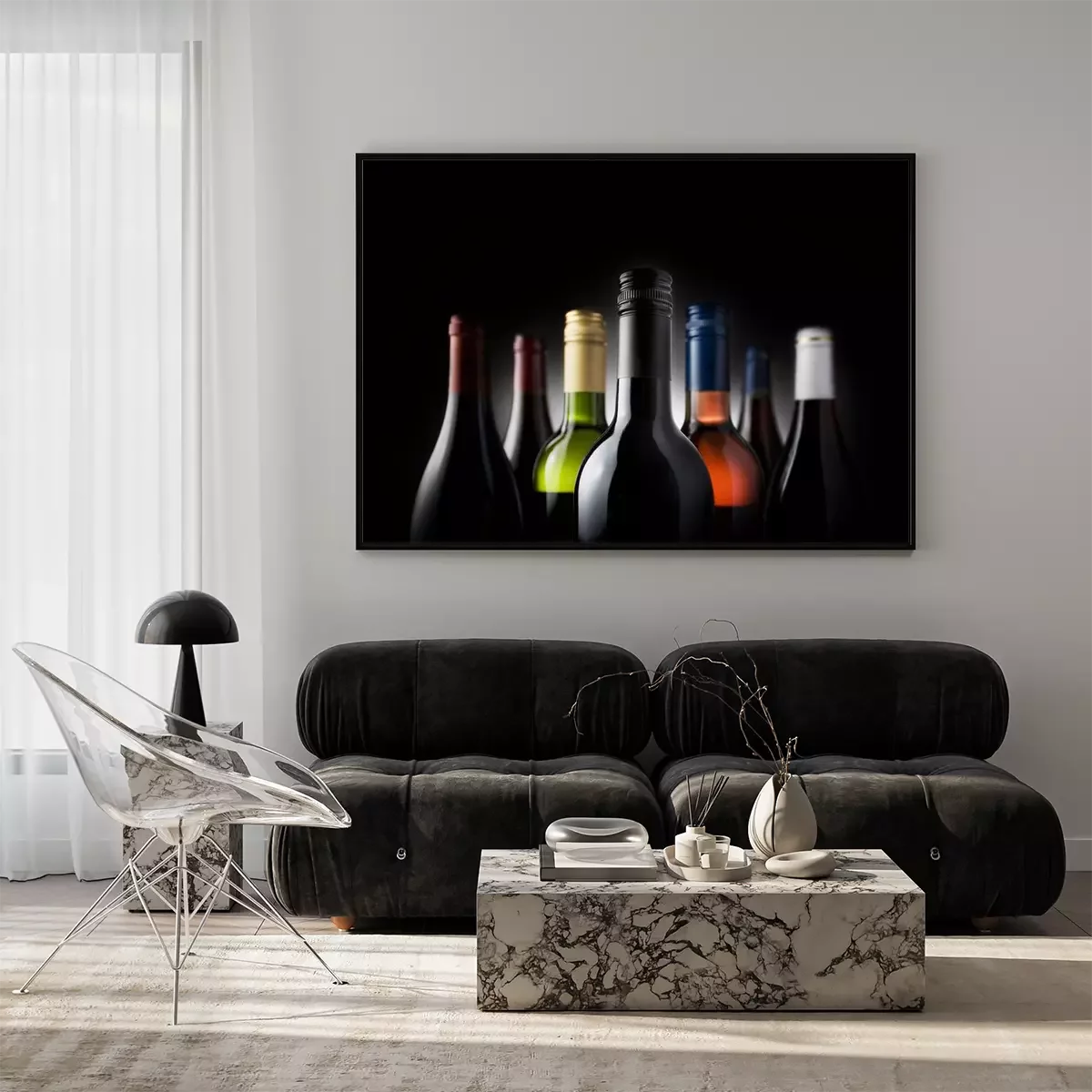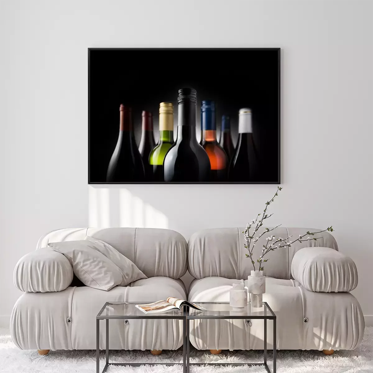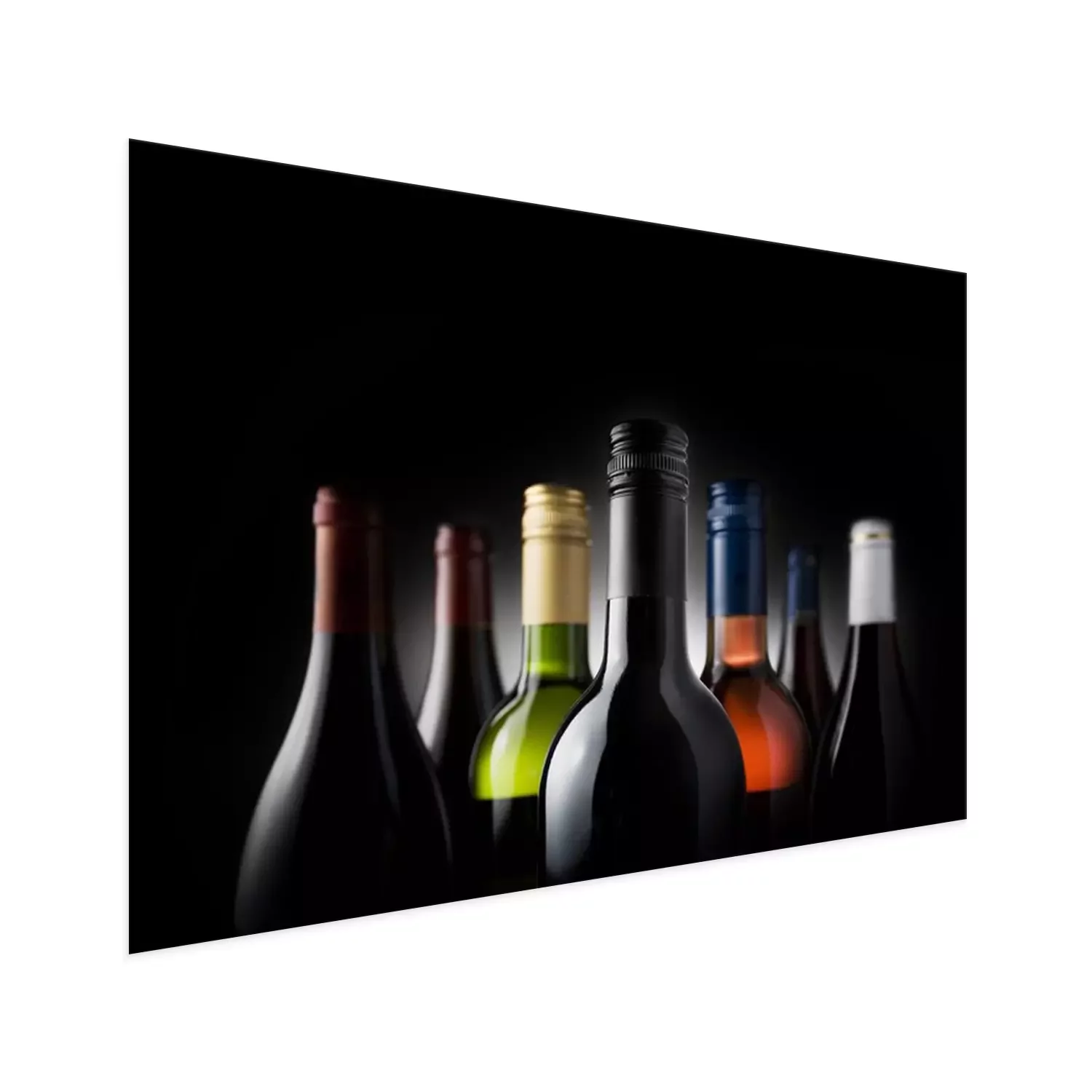 Poster: Flaschen verschiedener Spirituosen auf schwarzem Hintergrund