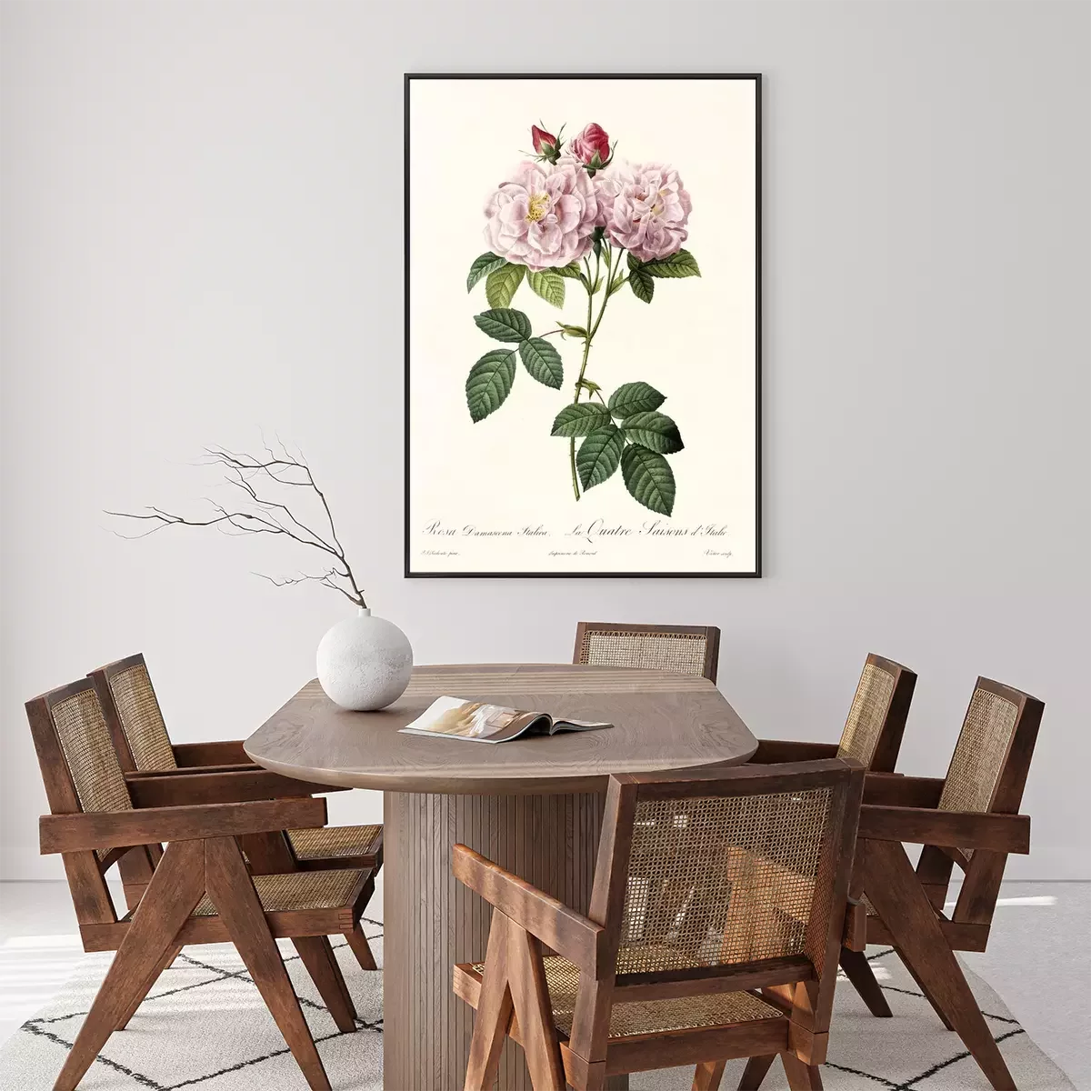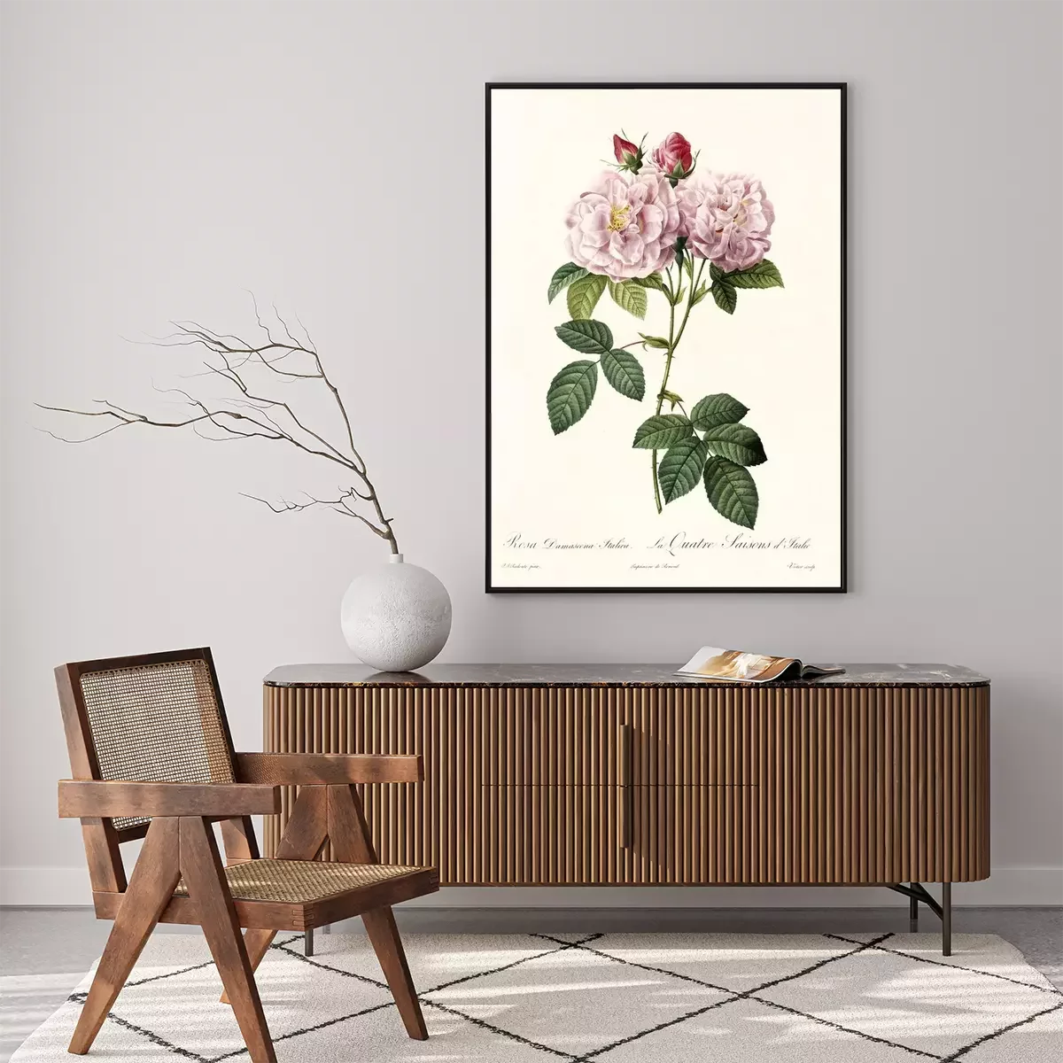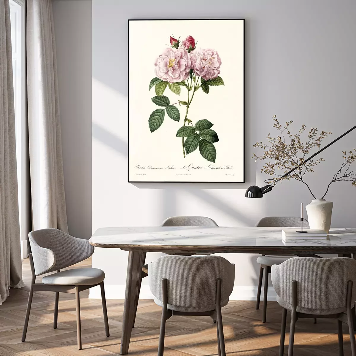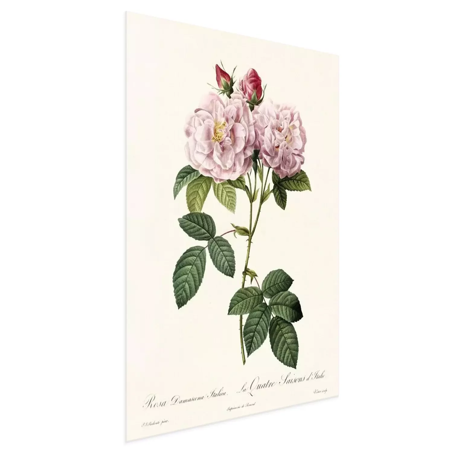Botanische Grafik der weißen Rose mit Beschreibungen