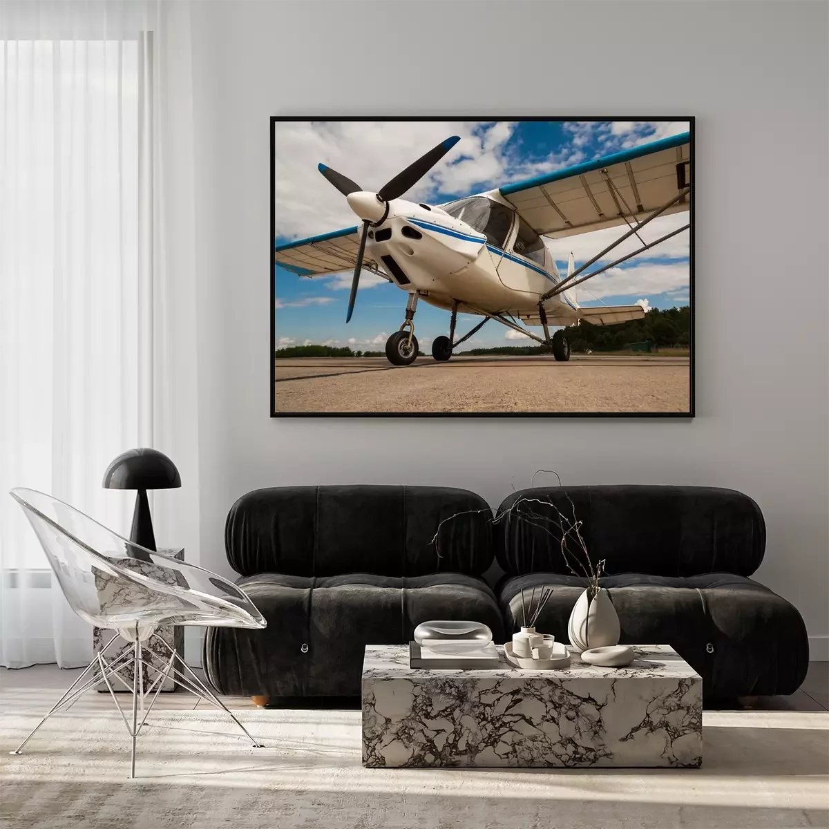 Poster Flugzeug mit Motor auf dem Rollfeld