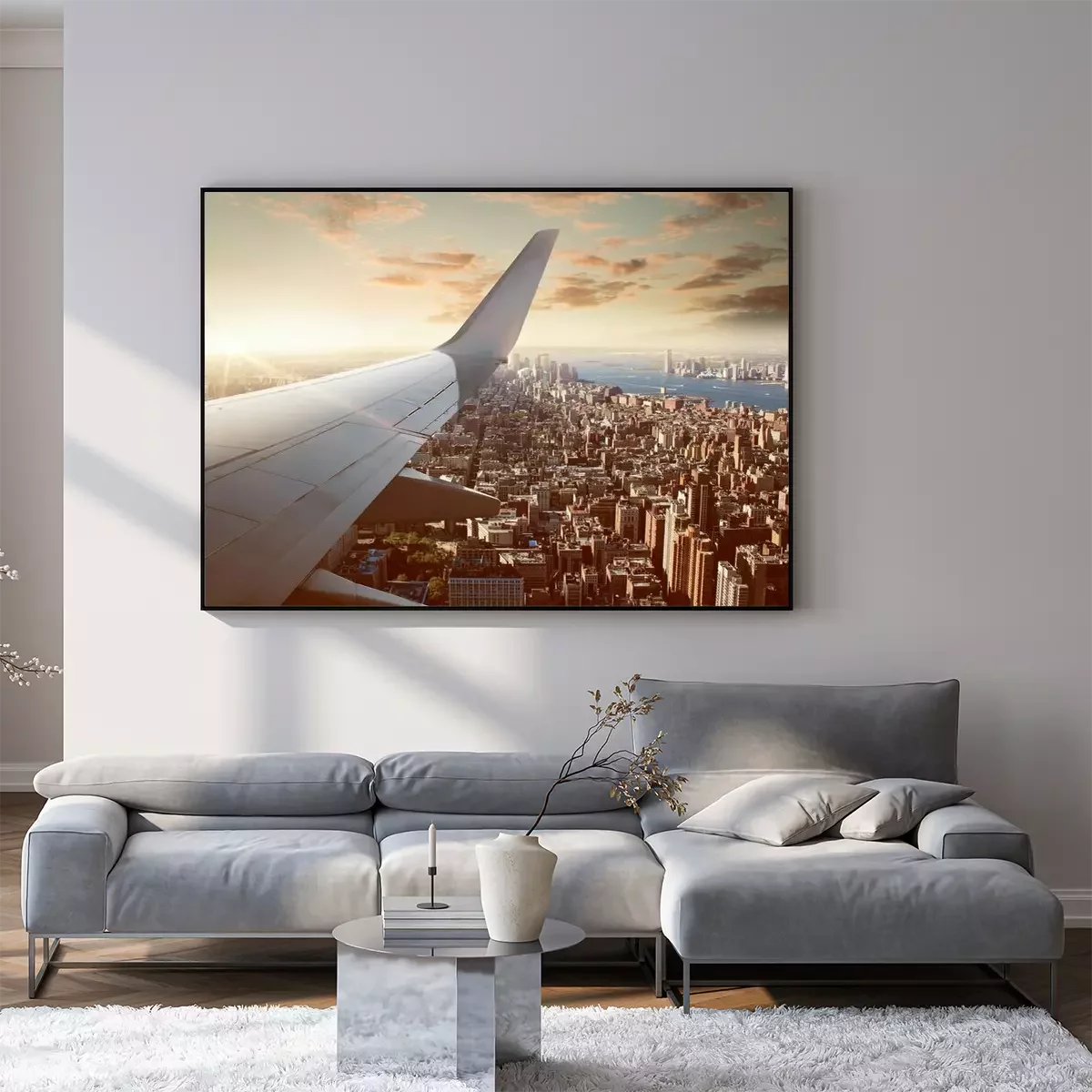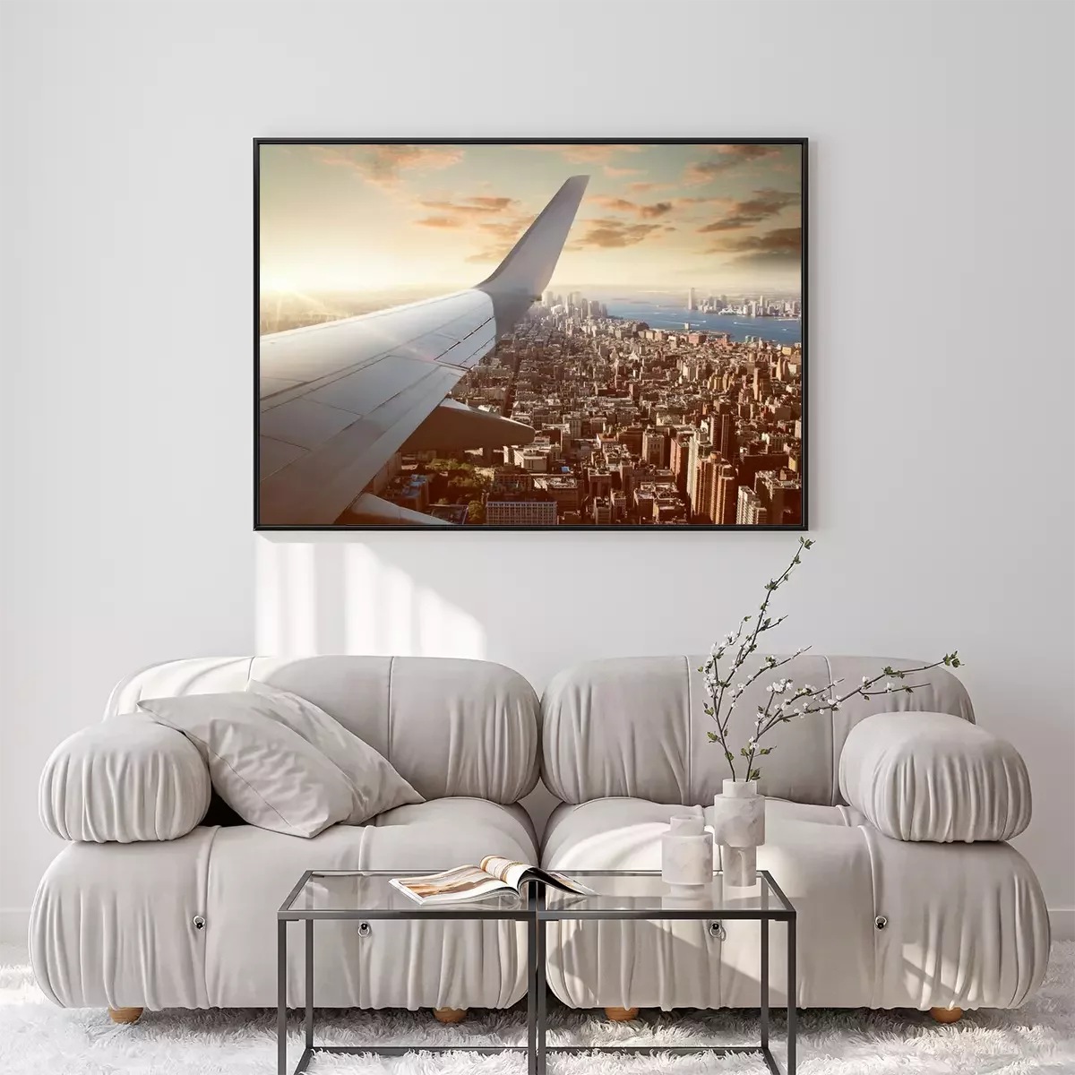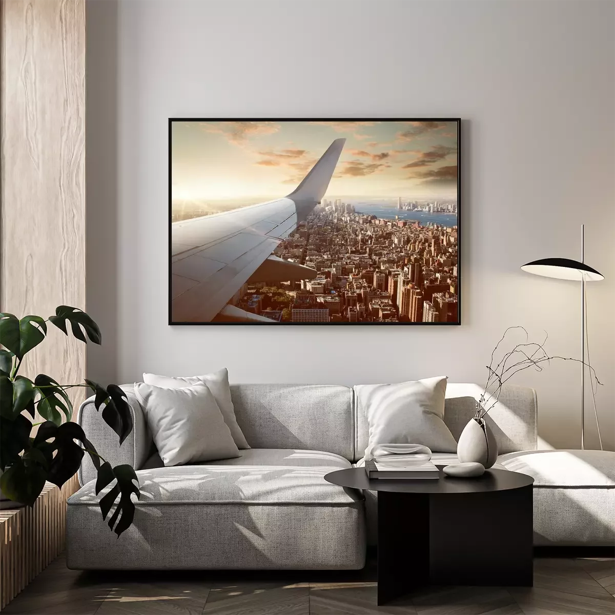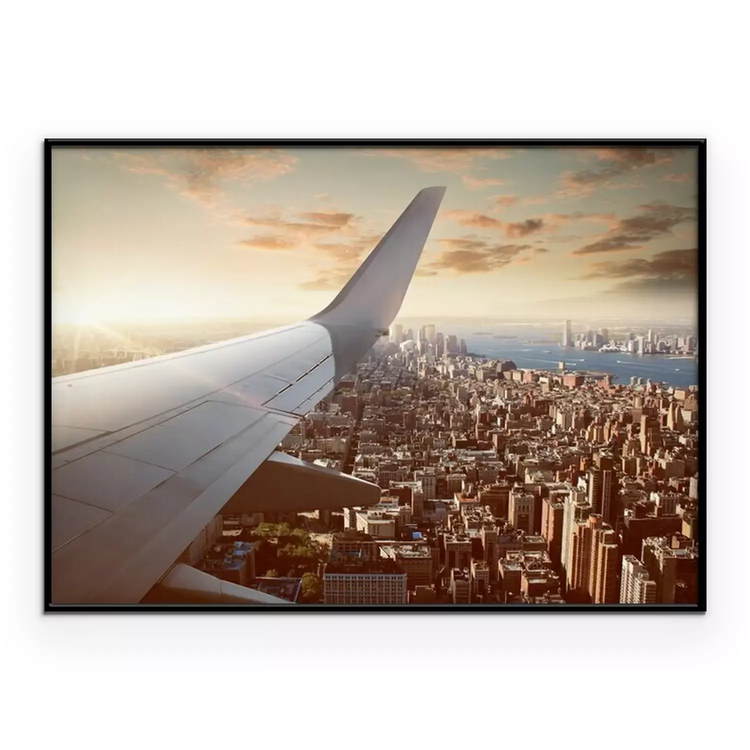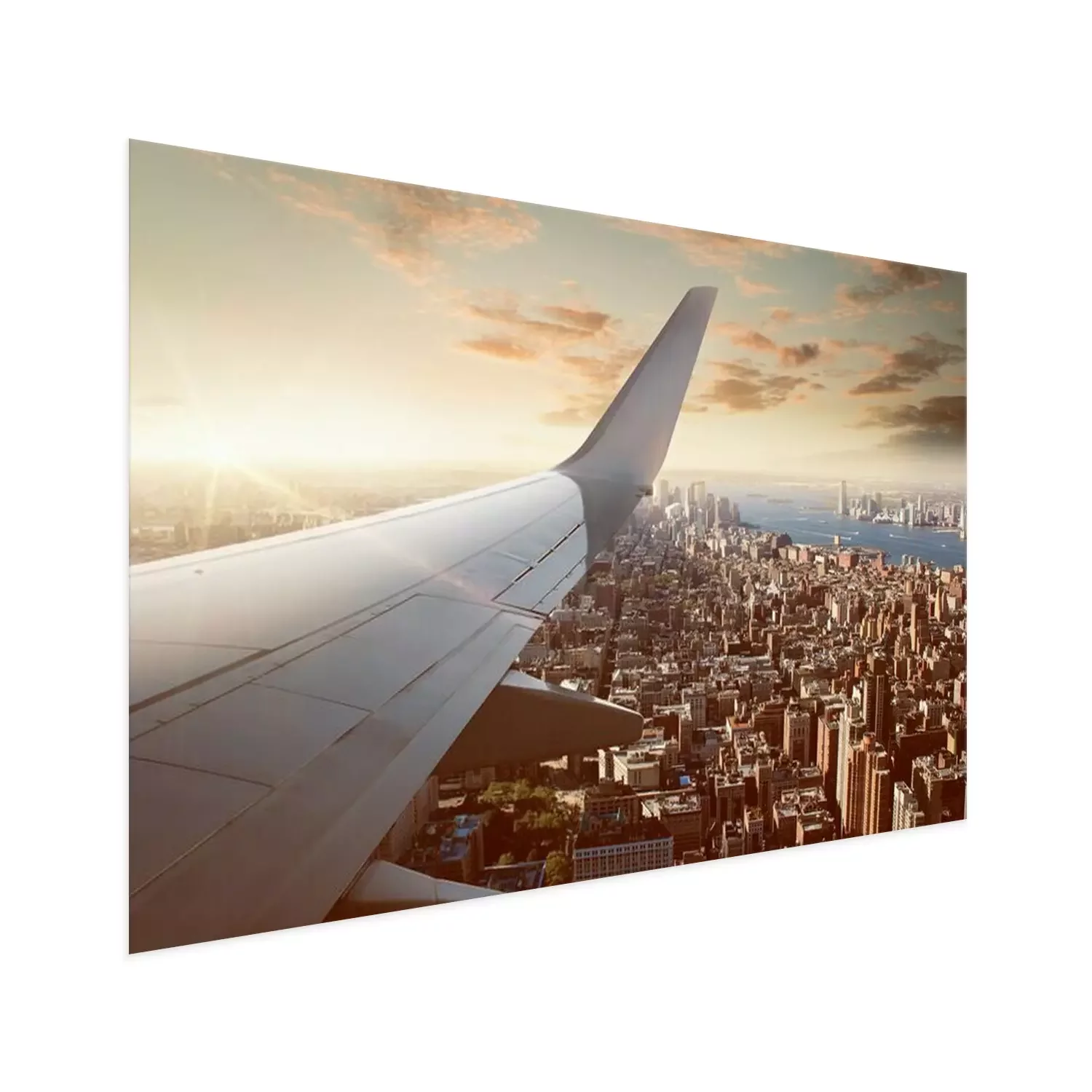 Poster: Flugzeugflügel und die Skyline von New York