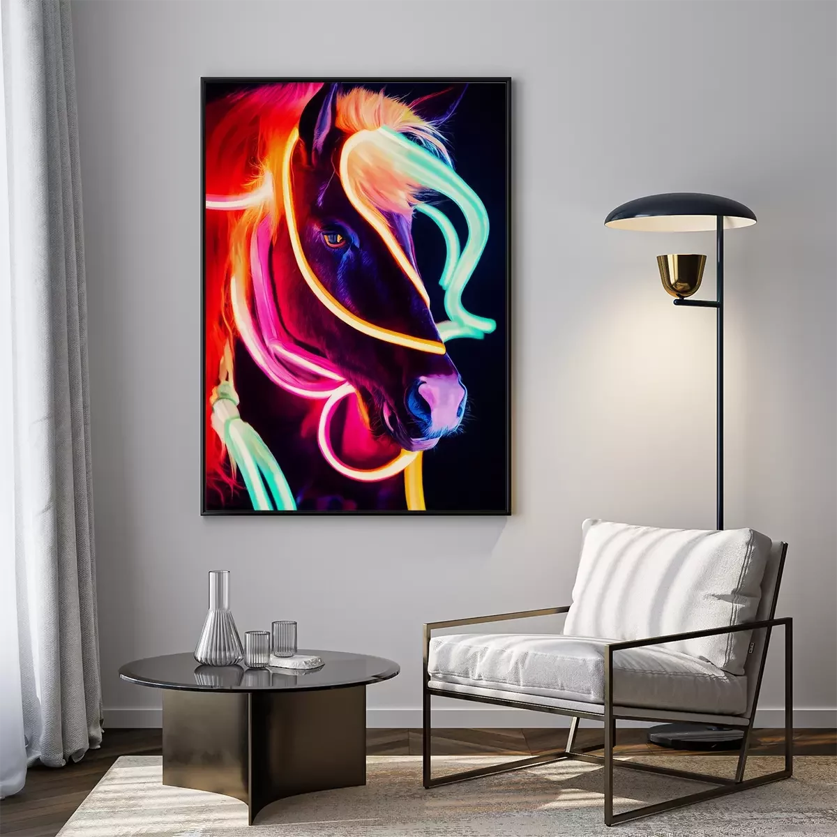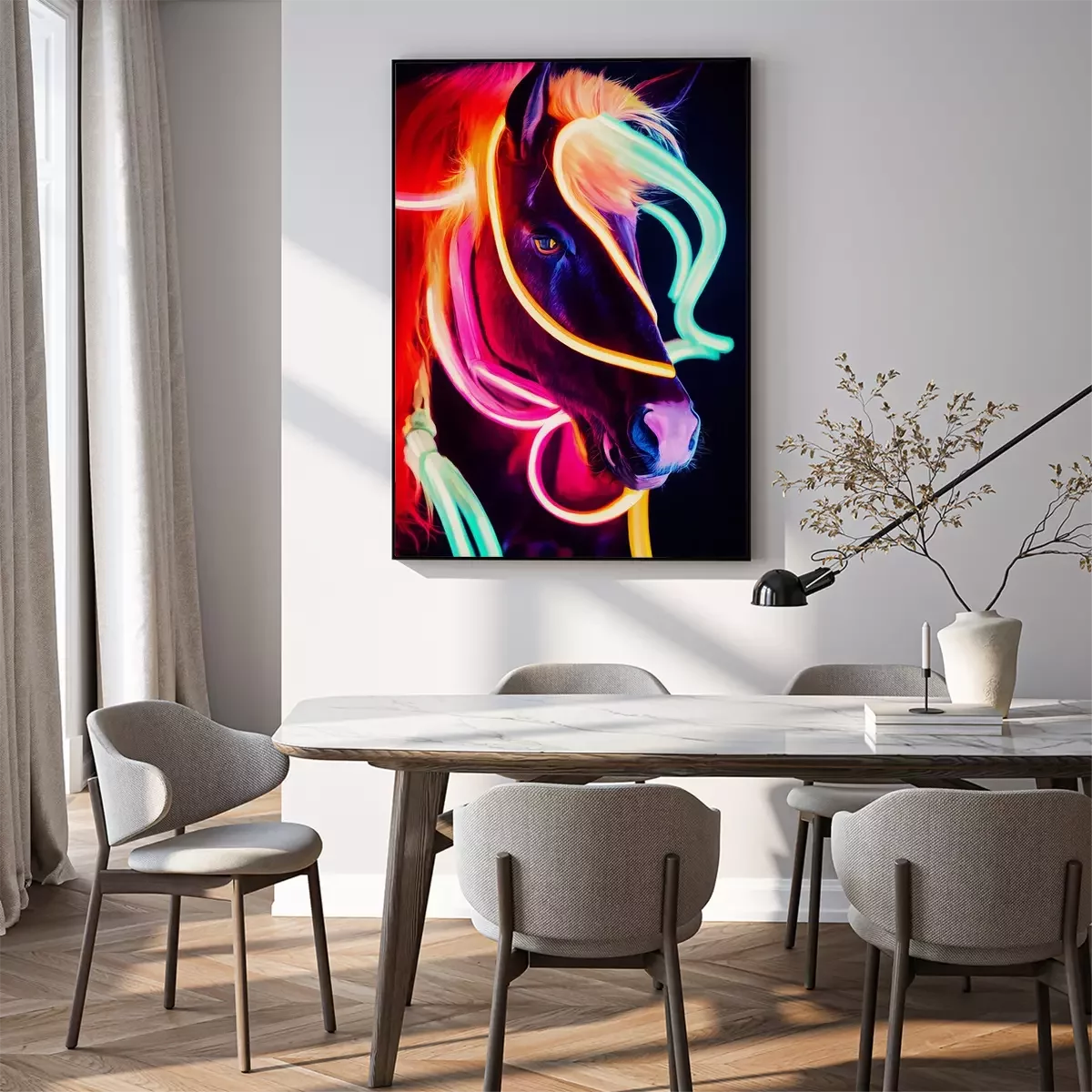 Poster: Fluoreszierende Farben eines Pferdeporträts