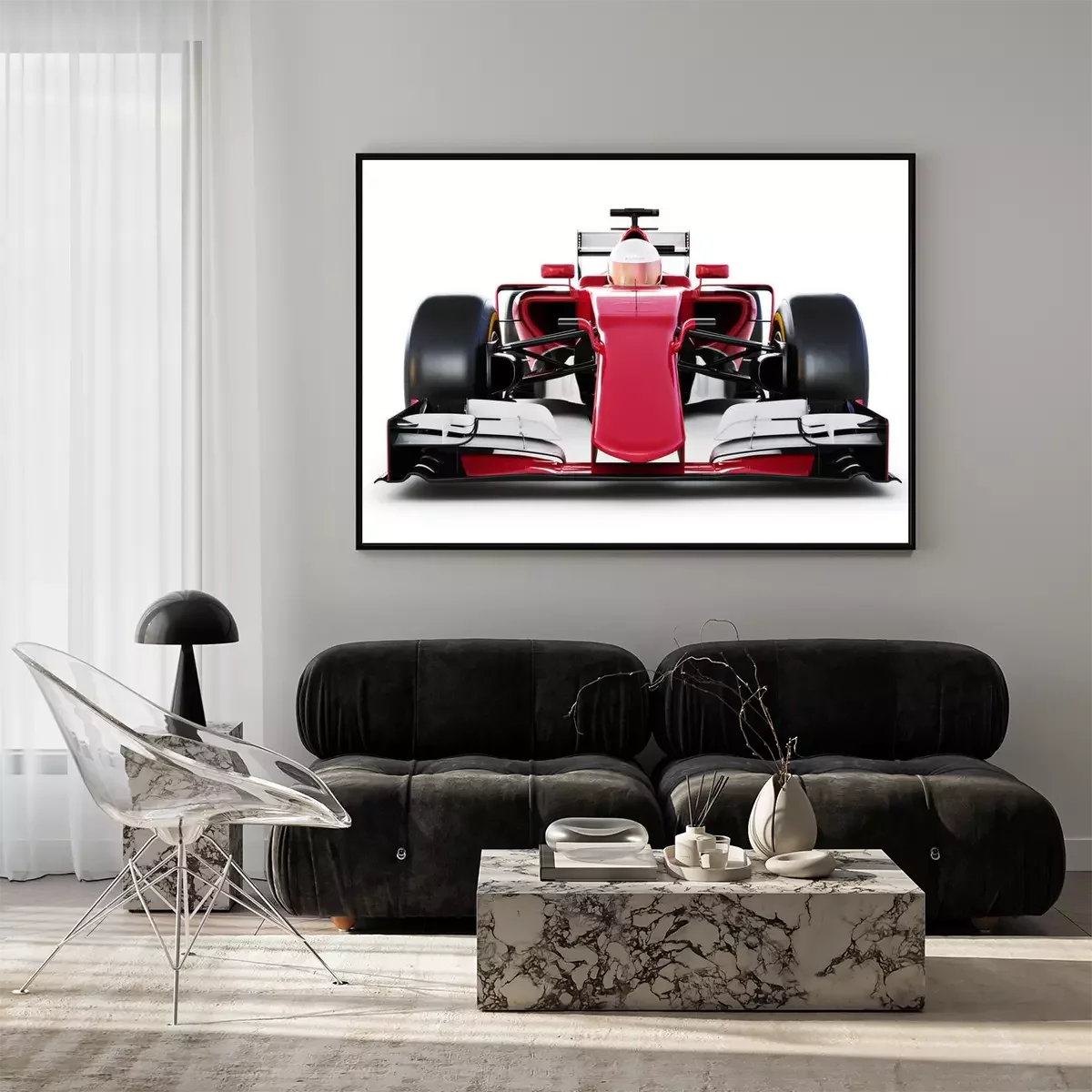 Poster Formel 1 rotes Auto und Fahrer