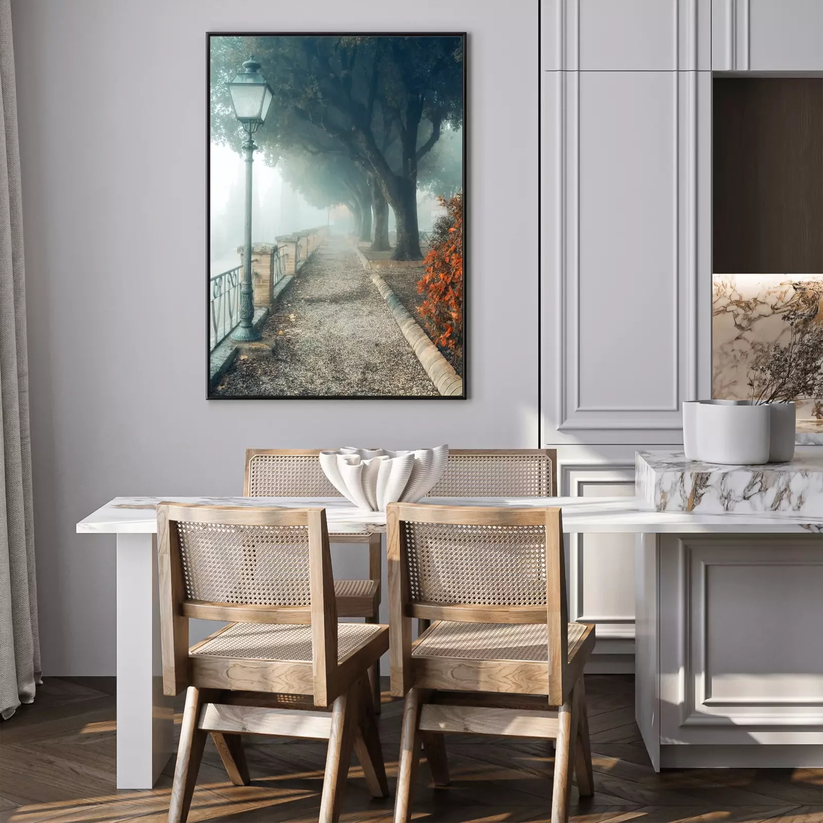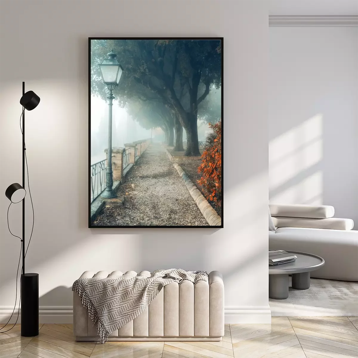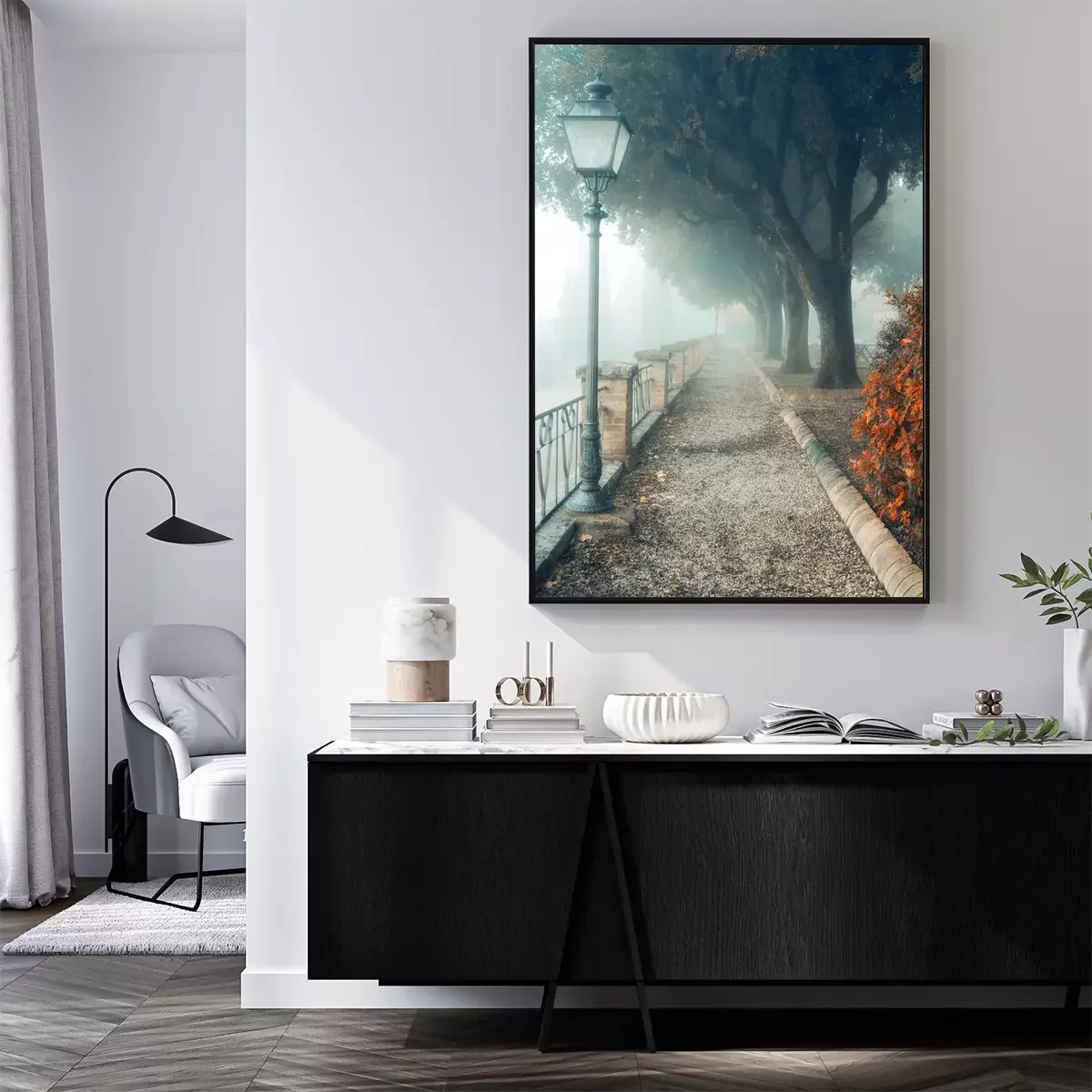 Poster: Foto einer nebligen Gasse