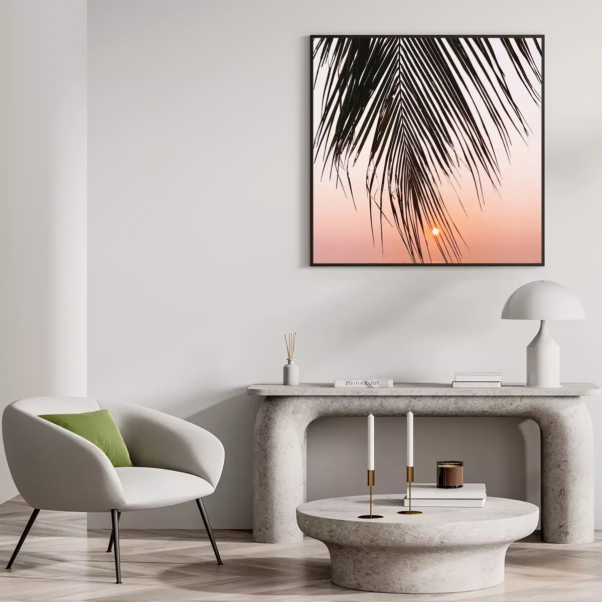 Poster: Foto einer Palme vor dem Hintergrund der Sonne